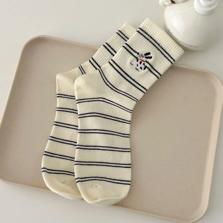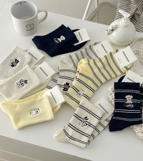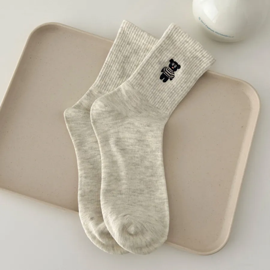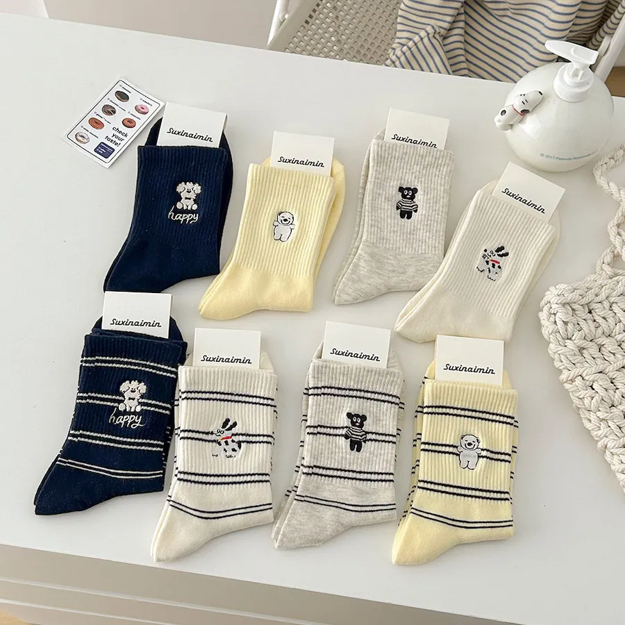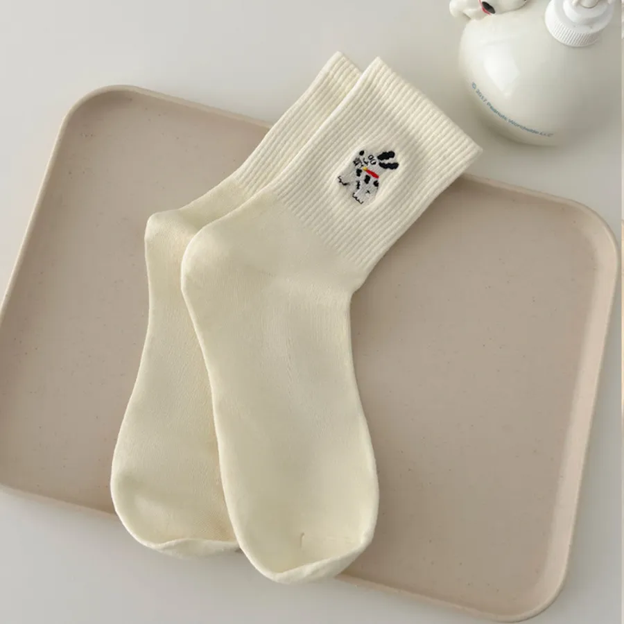 治癒小萌寵刺繡中筒襪 8色