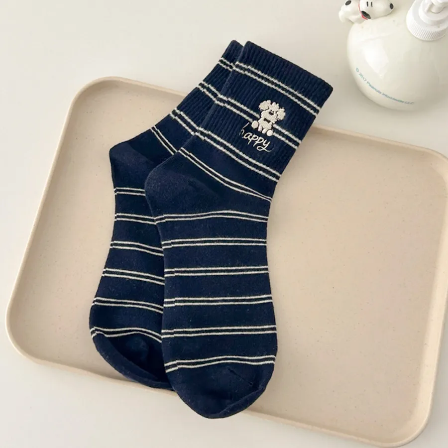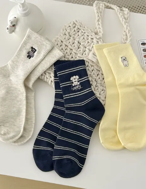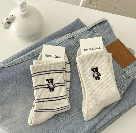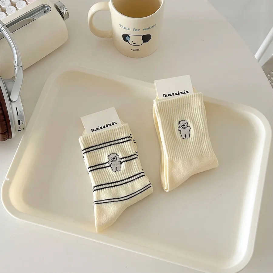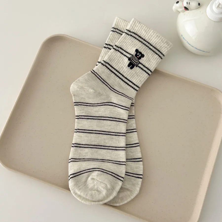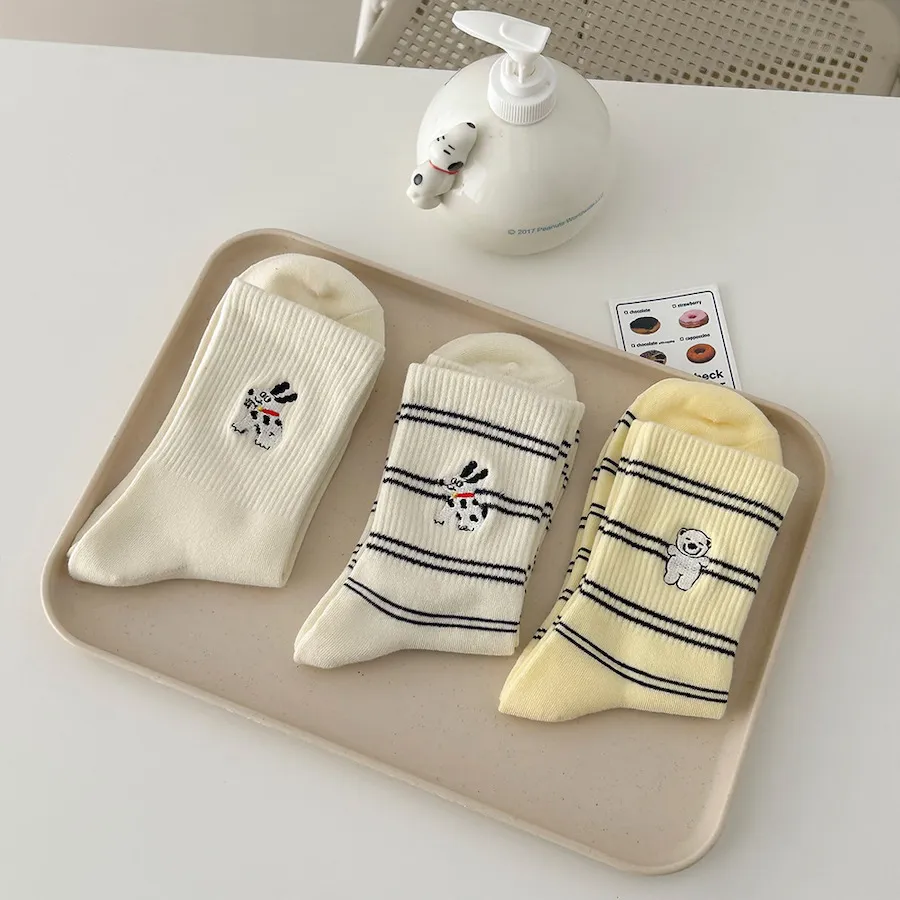 治癒小萌寵刺繡中筒襪 8色
