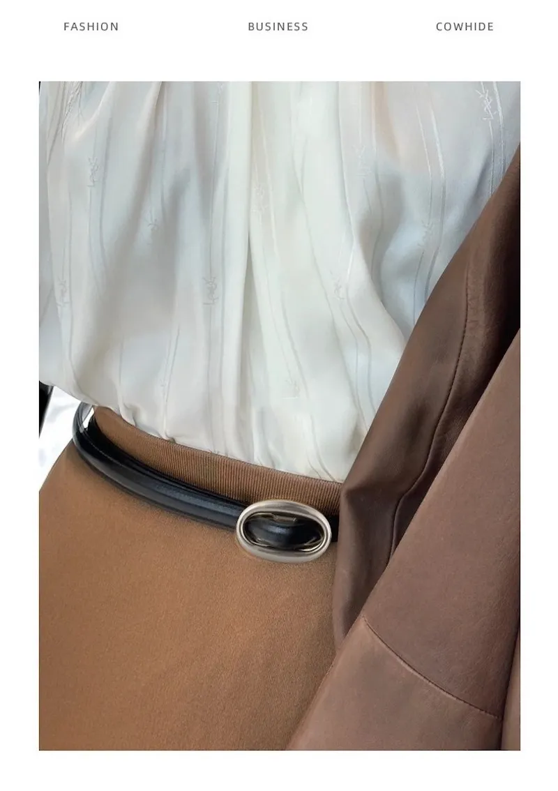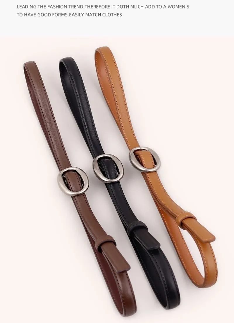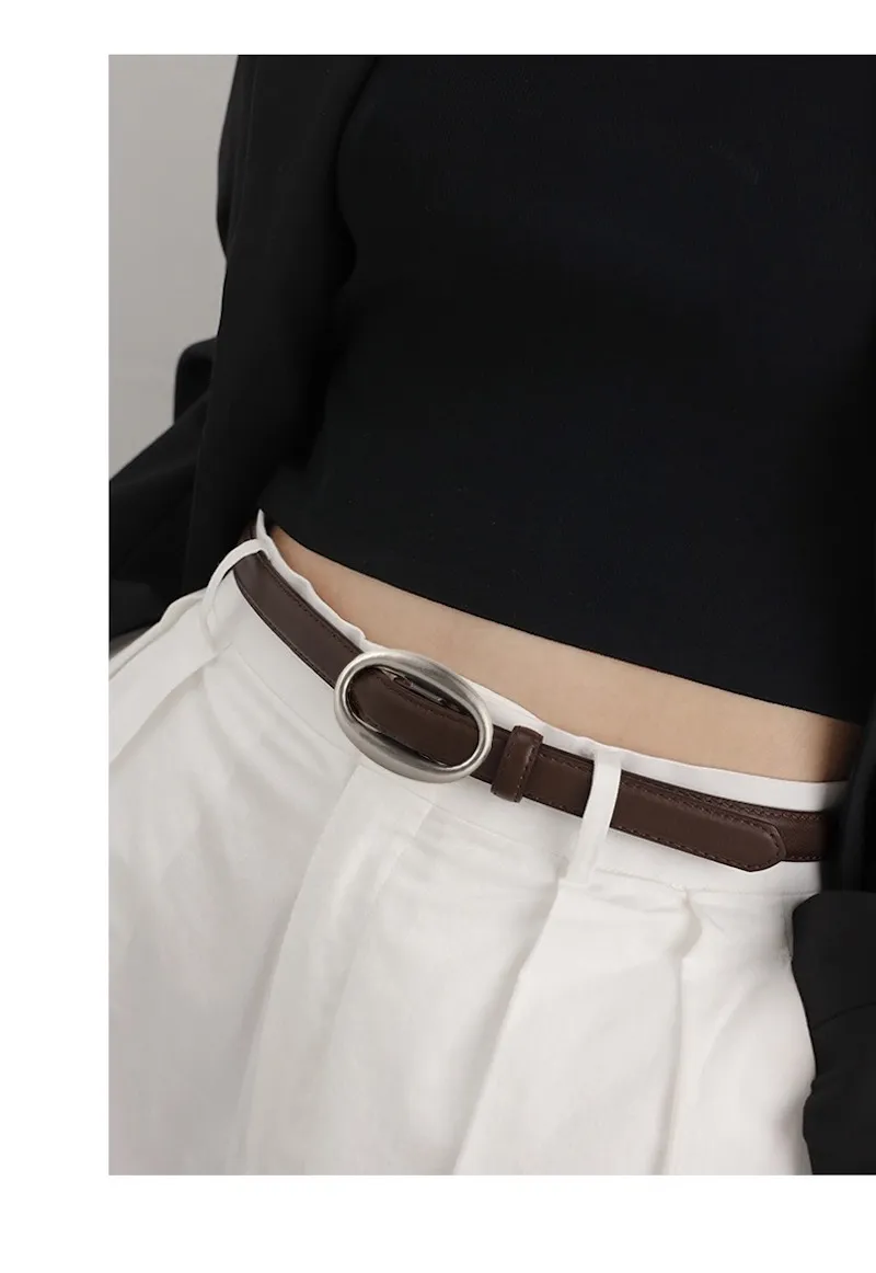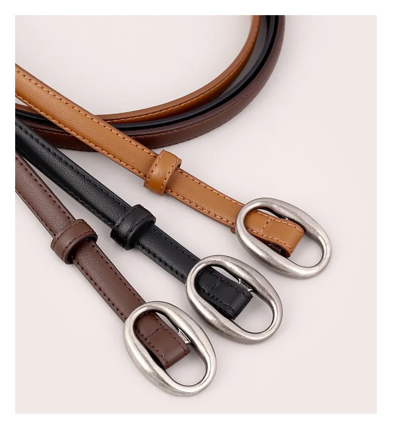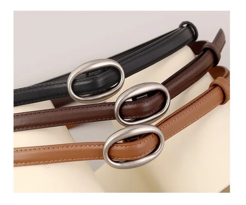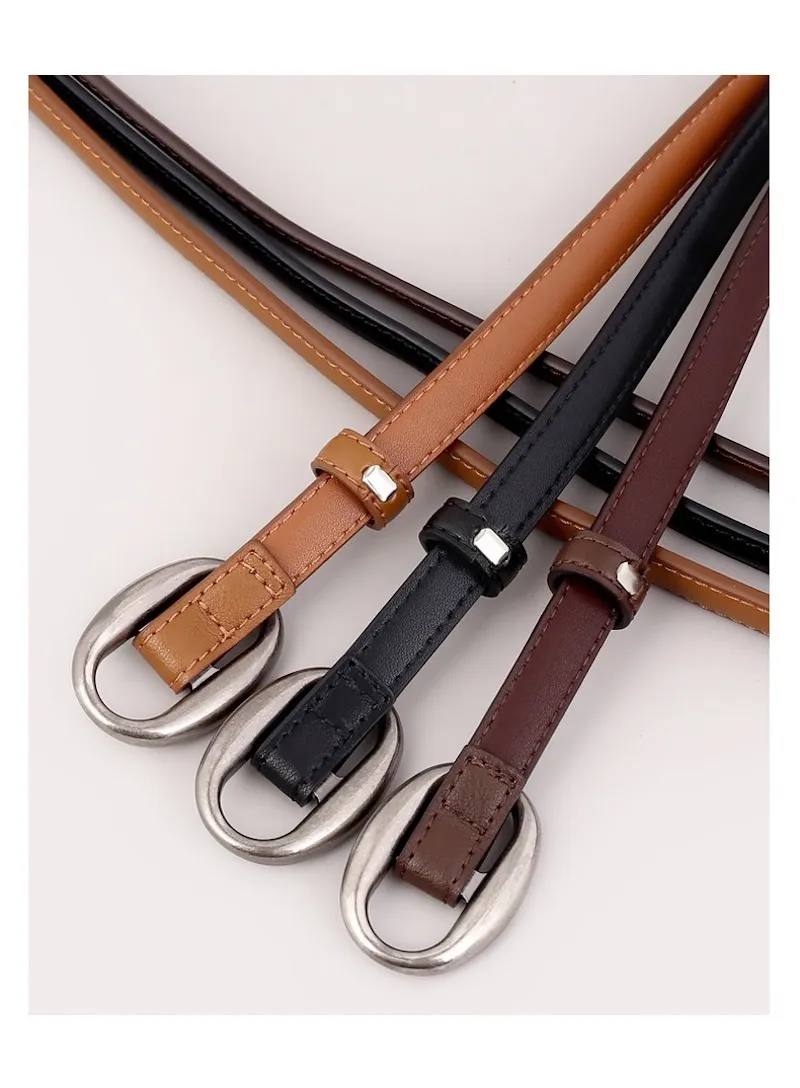復古橢圓.簡約高級感細版皮帶 3色