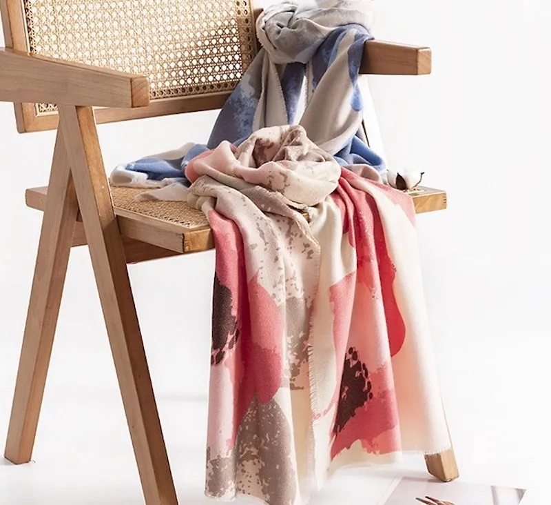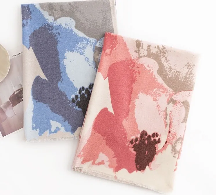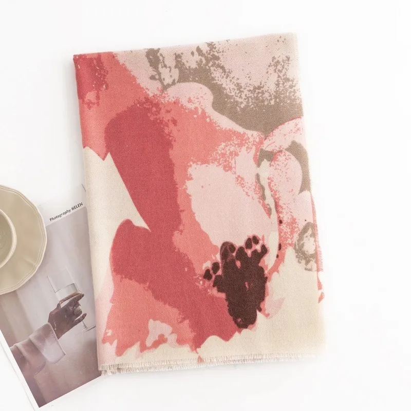 水彩光影.藝術印花仿羊絨圍巾 2色
