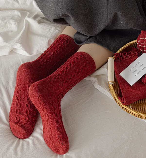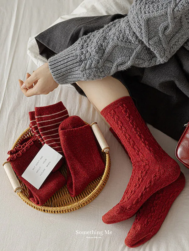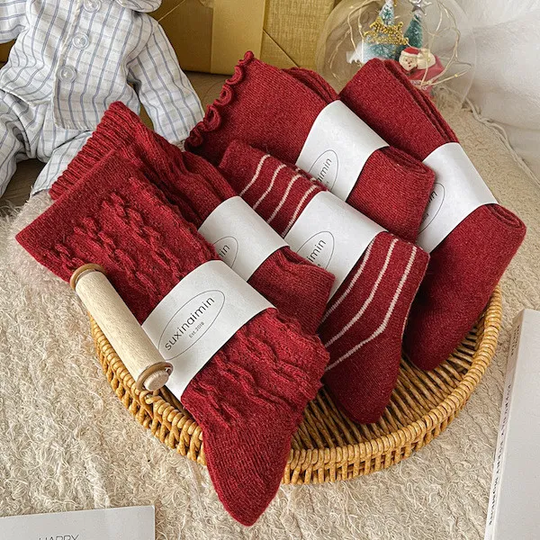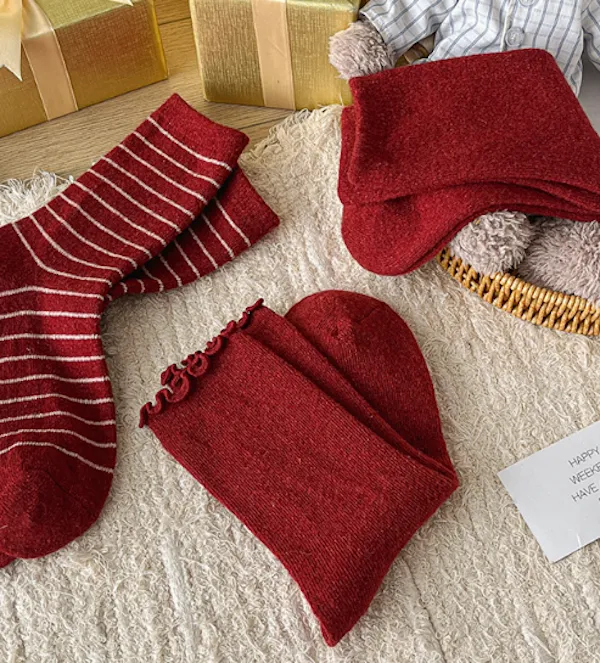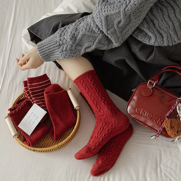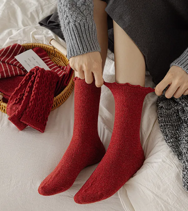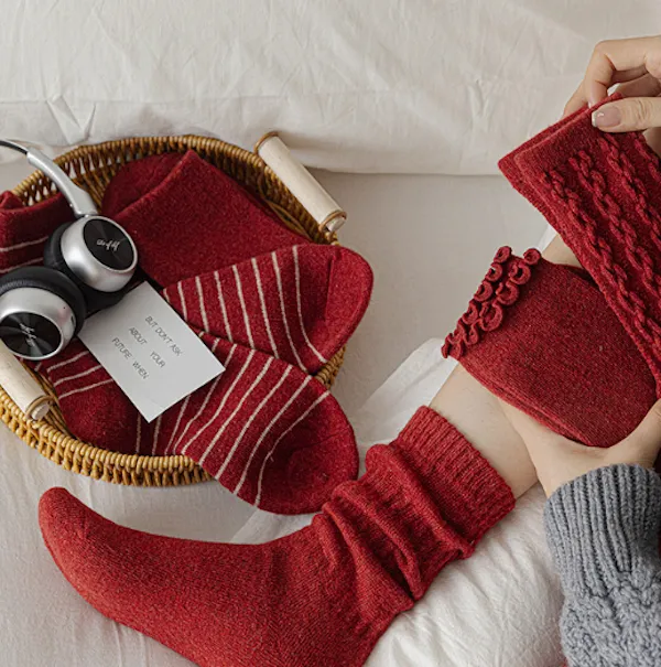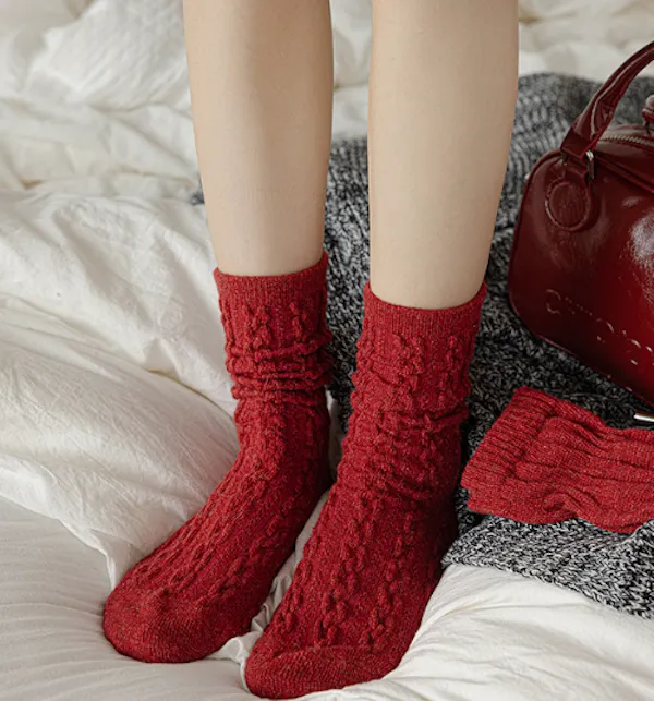 本命紅色系安哥拉羊毛堆堆襪子 5款
