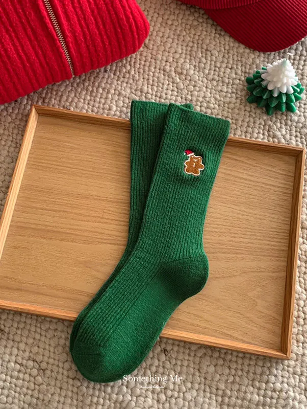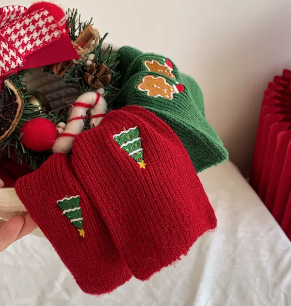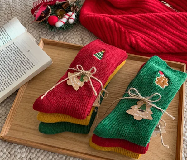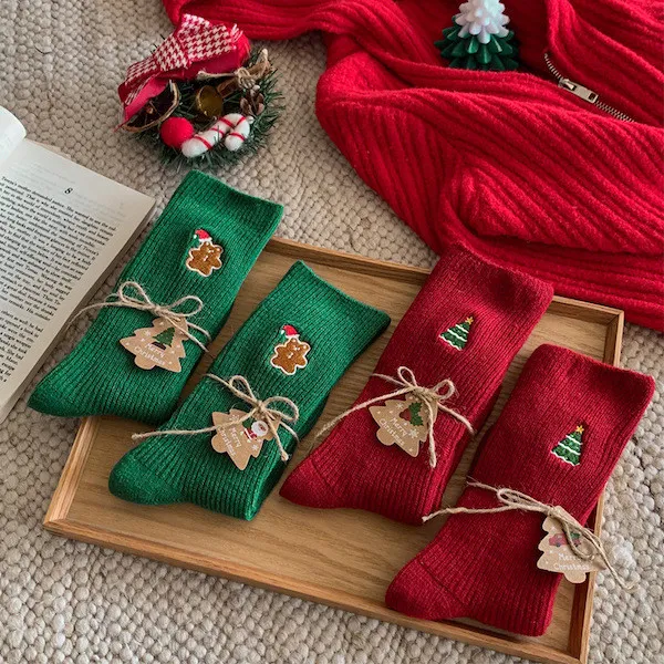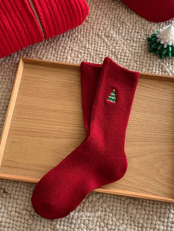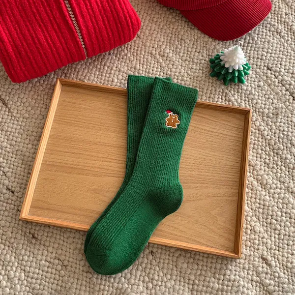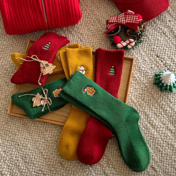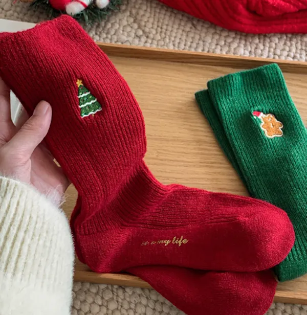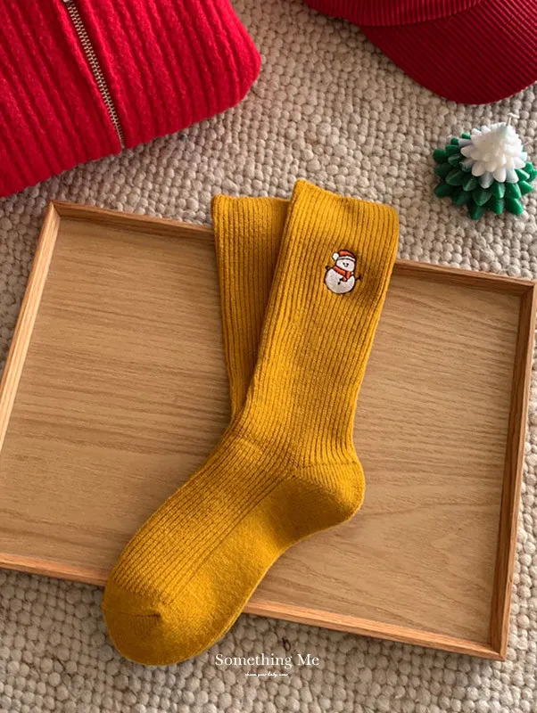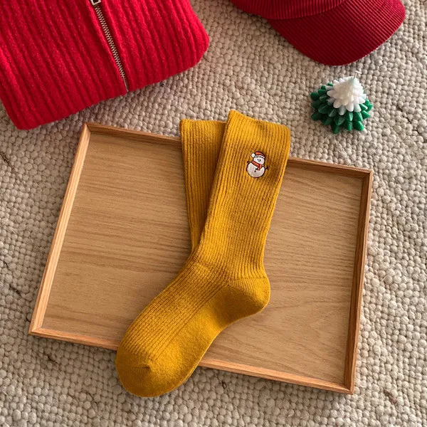 聖誕氛圍刺繡雪人聖誕樹中筒襪 3色