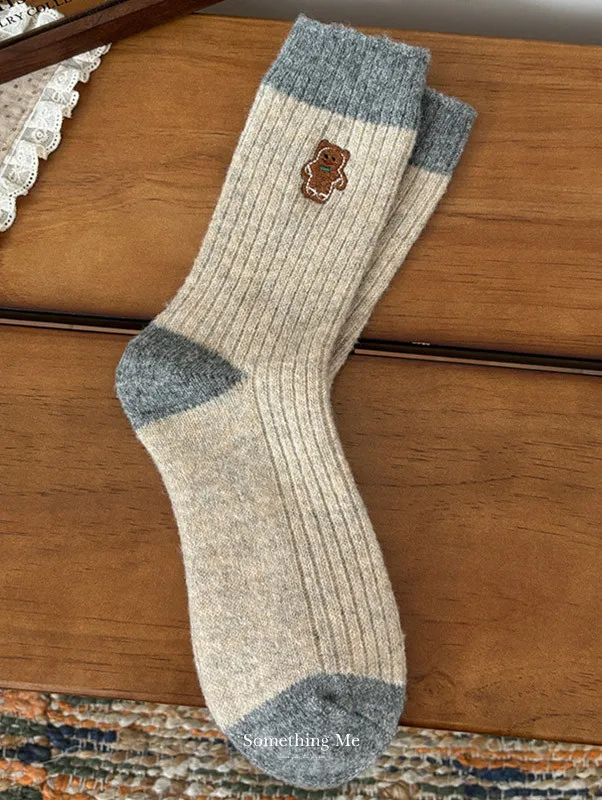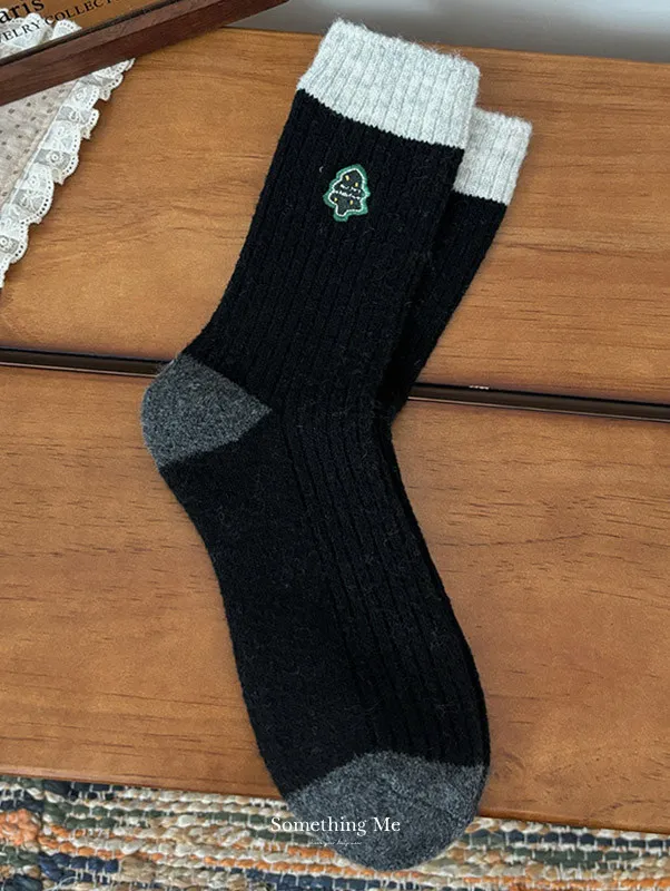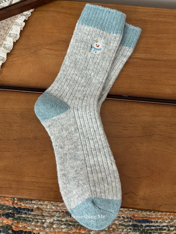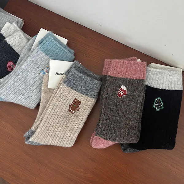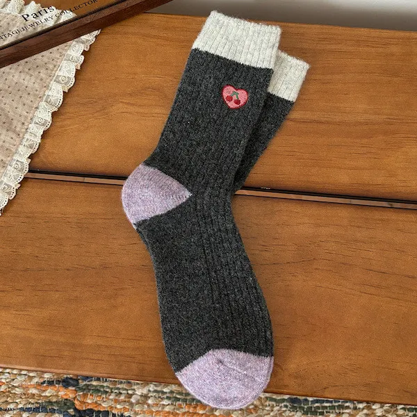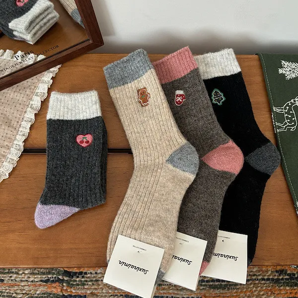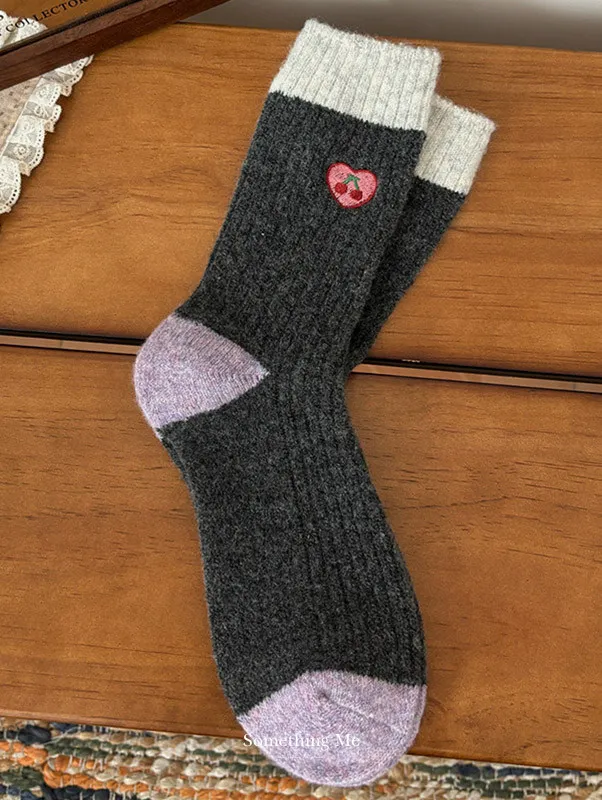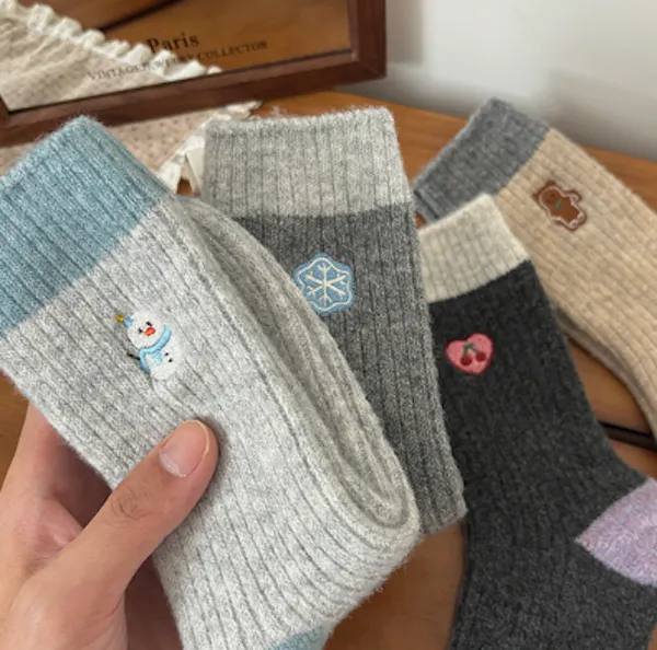 溫柔冬日 復古刺繡保暖羊毛中筒襪 6色