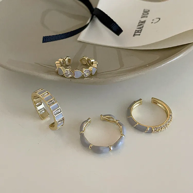 甜美藍滴油鋯石開口戒指 4款