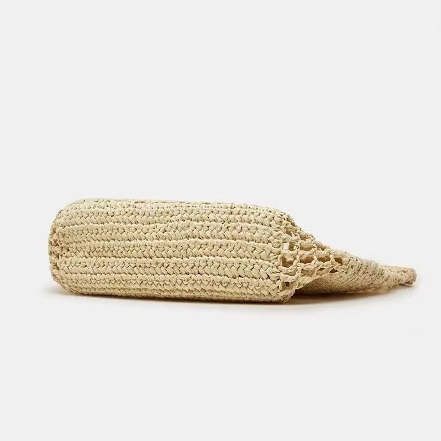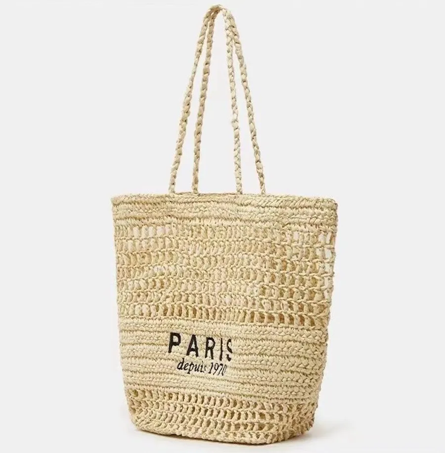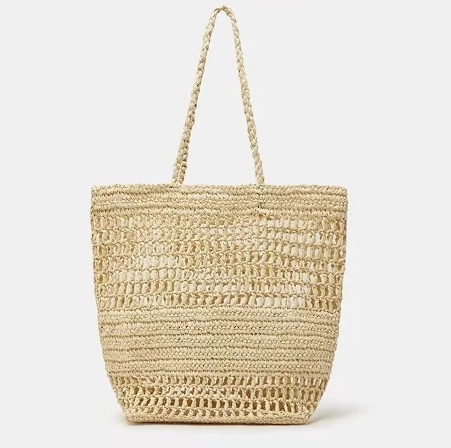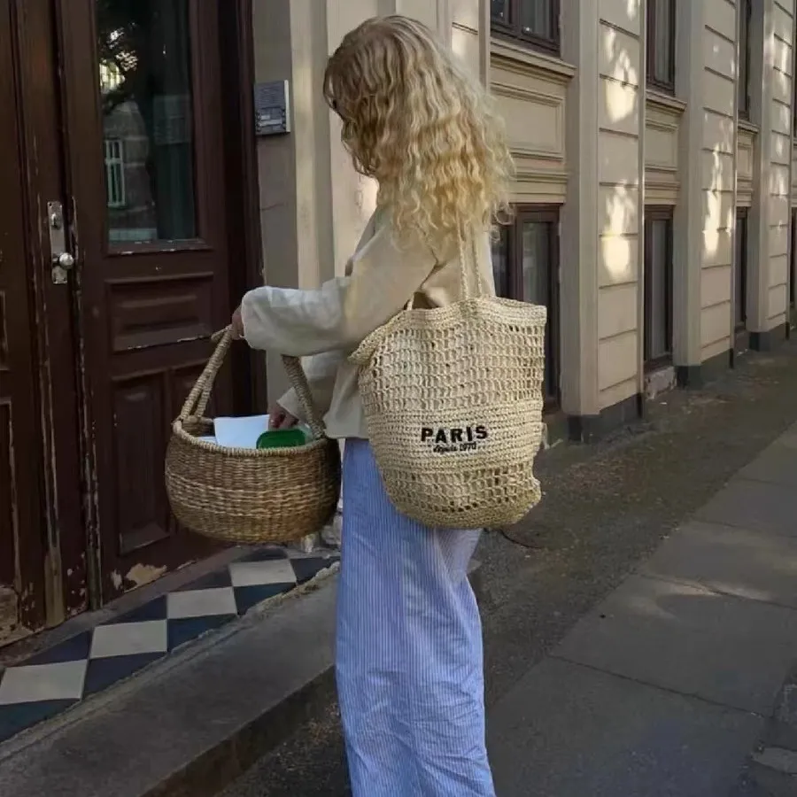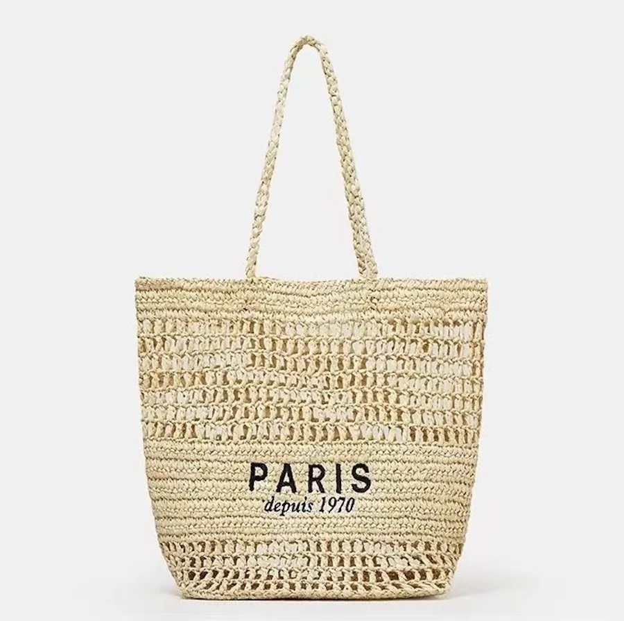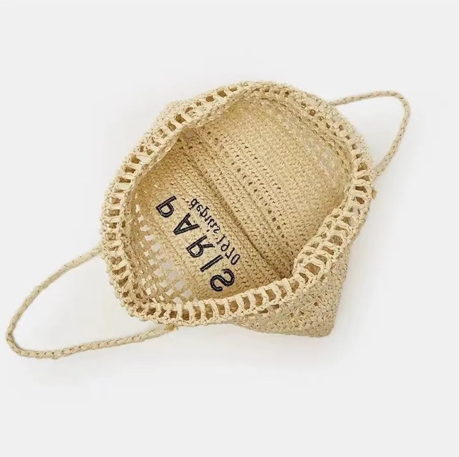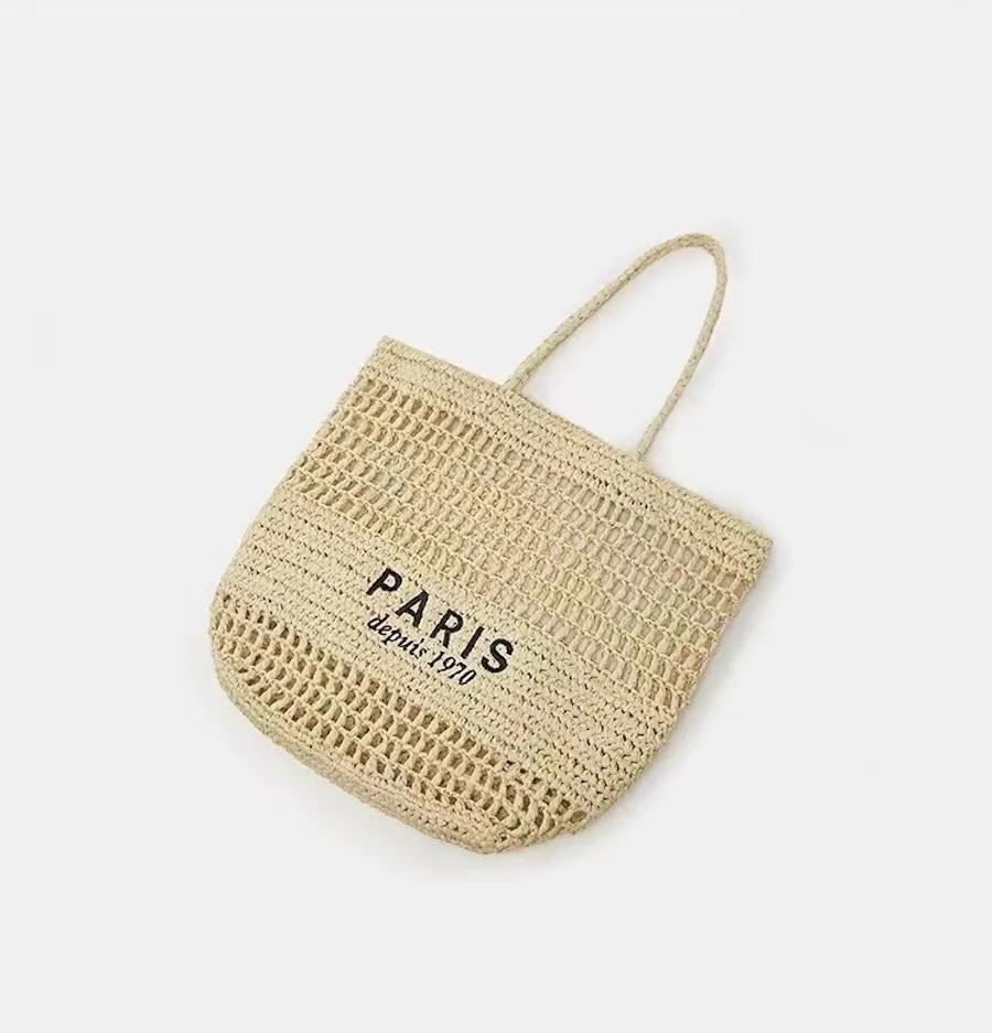渡假風字母刺繡簍空草編包