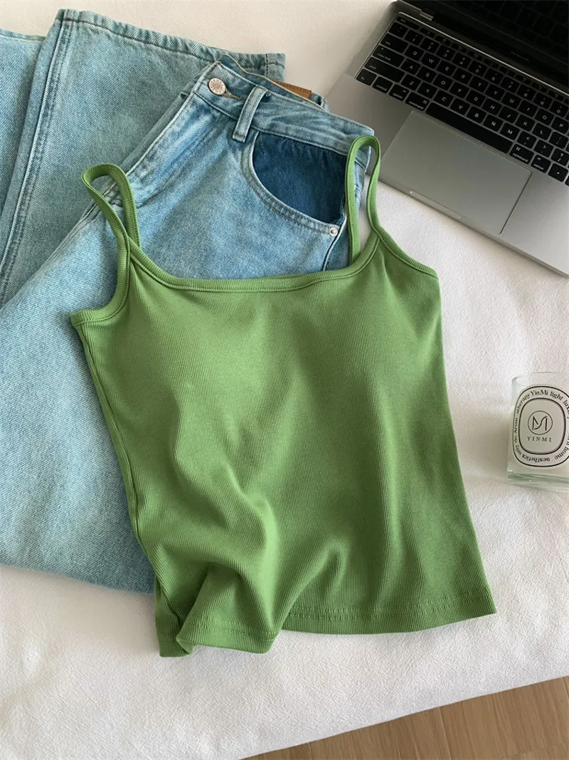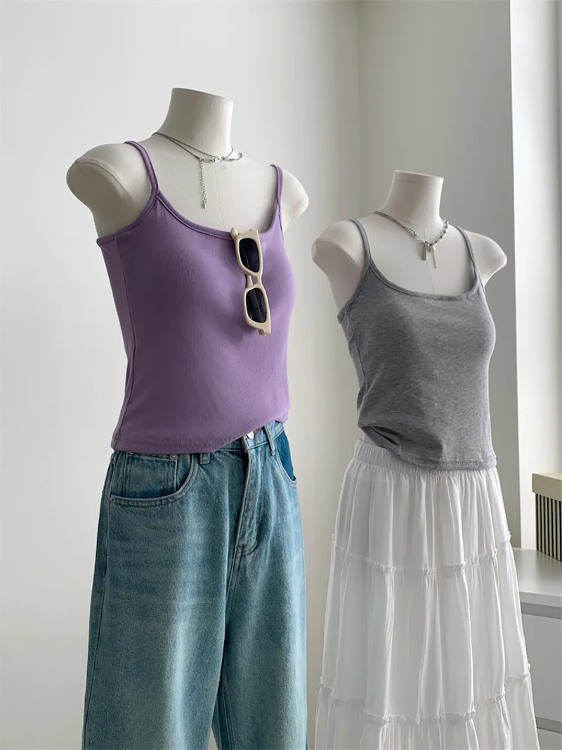 纖細肩帶搭配圓潤領口,營造優雅頸肩線條