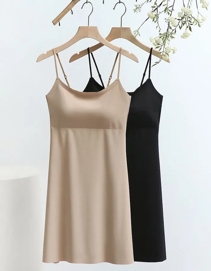 雲朵輕舞.按摩顆粒固定胸墊吊帶裙 2色