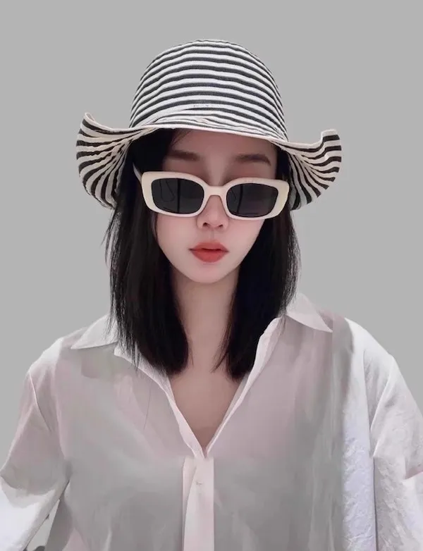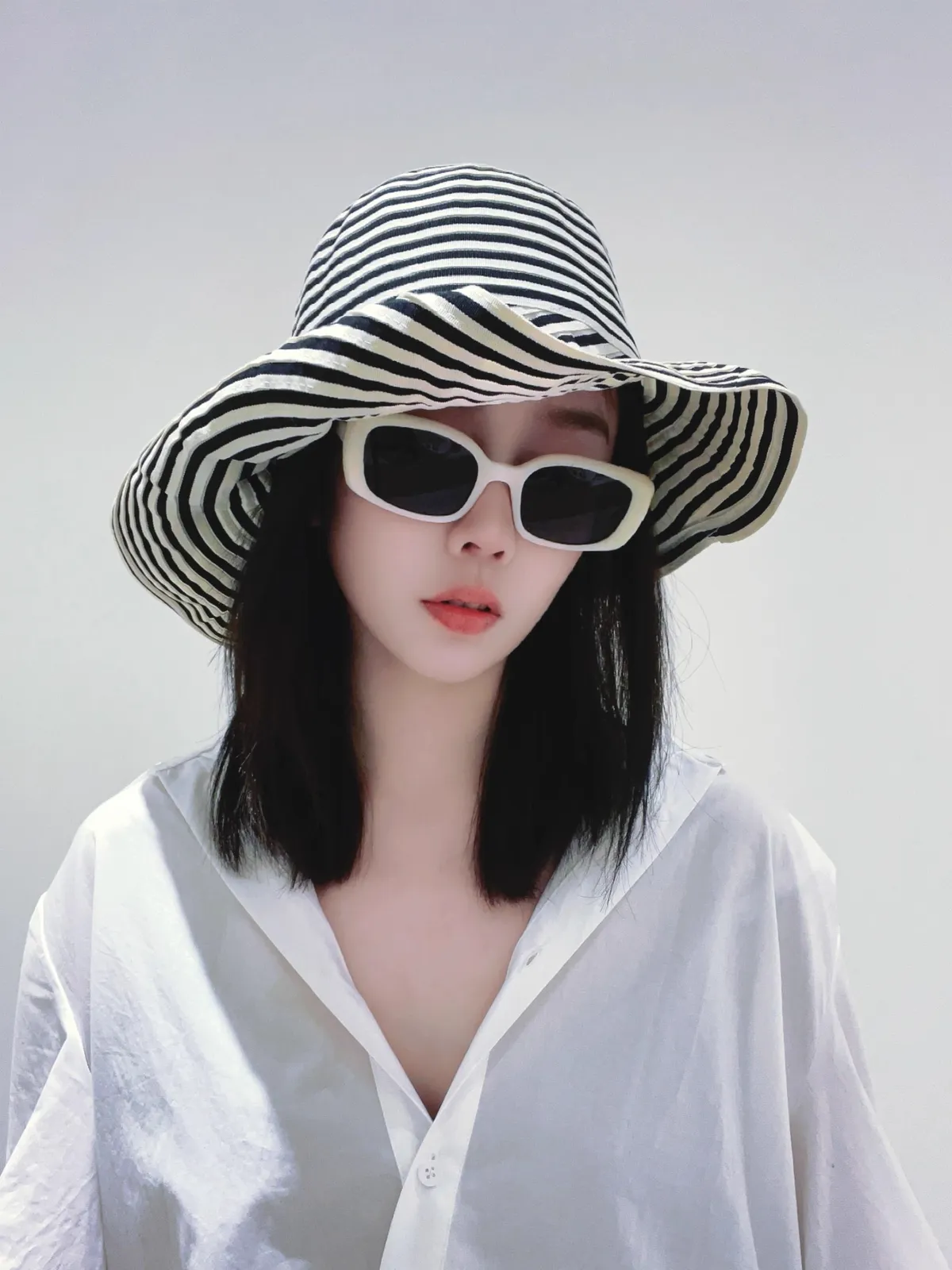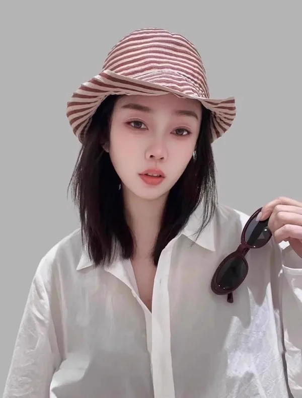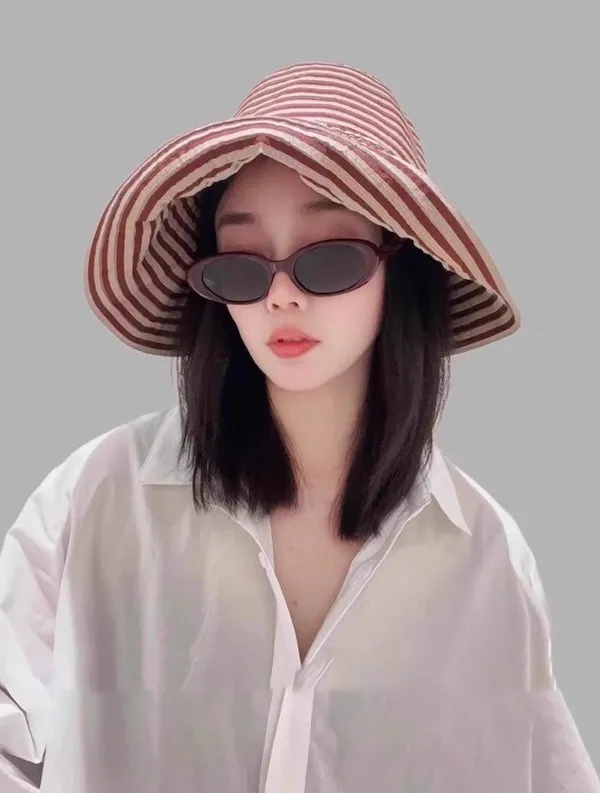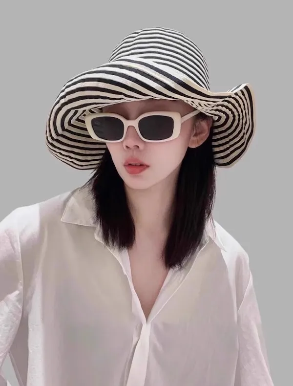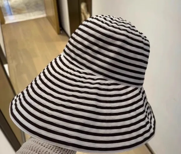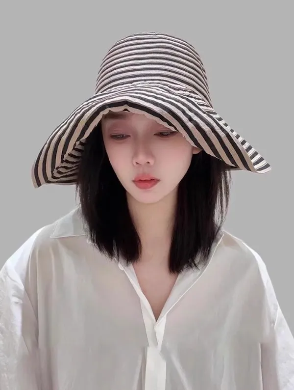 海岸漫步 復古條紋大帽檐漁夫帽 4色