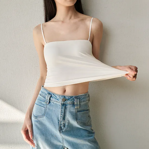 絲滑莫代爾 一字領細肩帶BraTop背心 4色
