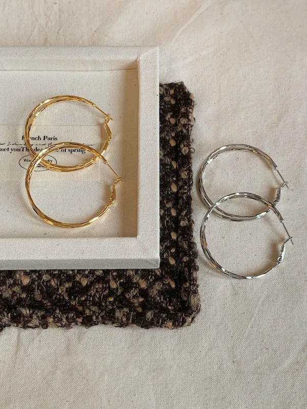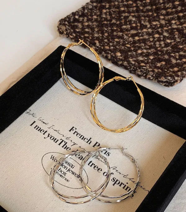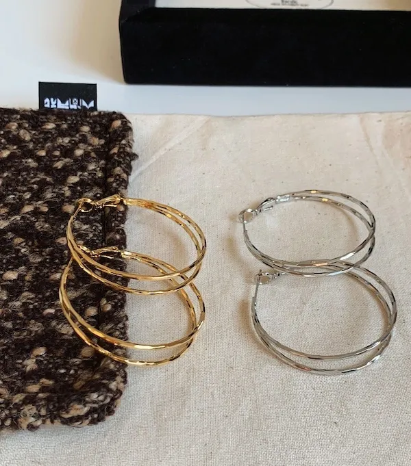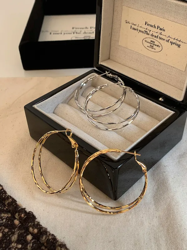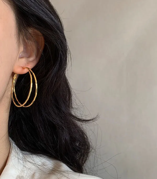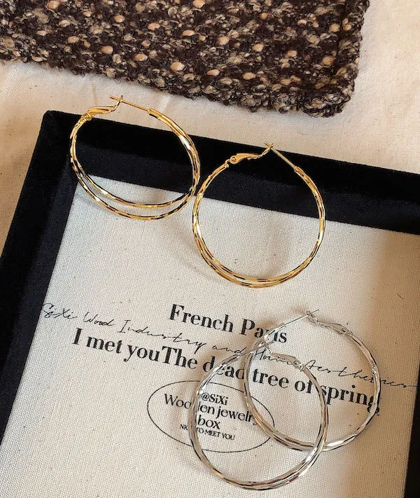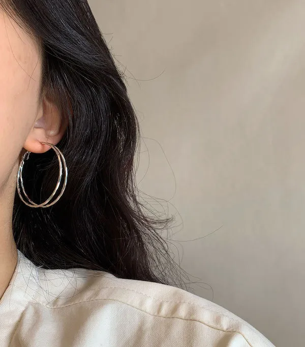 巴黎浪漫 雙層圓環交錯耳環 2色