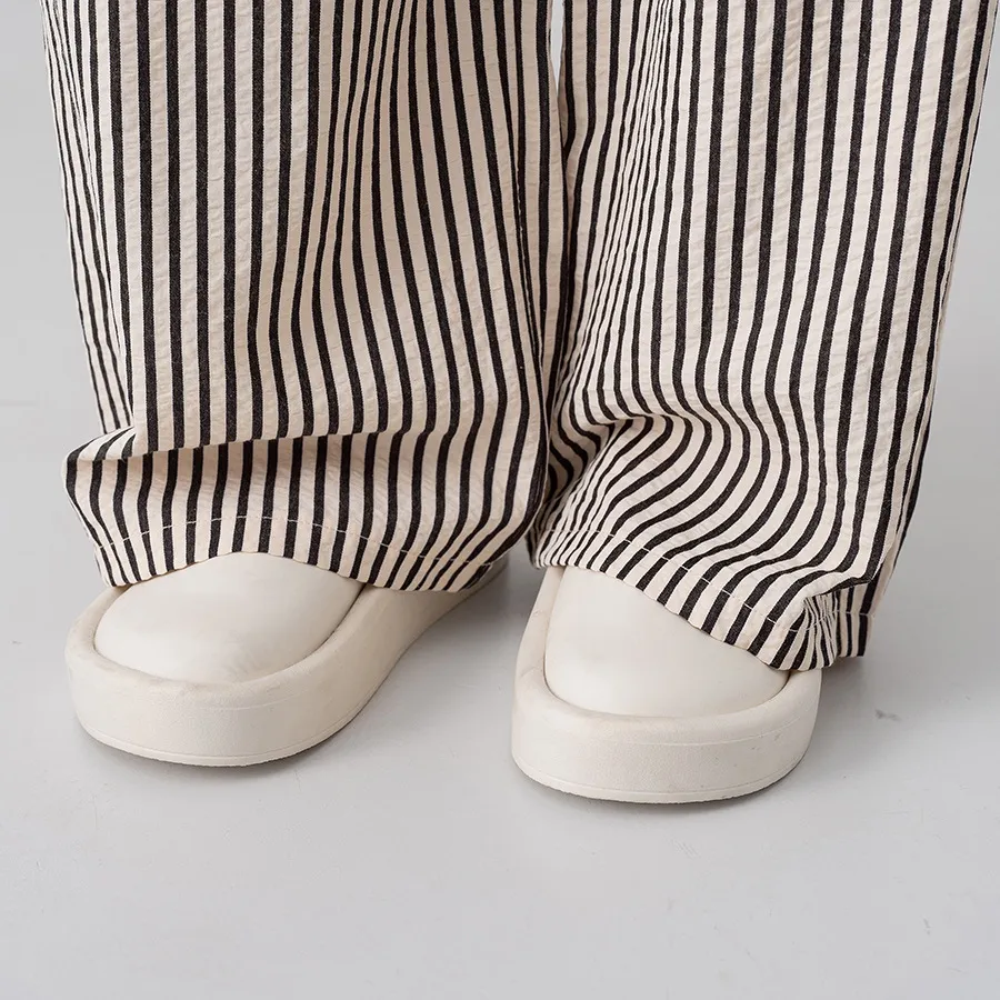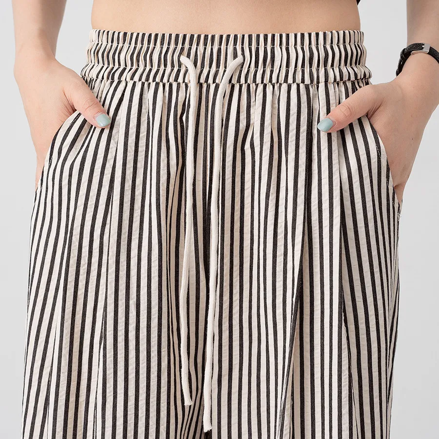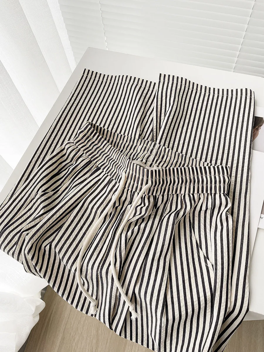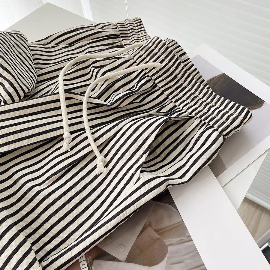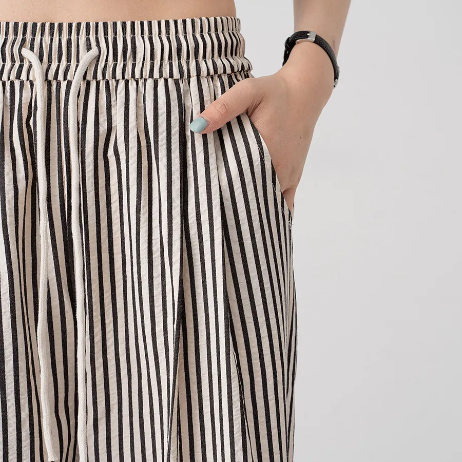 BE240801 肌理感復古黑白線條抽繩寬褲
