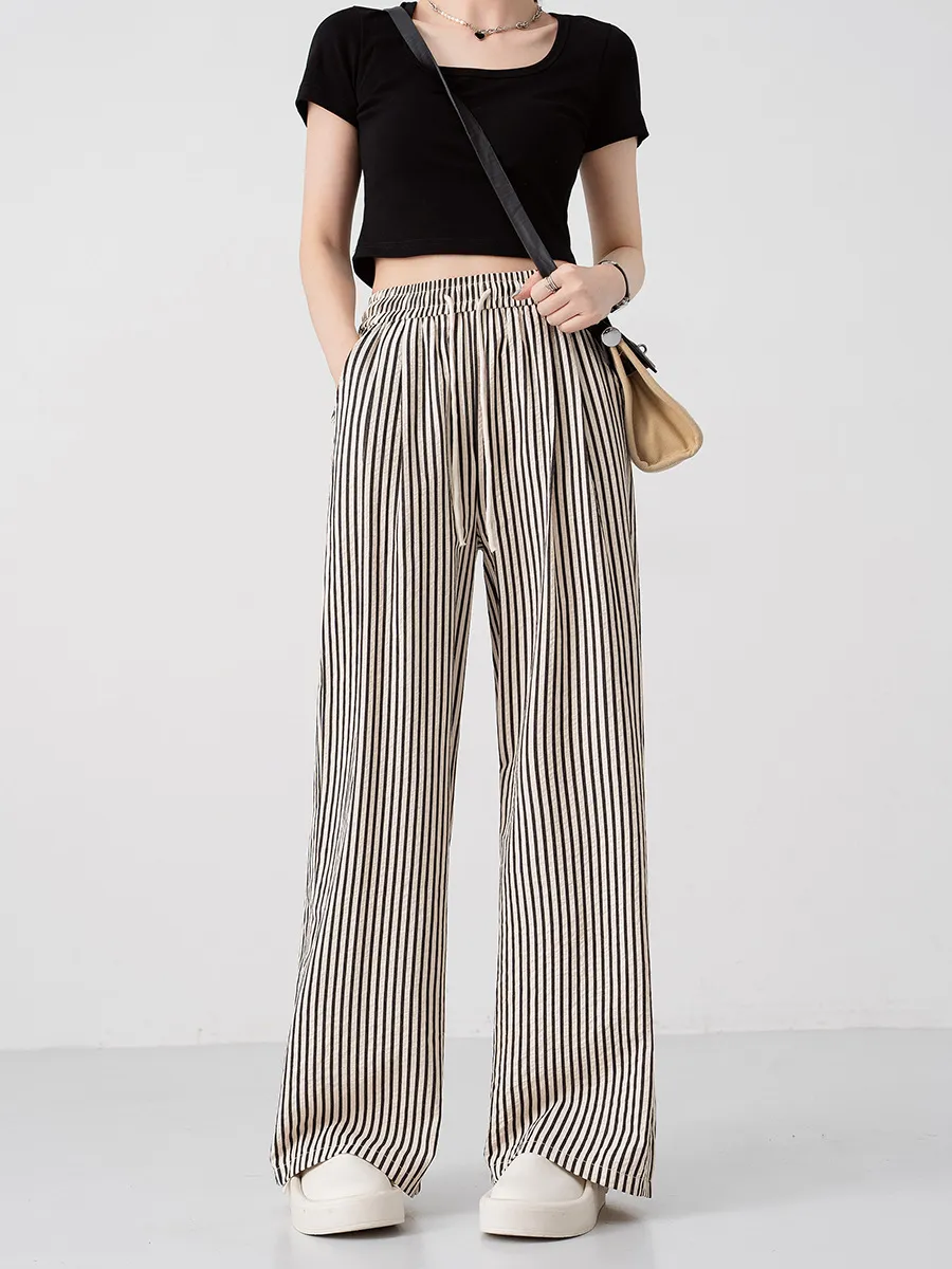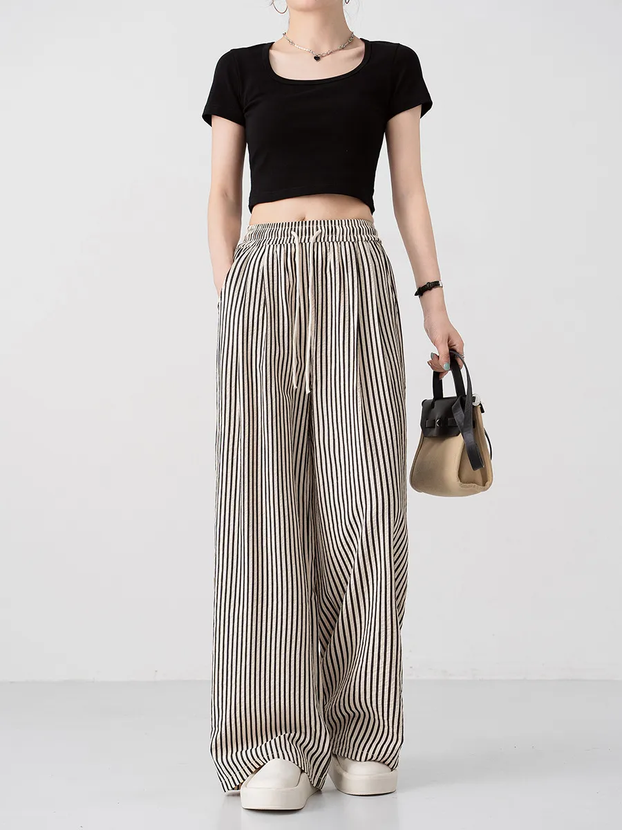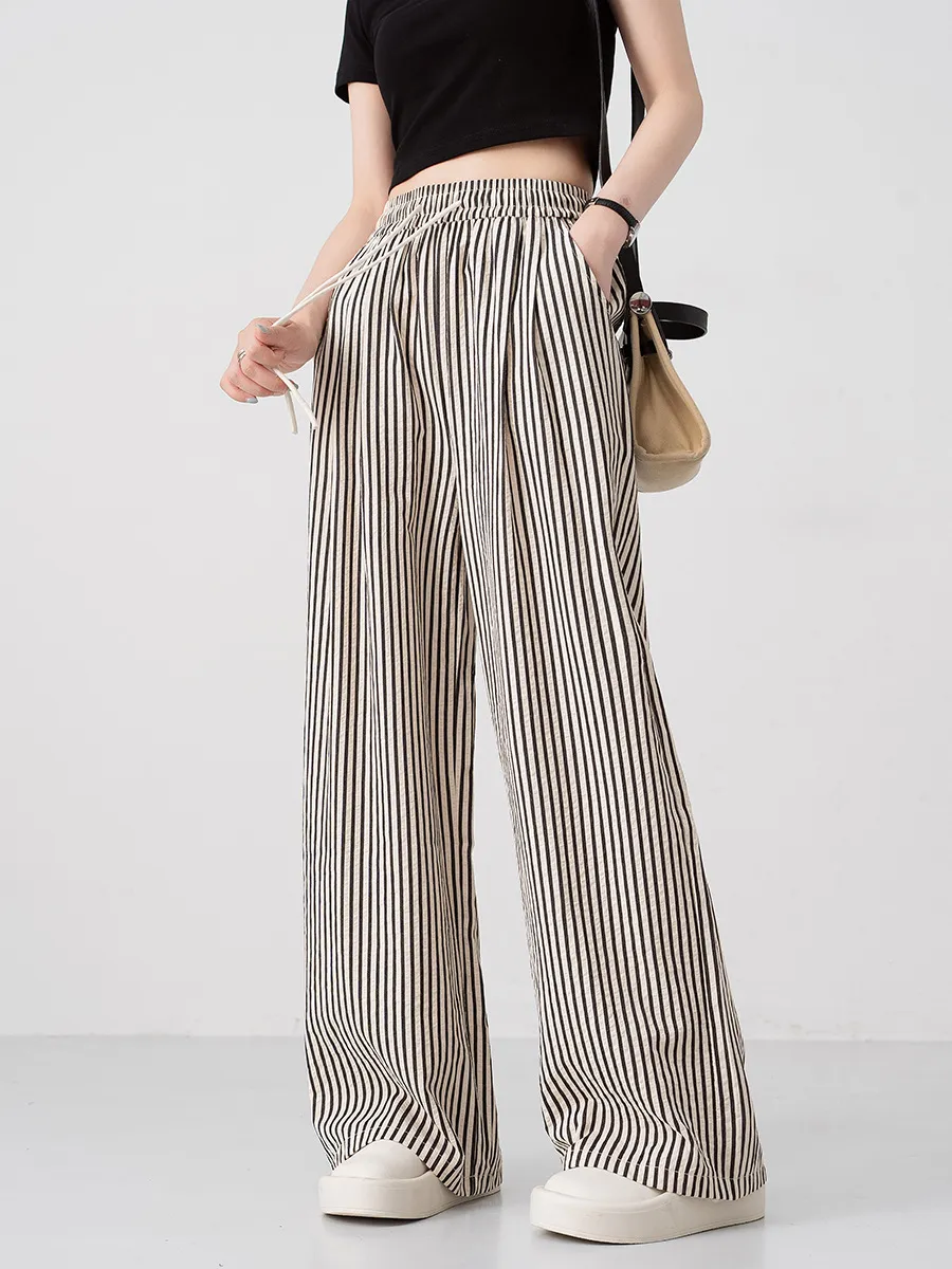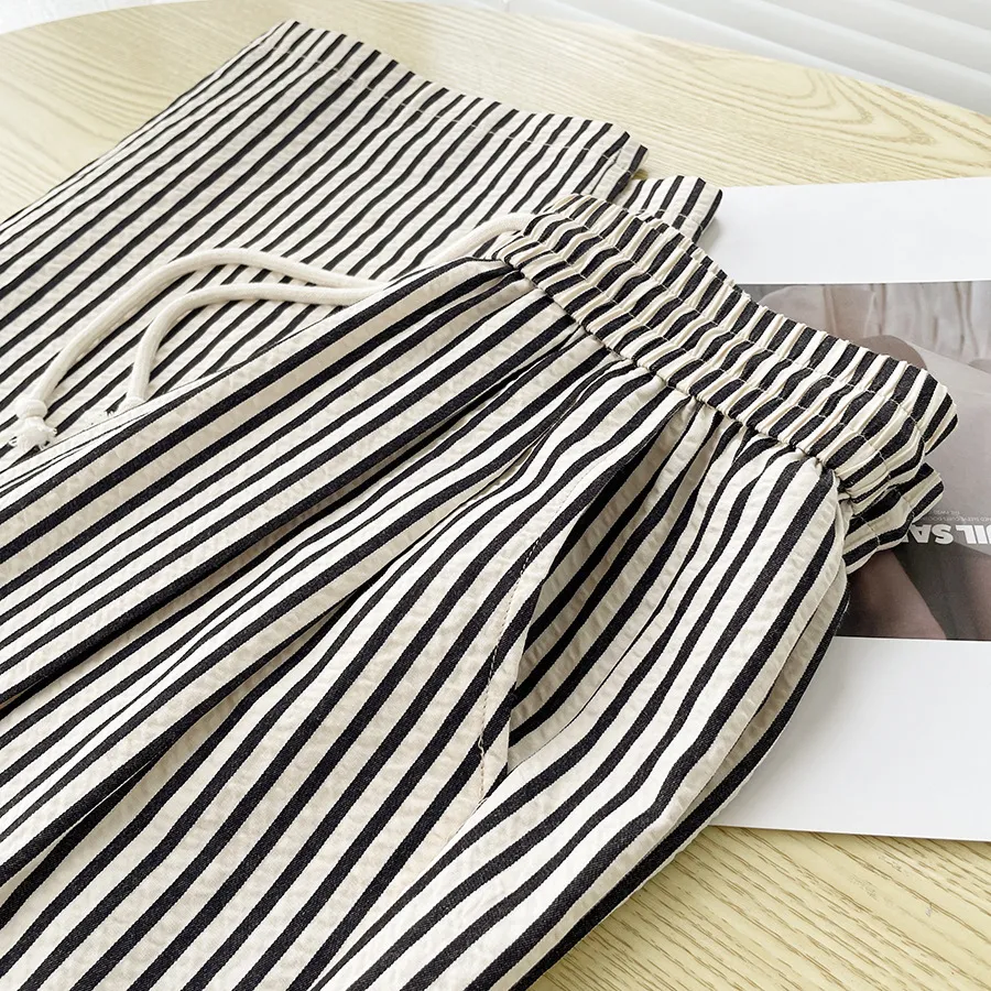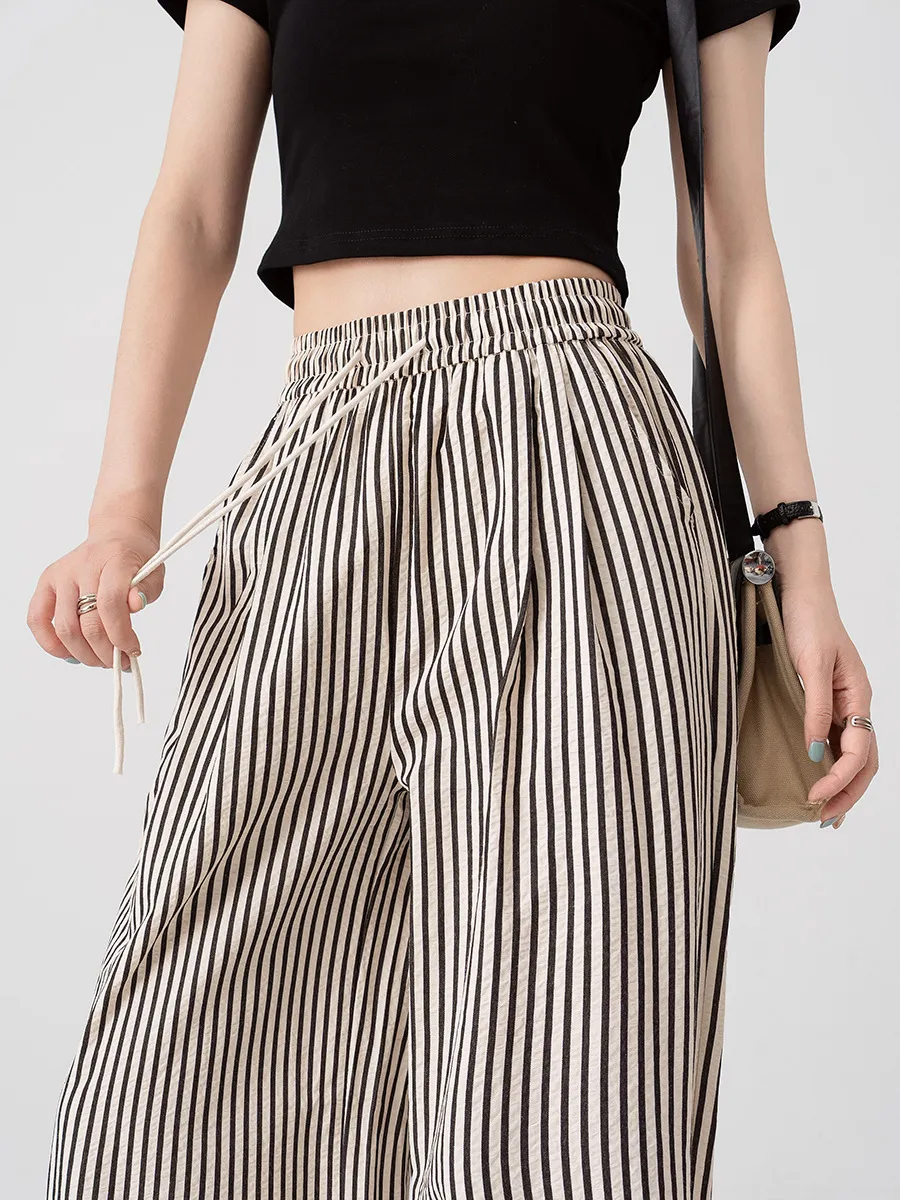 BE240801 肌理感復古黑白線條抽繩寬褲