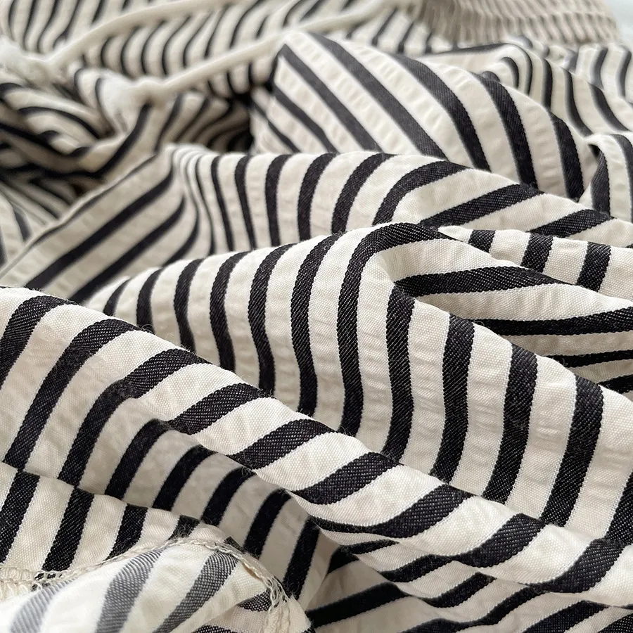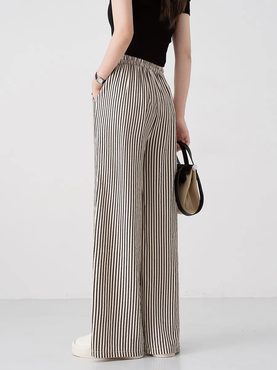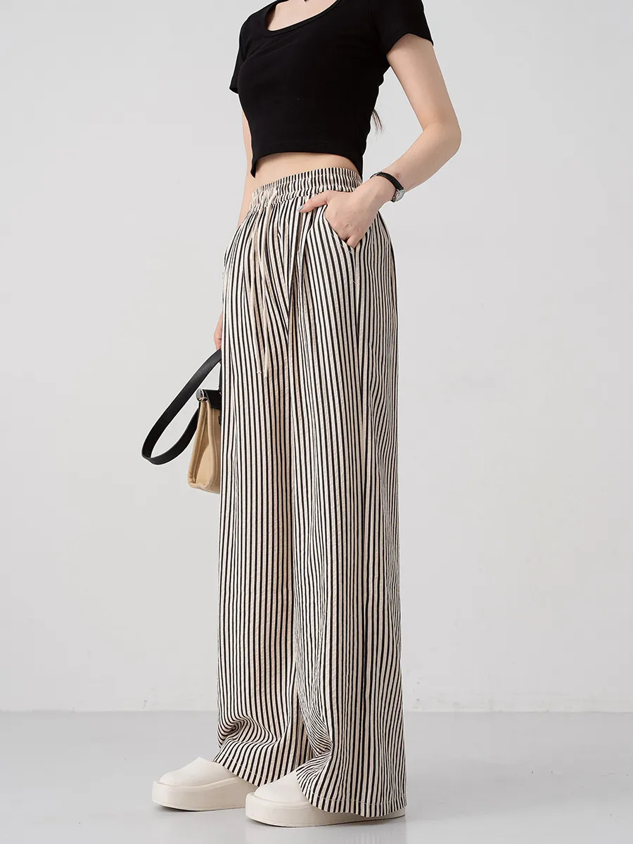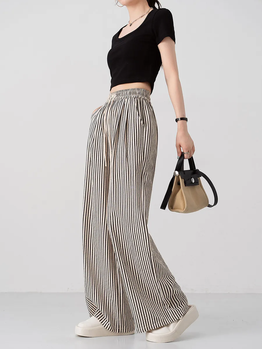 BE240801 肌理感復古黑白線條抽繩寬褲