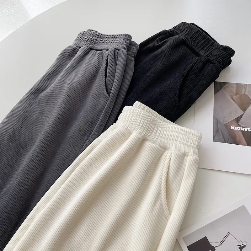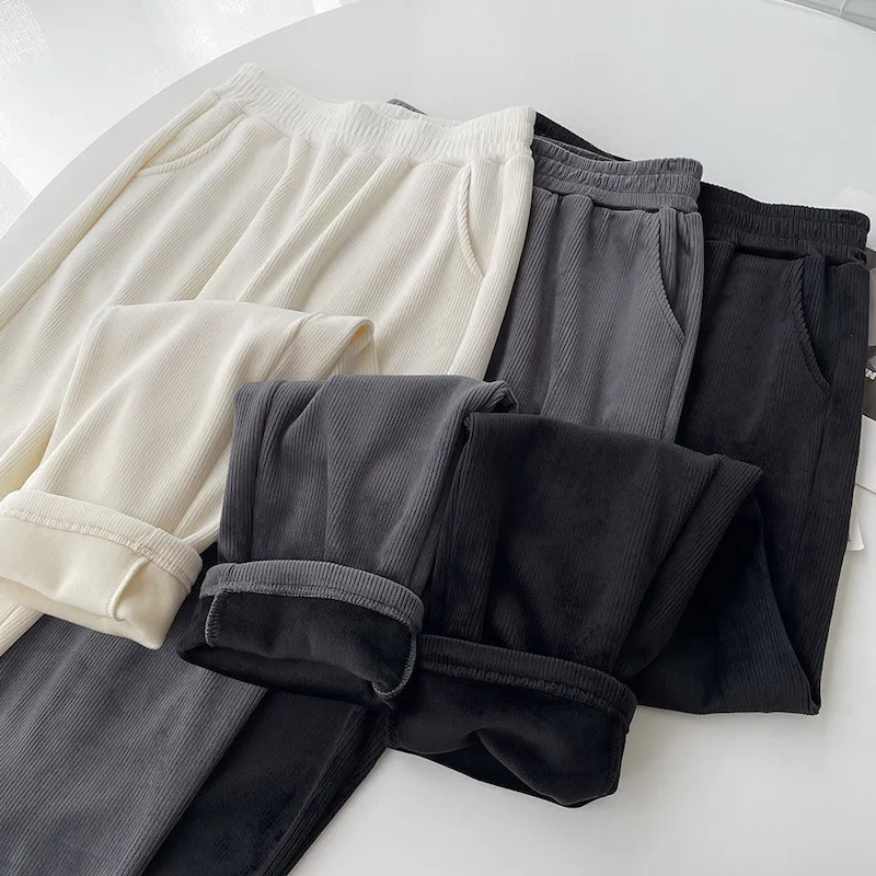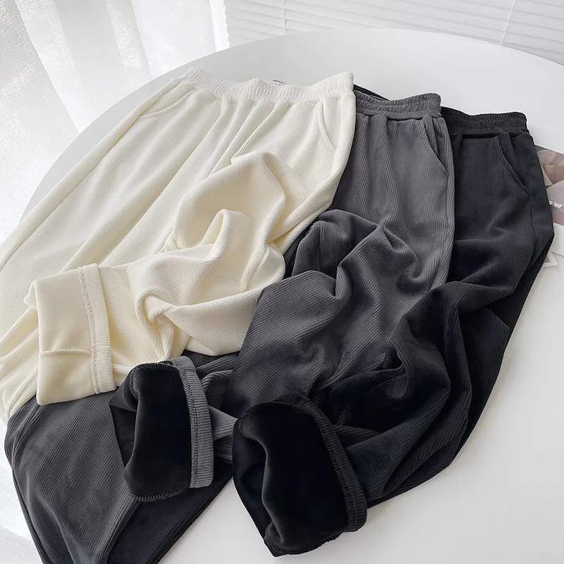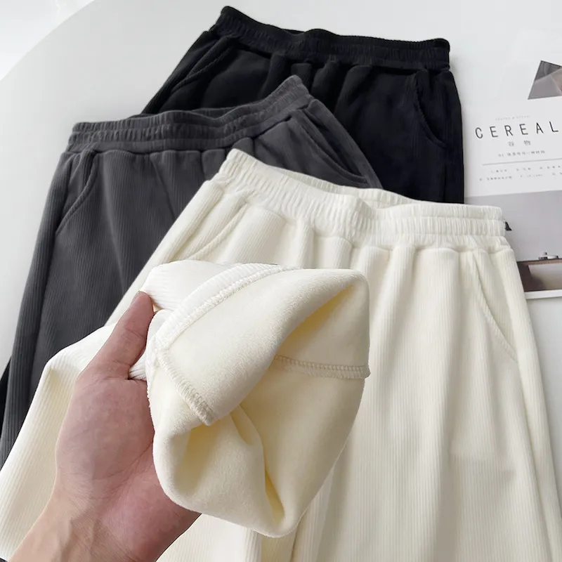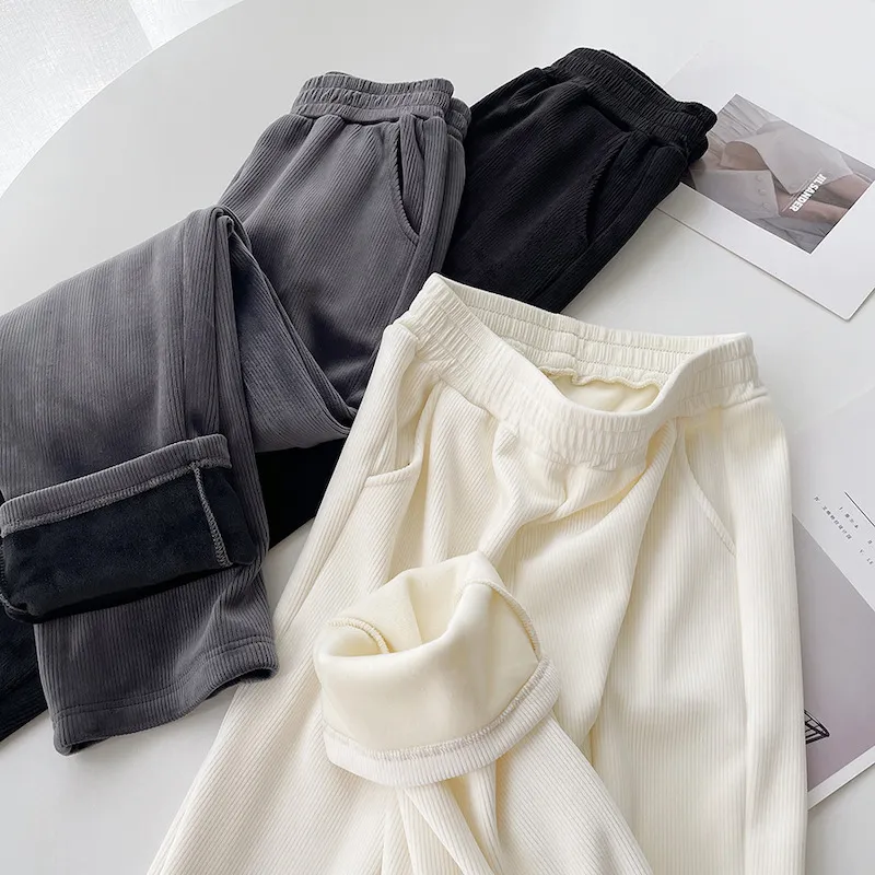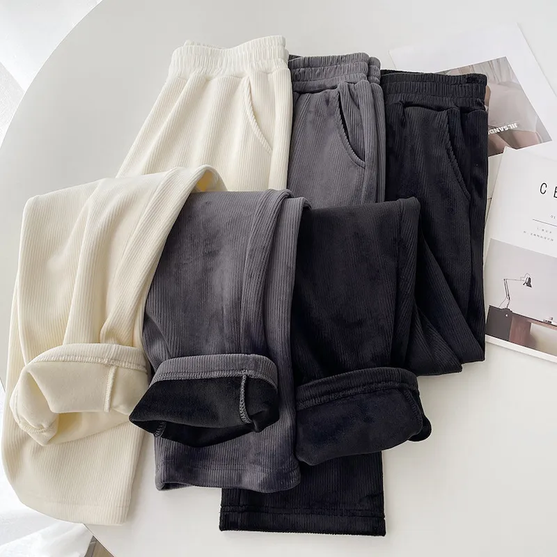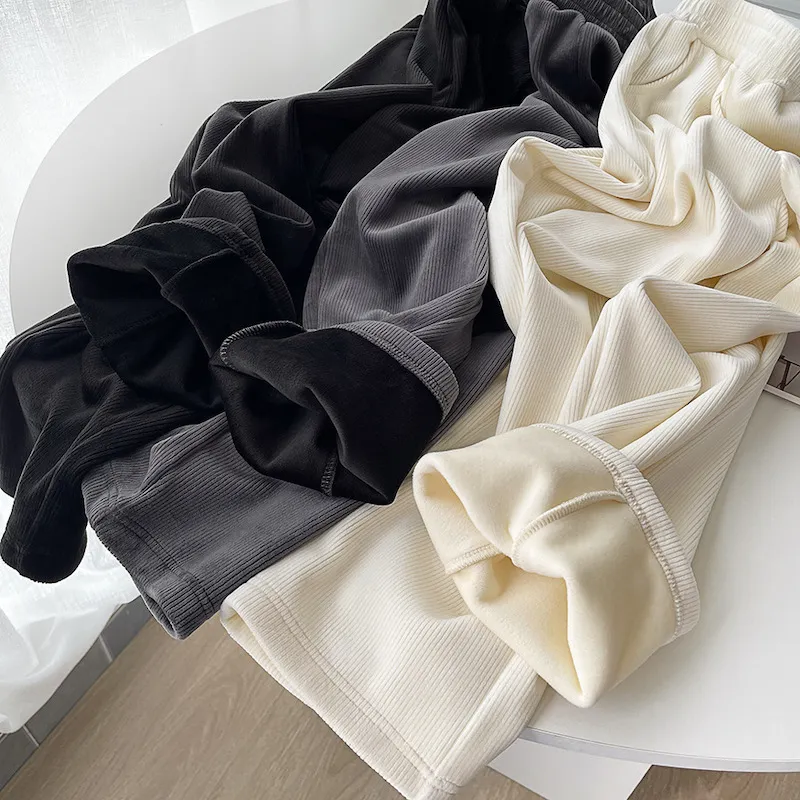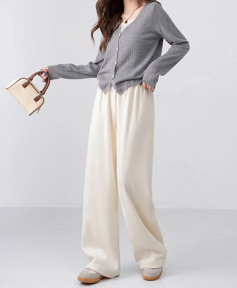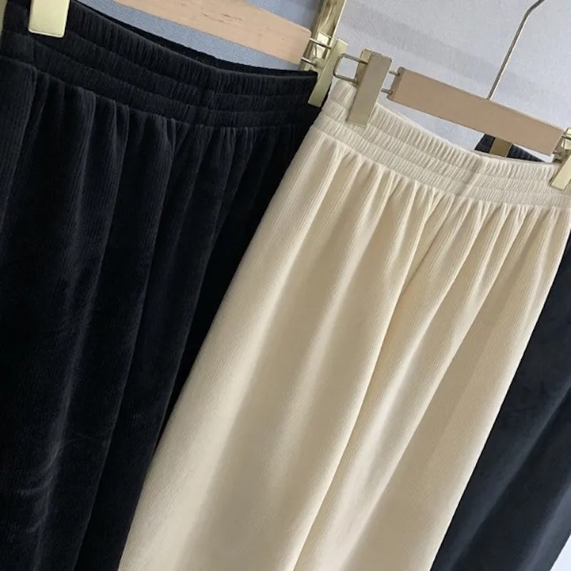 巴黎絮語.柔雪厚磅刷絨輕便寬褲 3色
