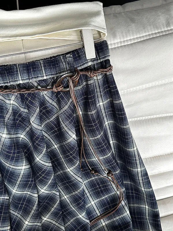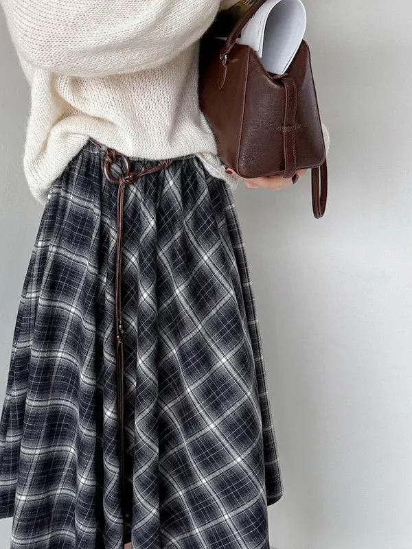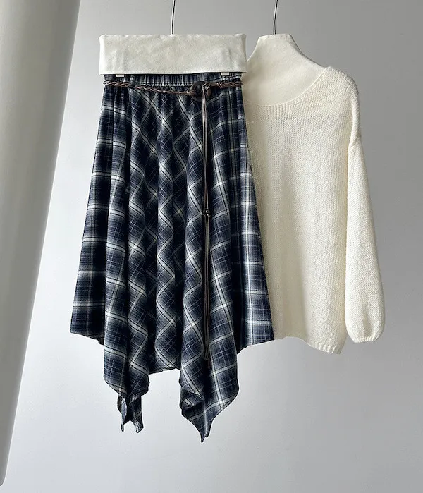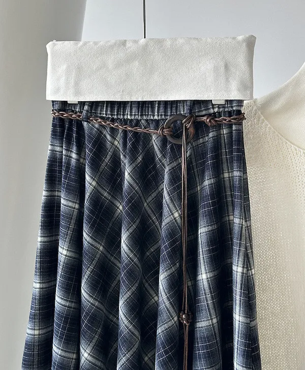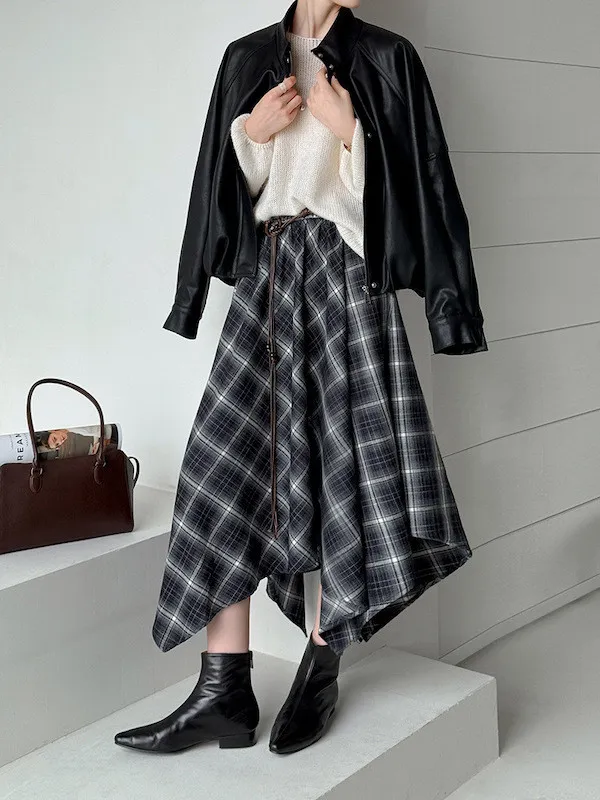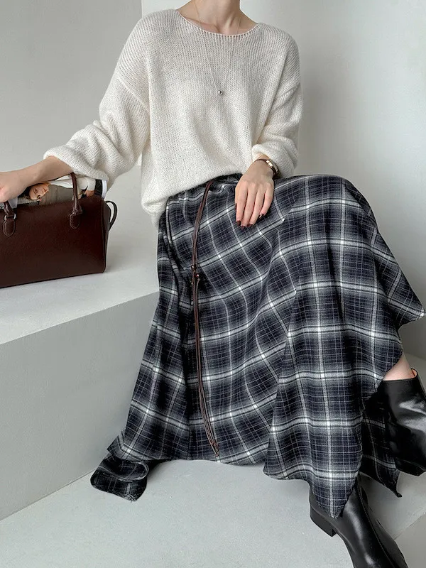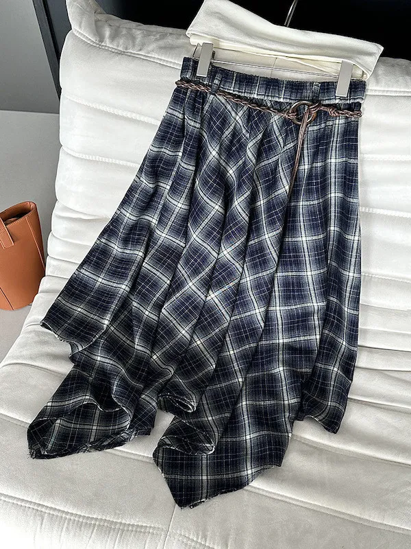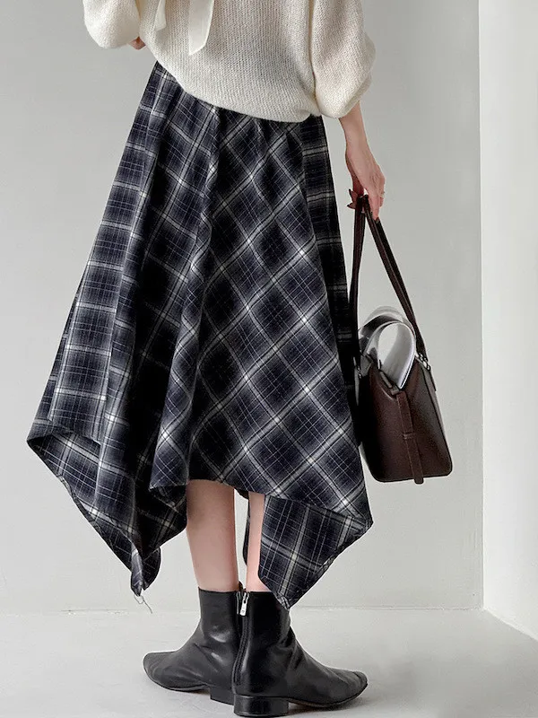 多變風格設計感格紋不規則傘擺長裙