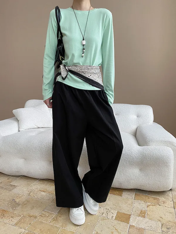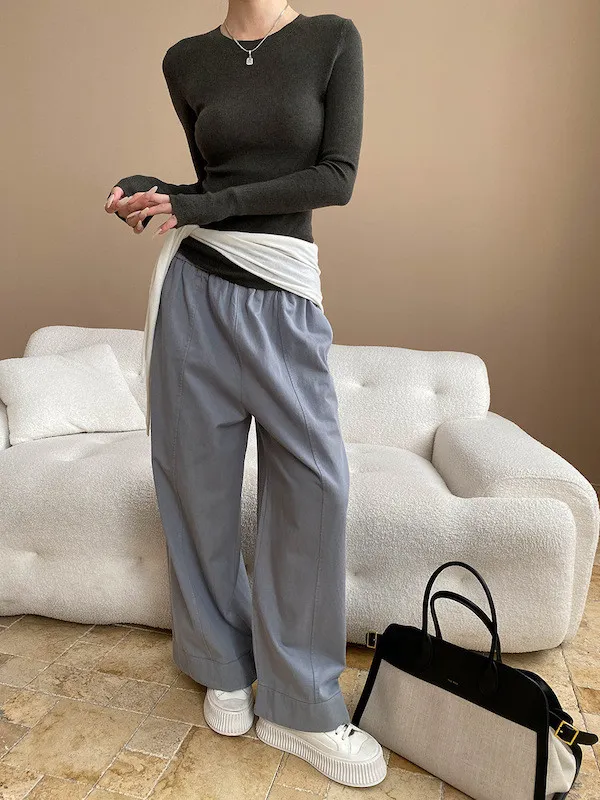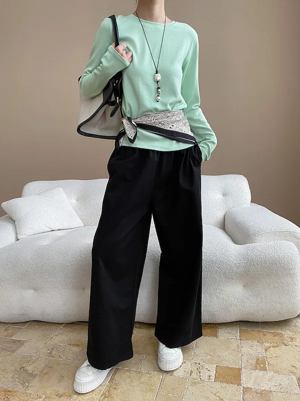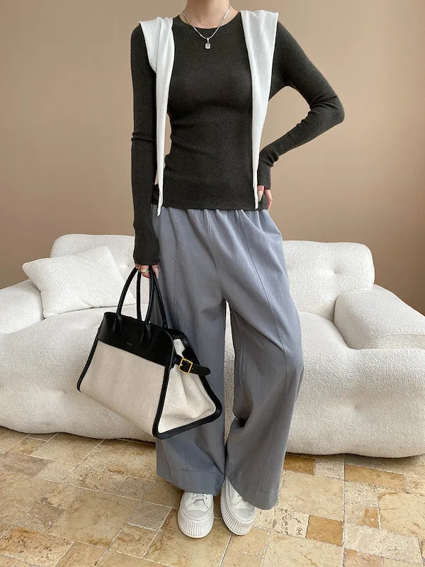 廓形褲版可以搭短版上衣show出腰線