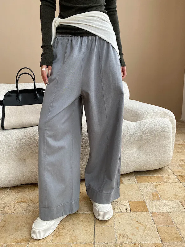 舒適天絲棉立體裁解構廓形寬褲 3色