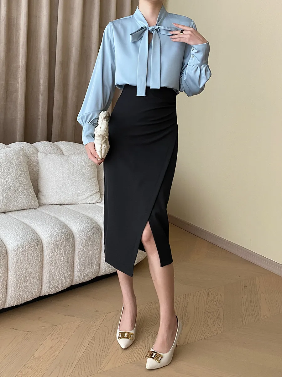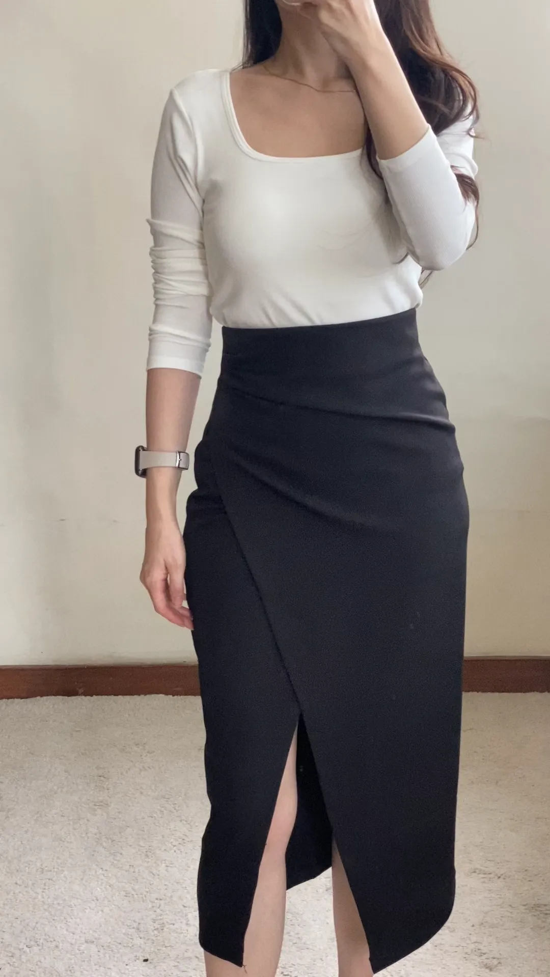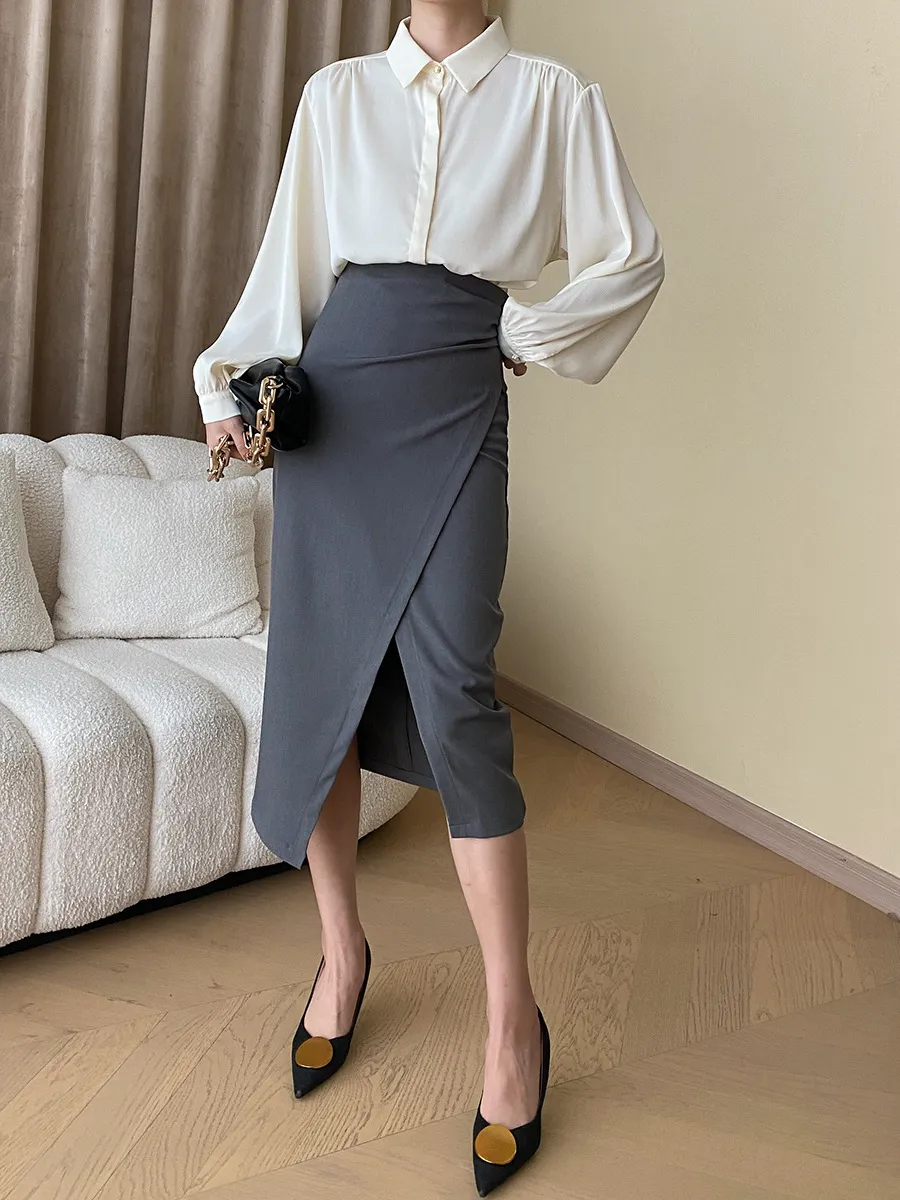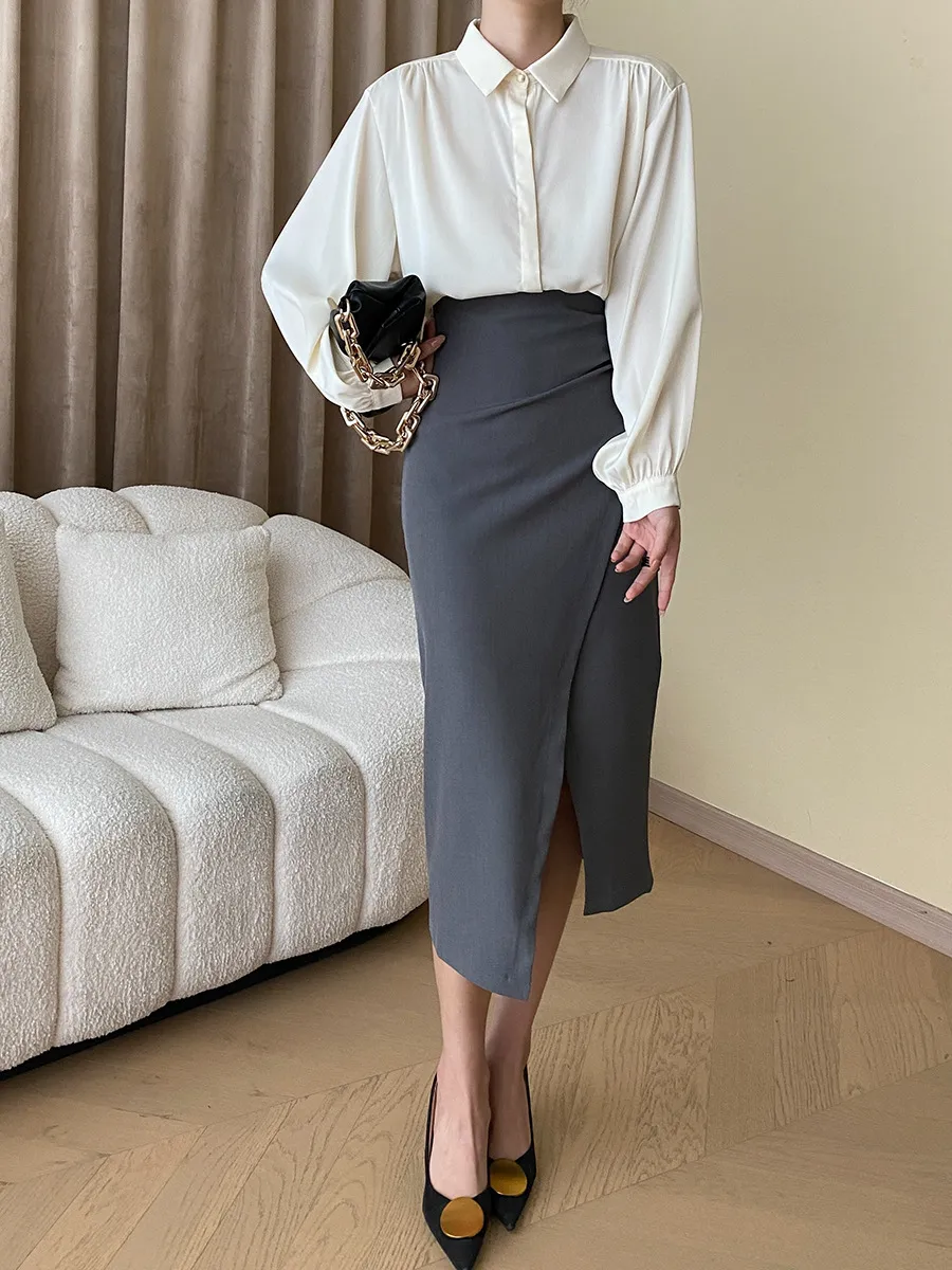法式側開岔半身裙 2色