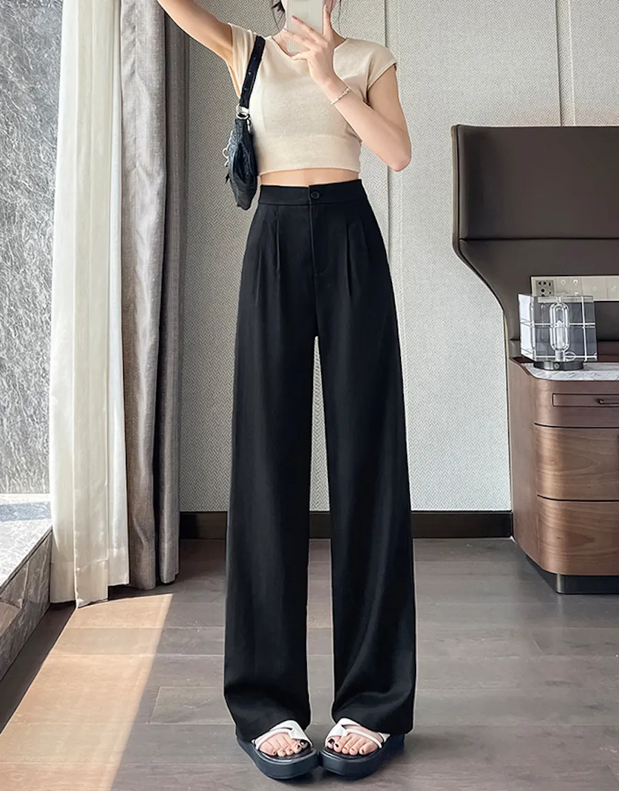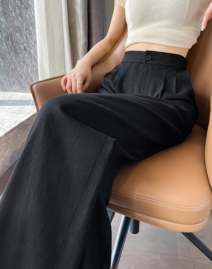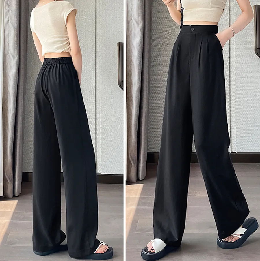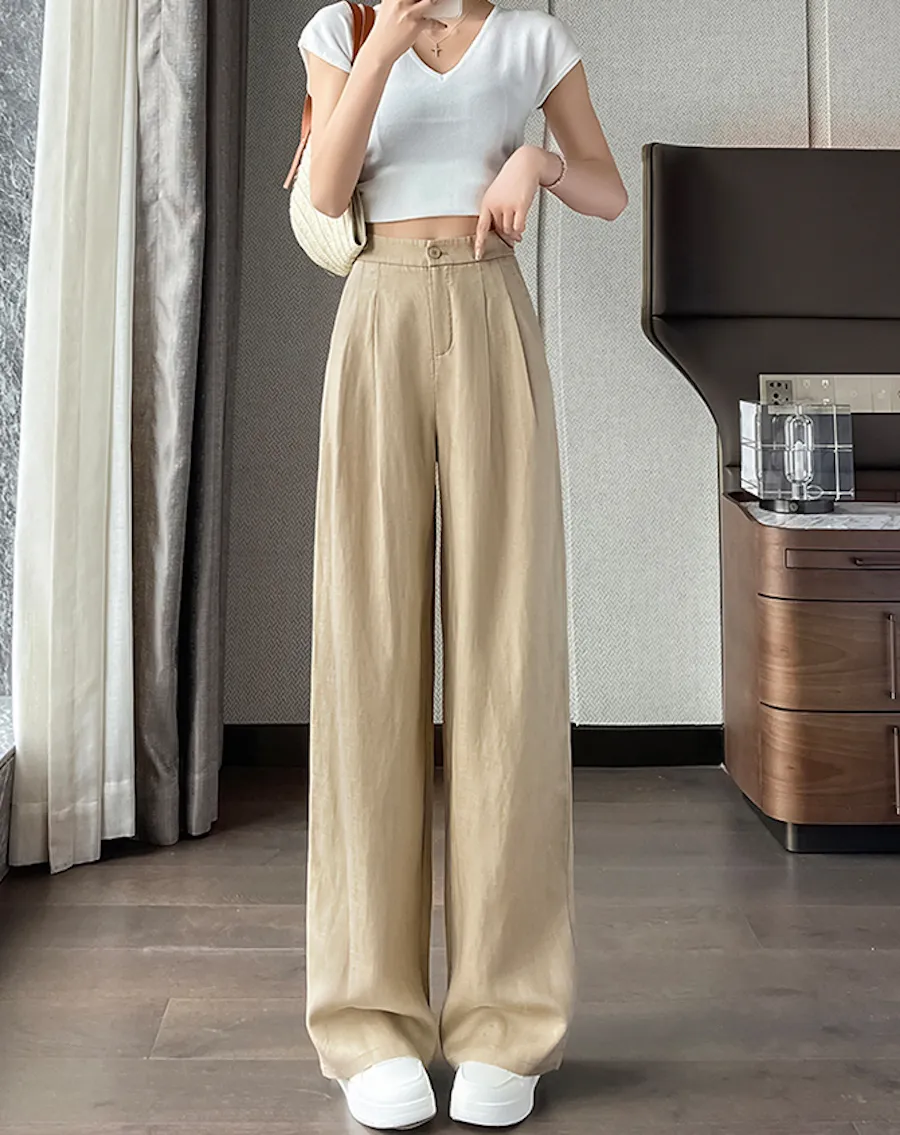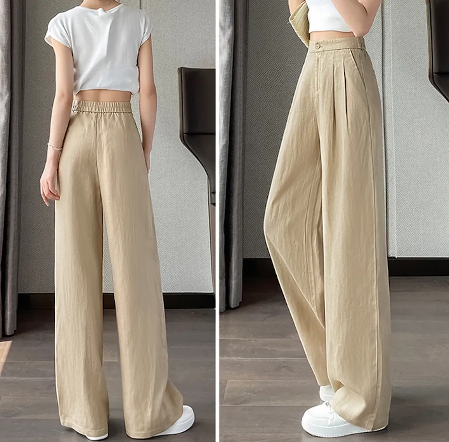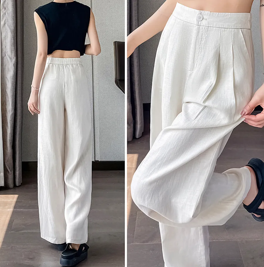 BF240804 高腰垂感,後腰舒適鬆緊設計輕盈冰絲麻感寬鬆長褲