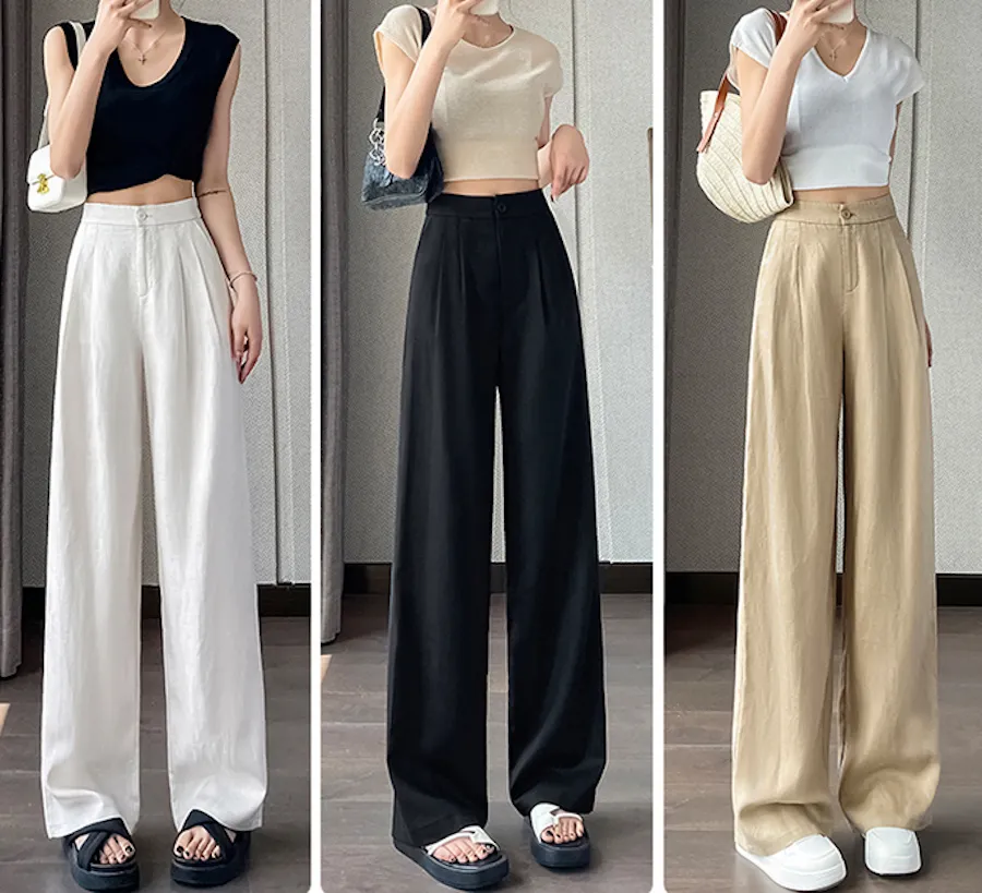 輕盈冰絲麻感寬鬆長褲 3色