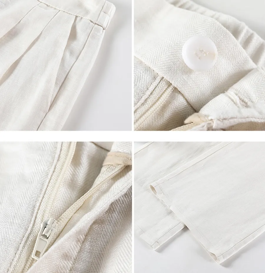 白色 配 JF240527 老錢渡假感~亞麻西裝背心套裝 白色背心