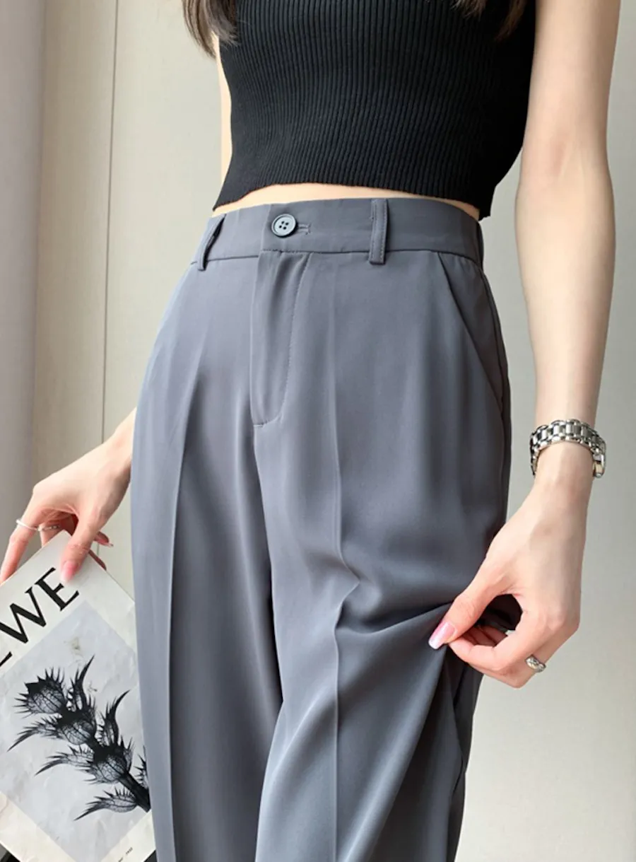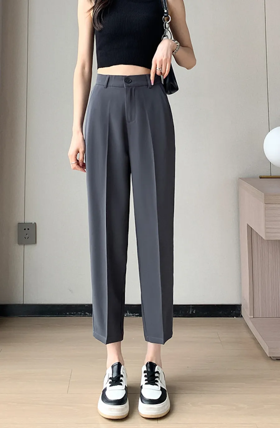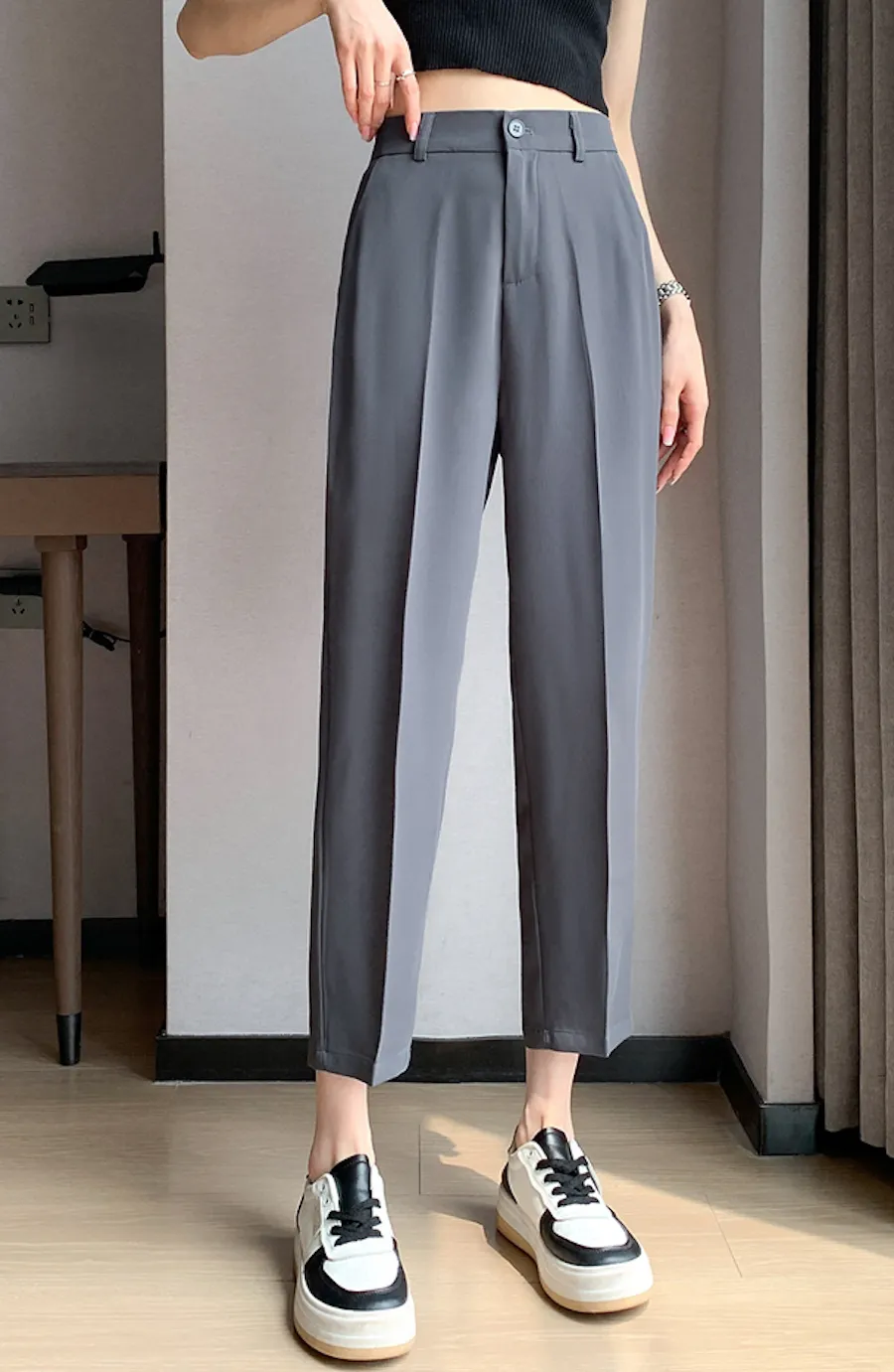 BF240805 冰絲雪紡高腰哈倫西裝褲 灰