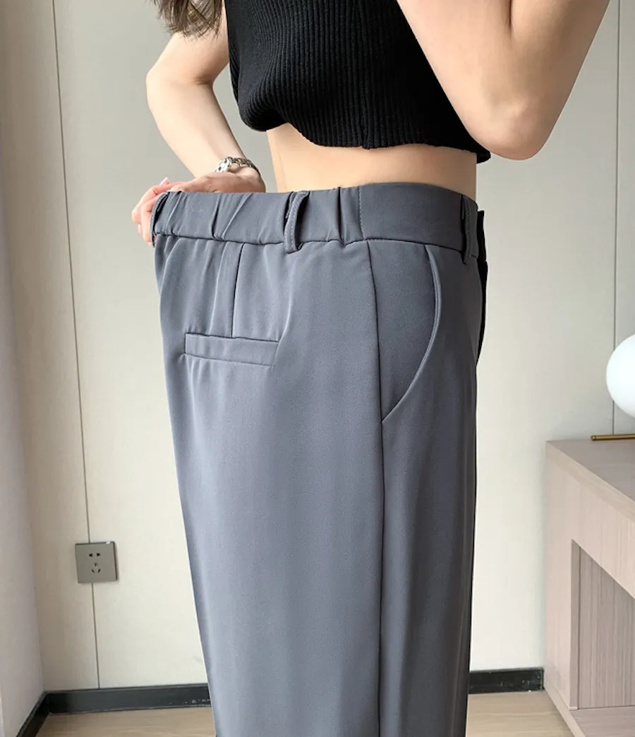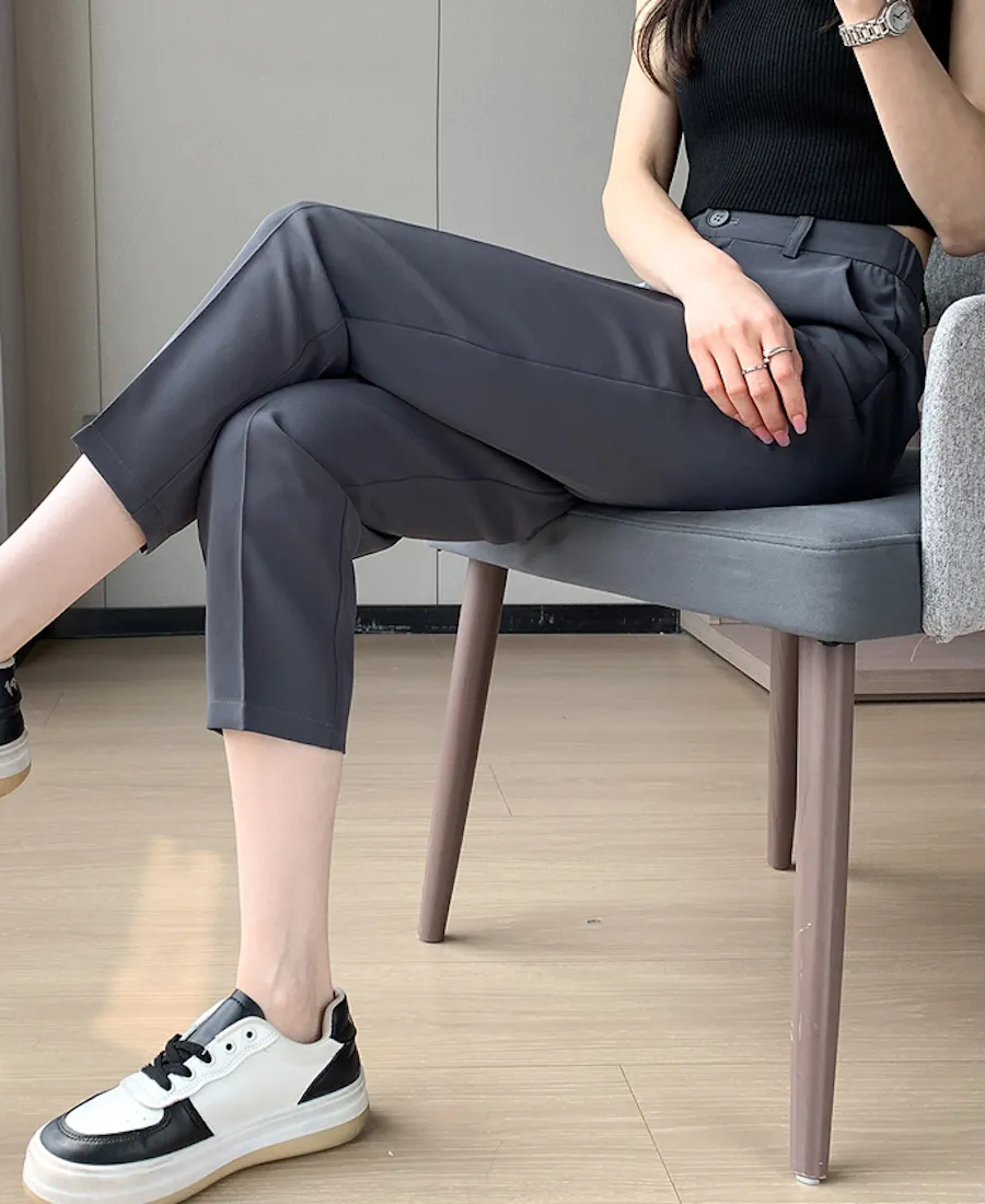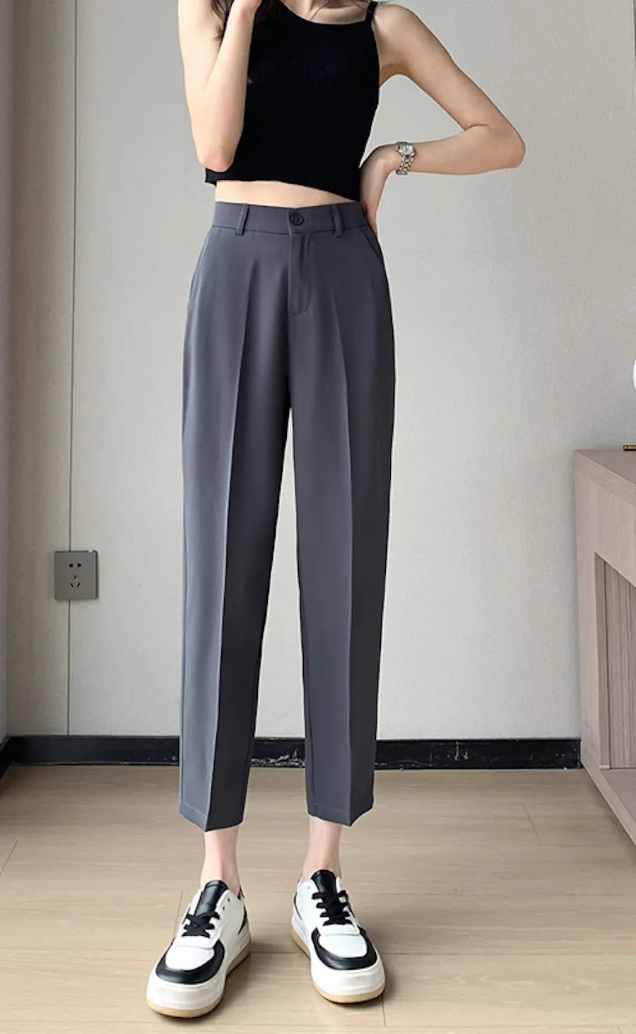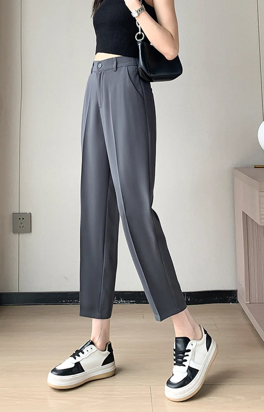 BF240805 冰絲雪紡高腰哈倫西裝褲 灰