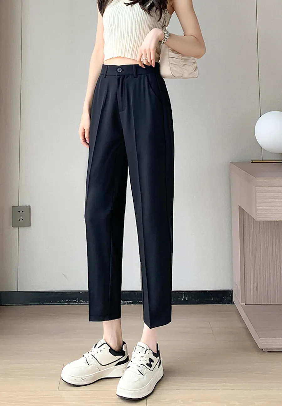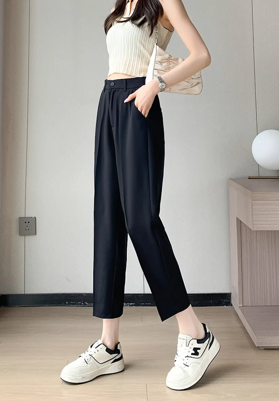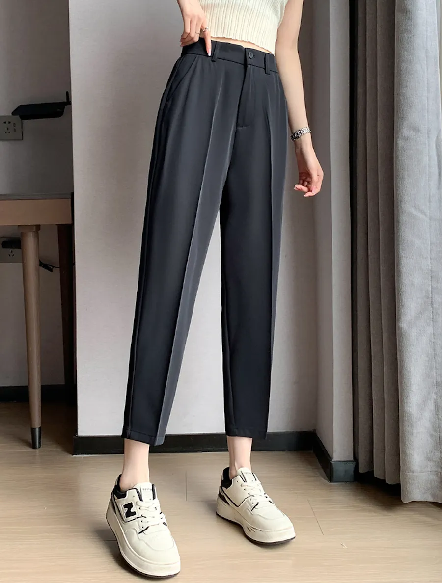 BF240805 涼爽舒適冰絲雪紡高腰哈倫西裝褲