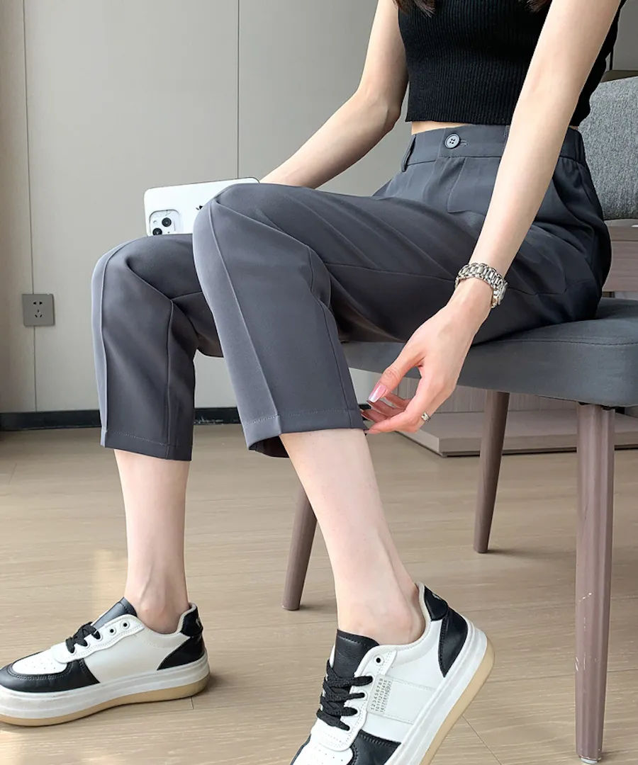 職場通勤.灰色雪紡哈倫九分西裝褲