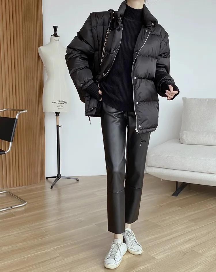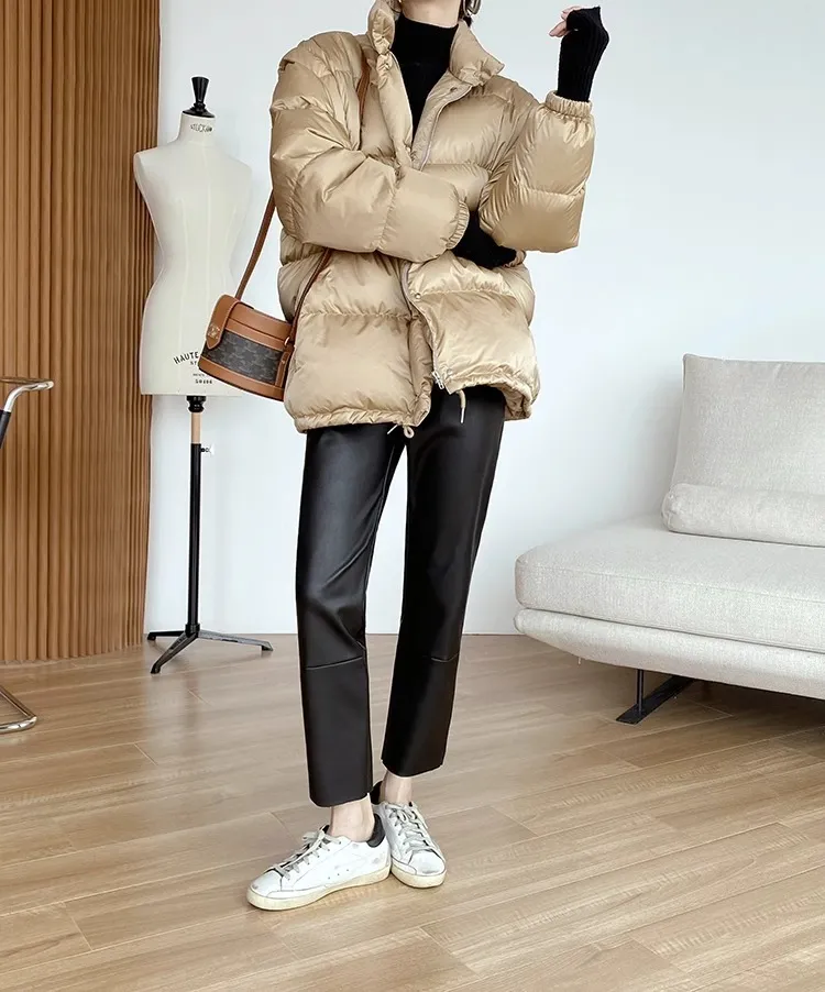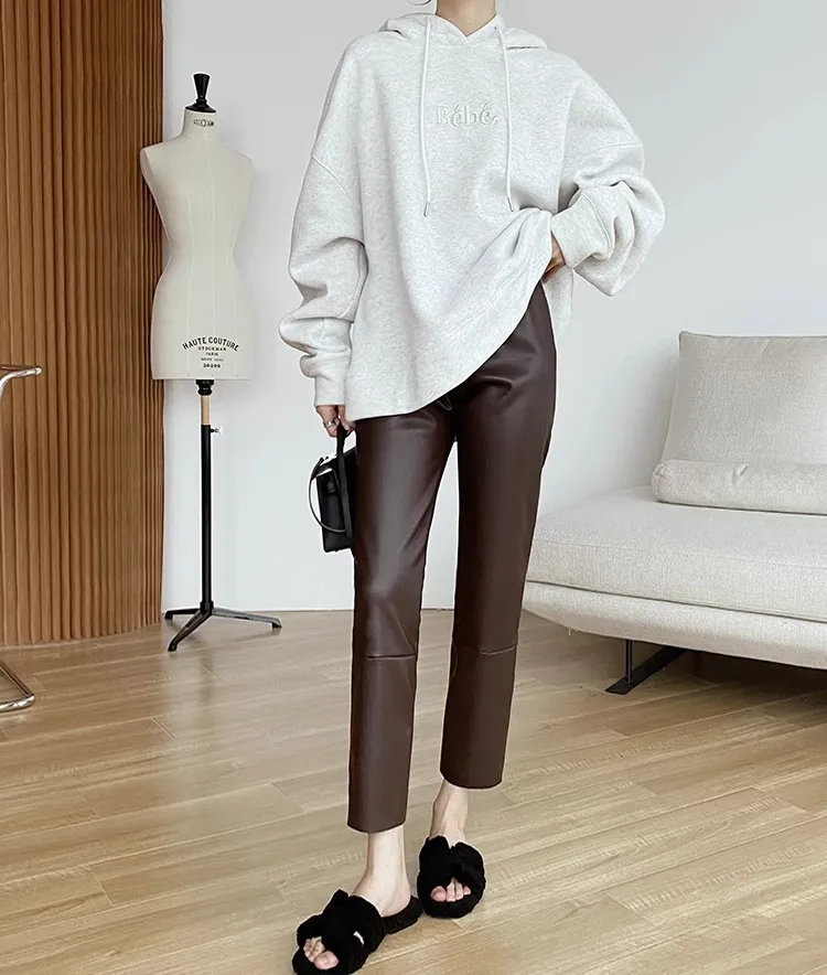 職場通勤.時髦咖色顯瘦皮褲 2色