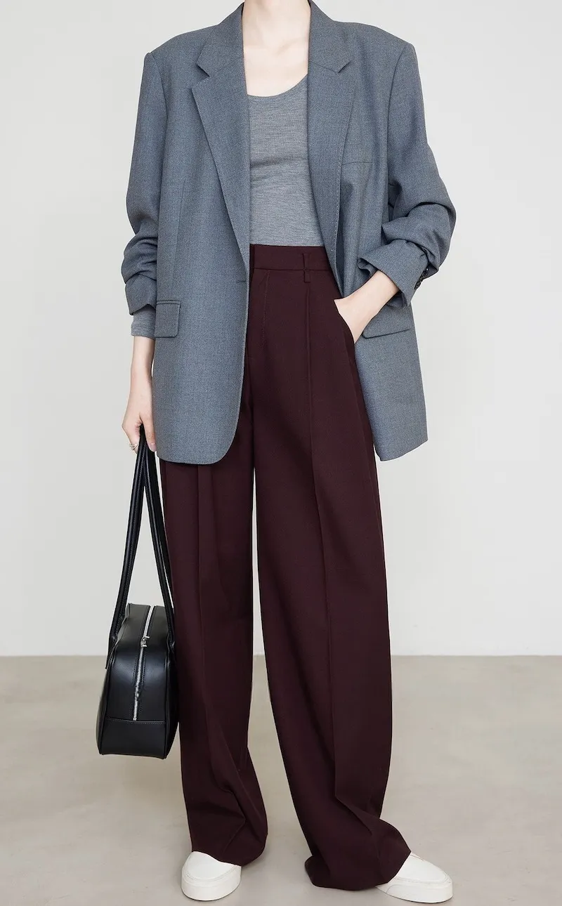 闊腿剪裁融入西裝褲的俐落線條