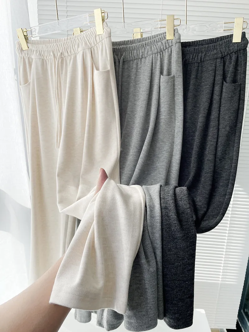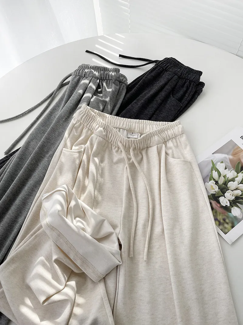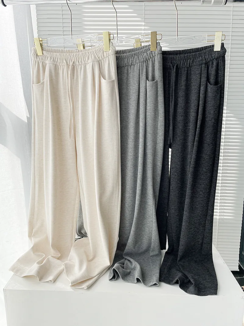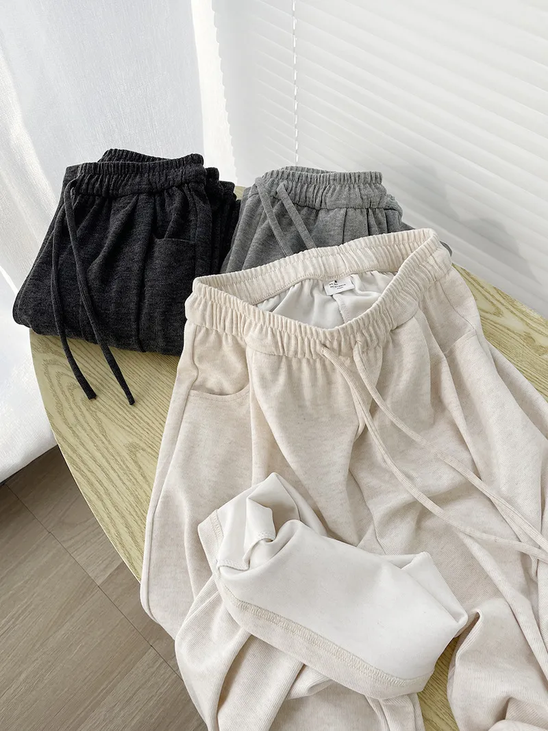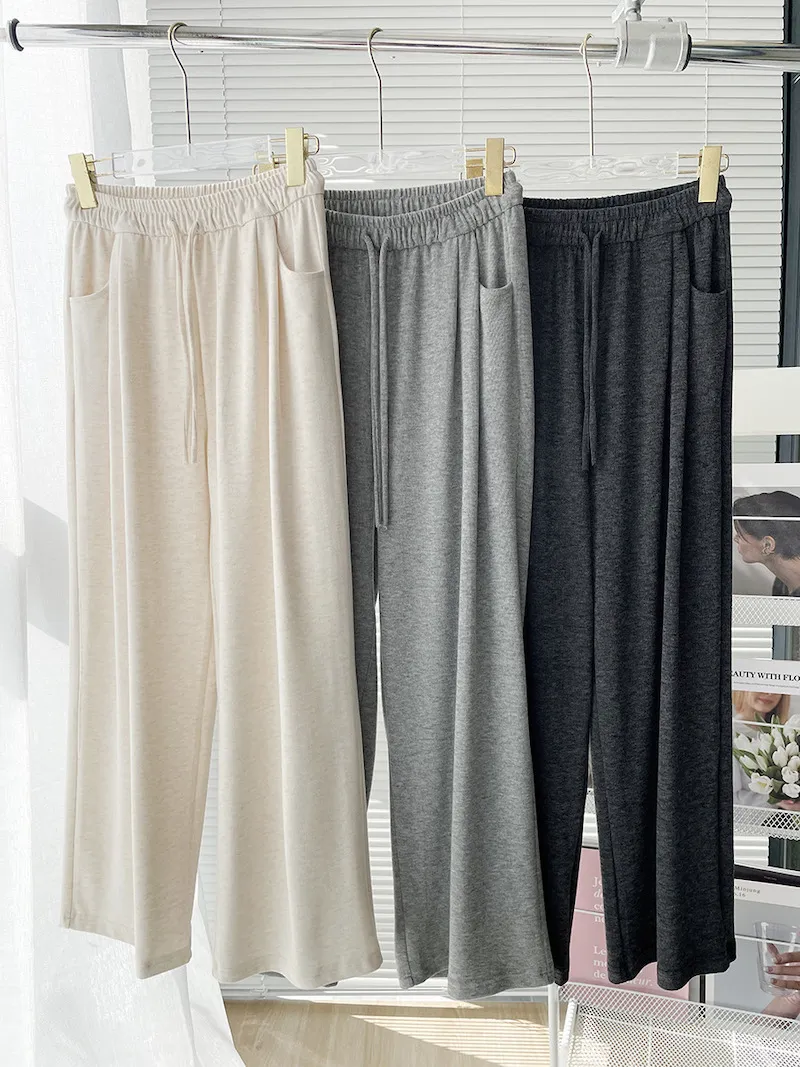 擁抱雲朵.薄糯米高腰抽繩休閒褲 3色