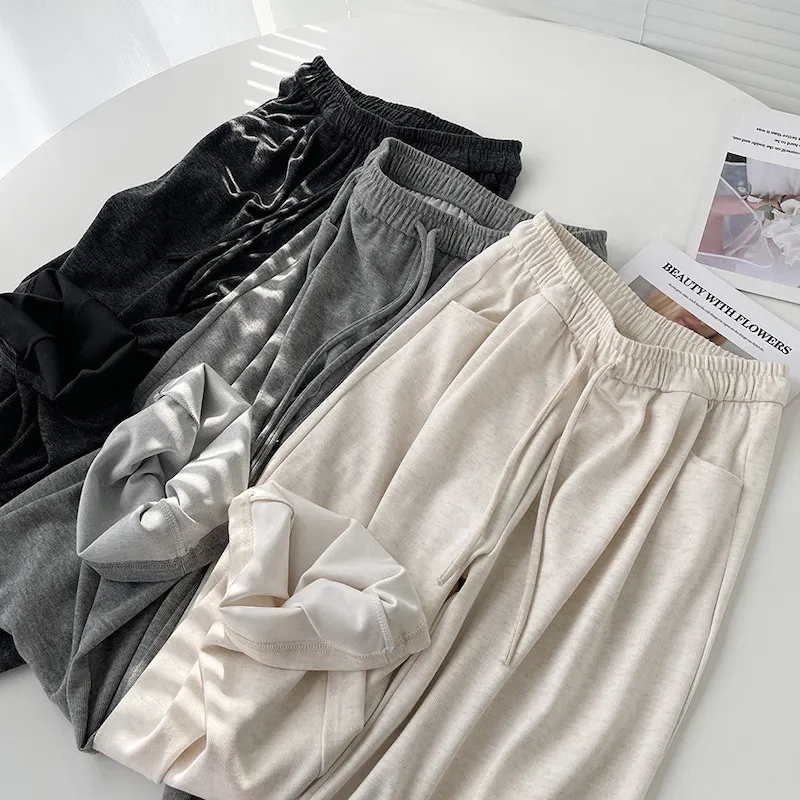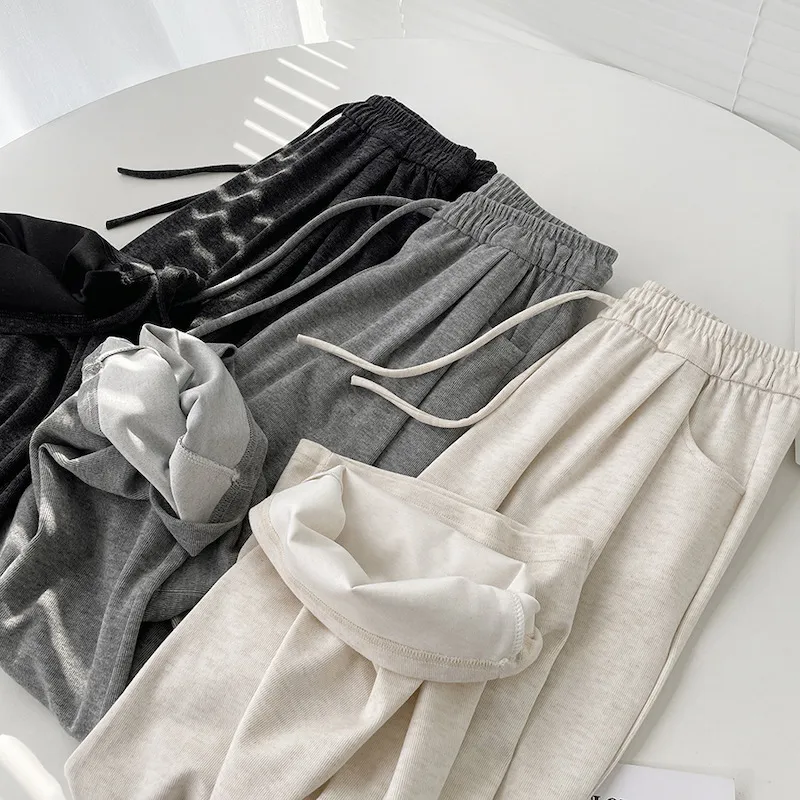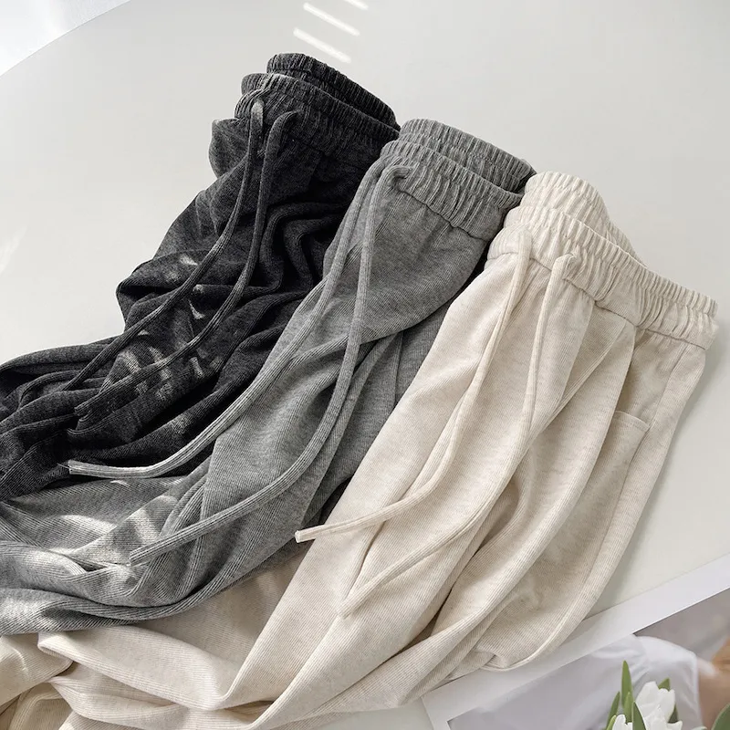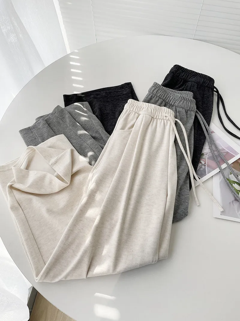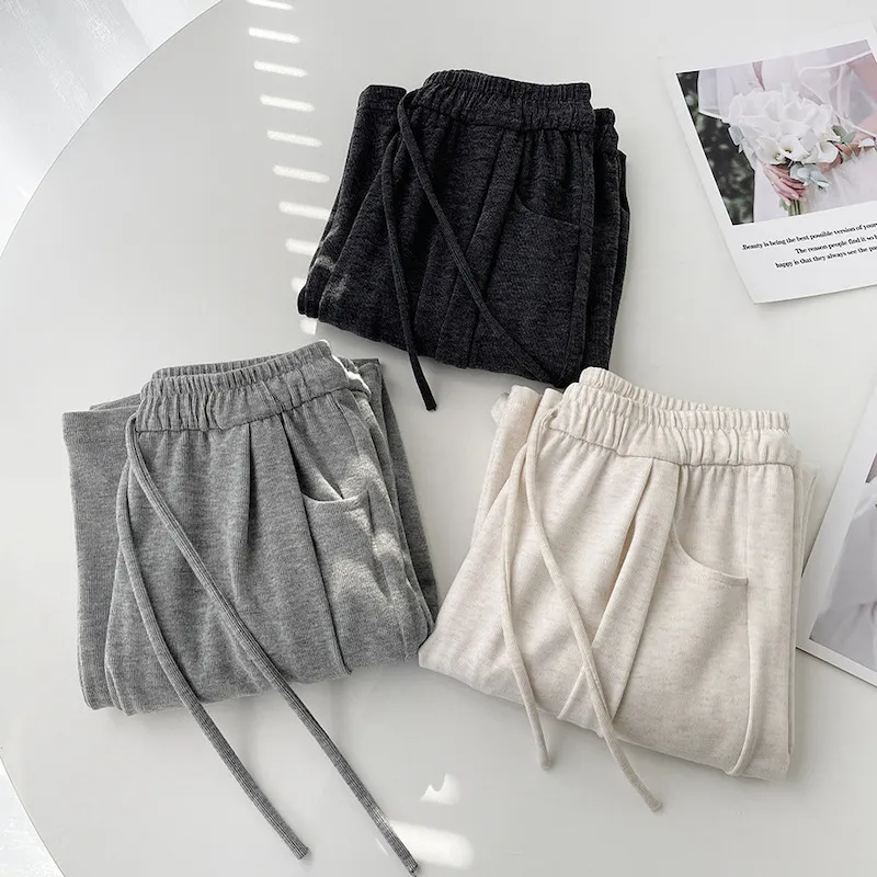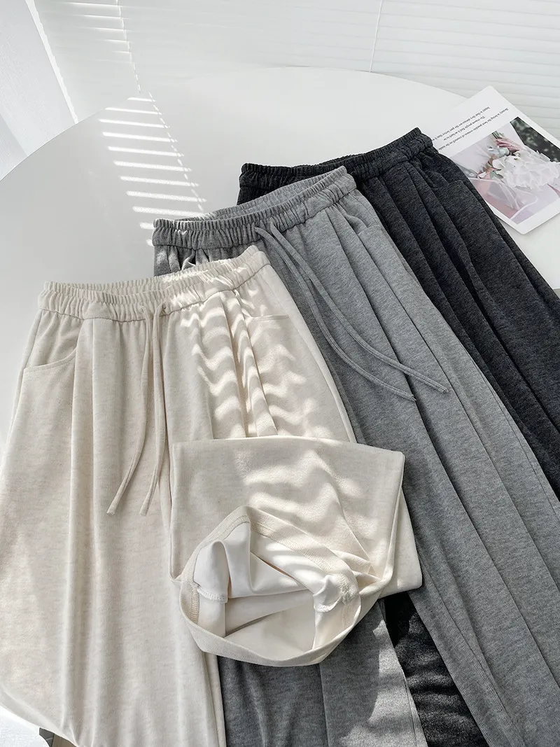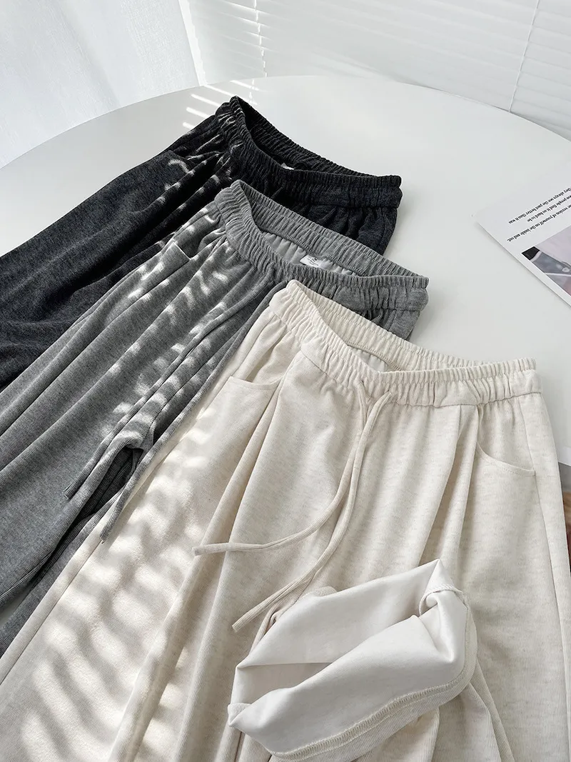 擁抱雲朵.薄糯米高腰抽繩休閒褲 3色