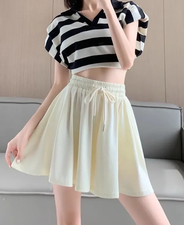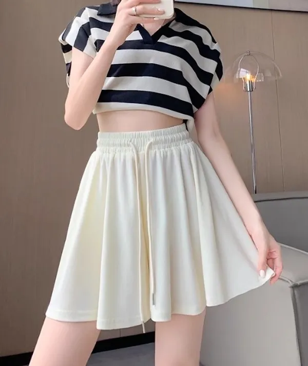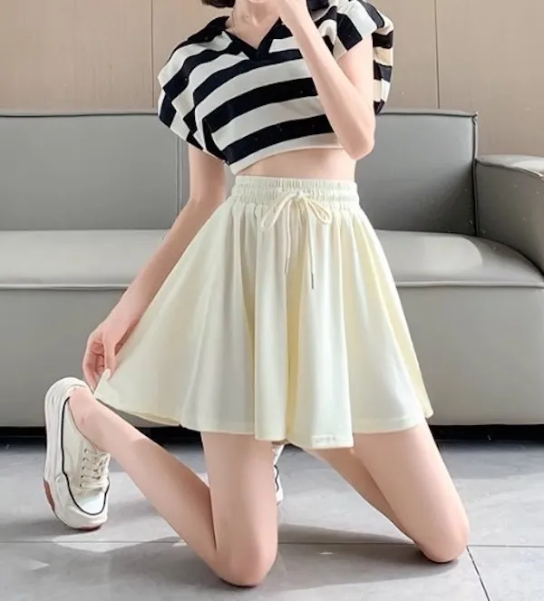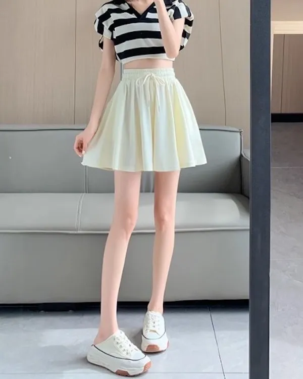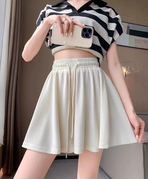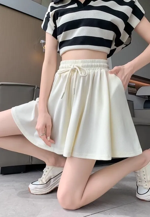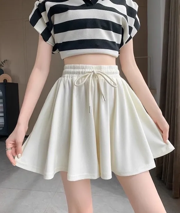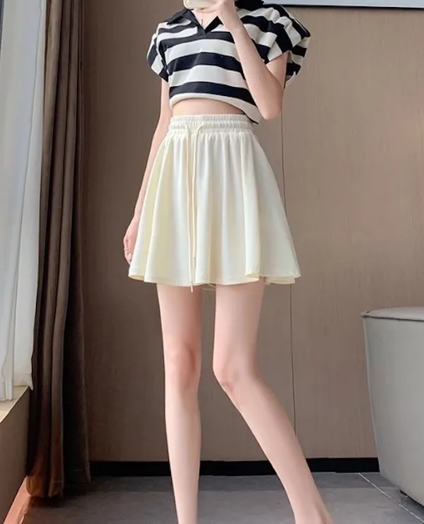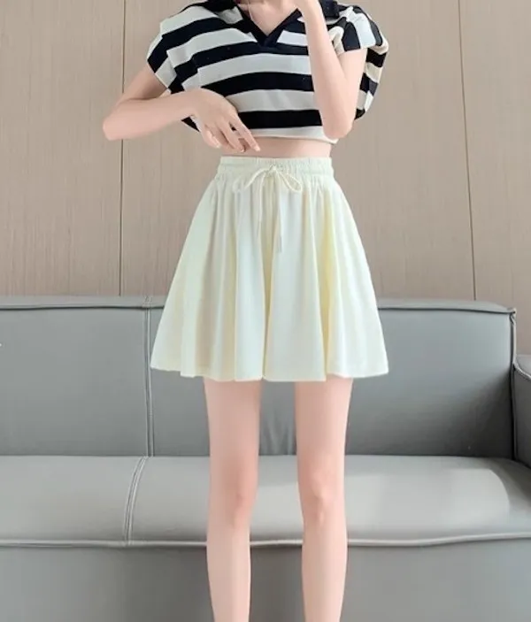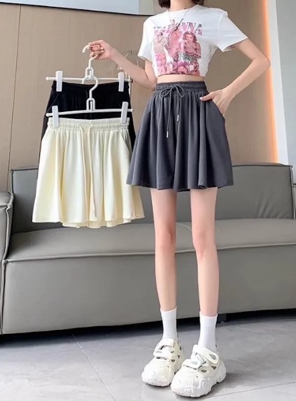 夏日運動感 垂感百褶抽繩短褲 3色