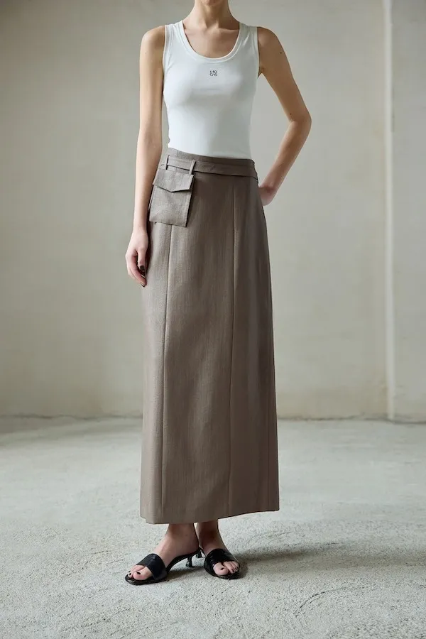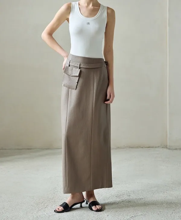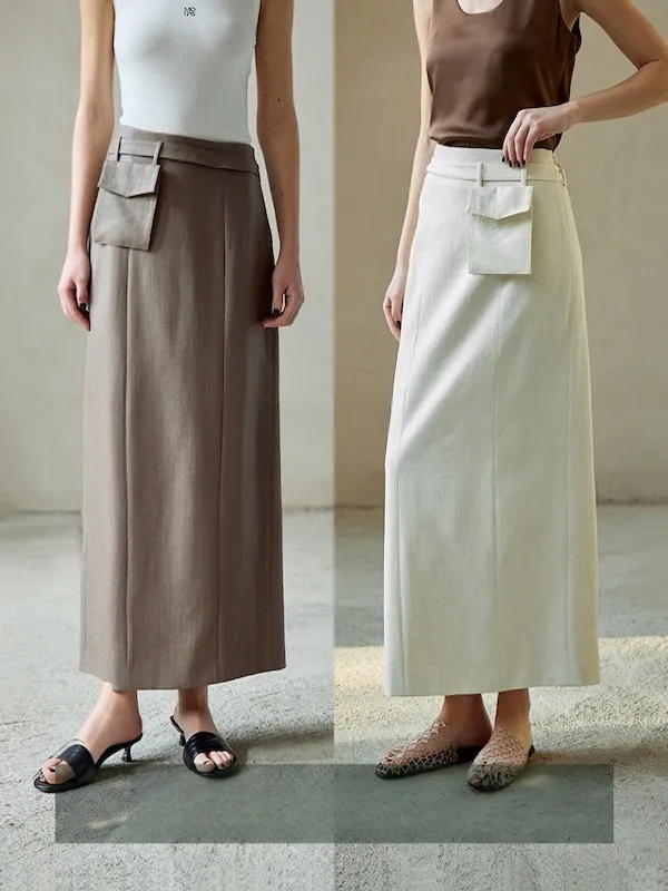 慵懶午後 側口袋設計感斜開叉長裙 2色