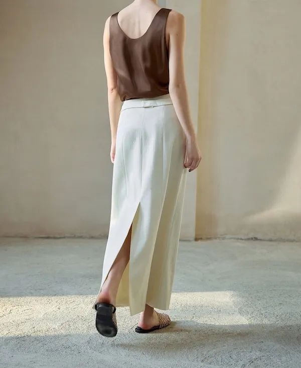 這款長裙採用挺括有質感的面料,穿上身超有氣場
