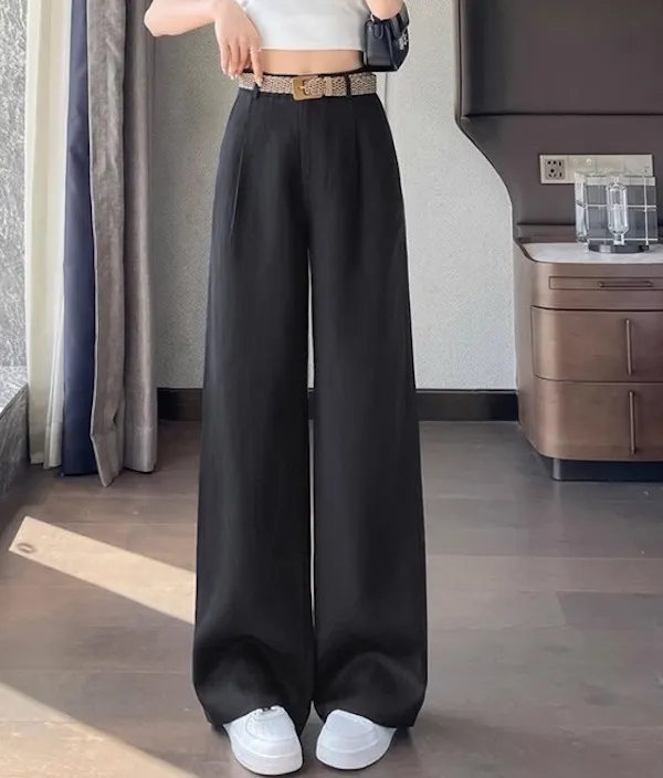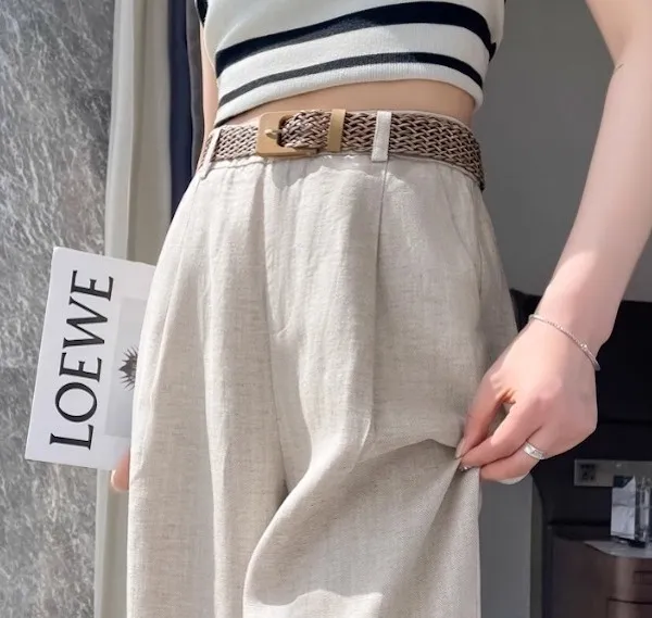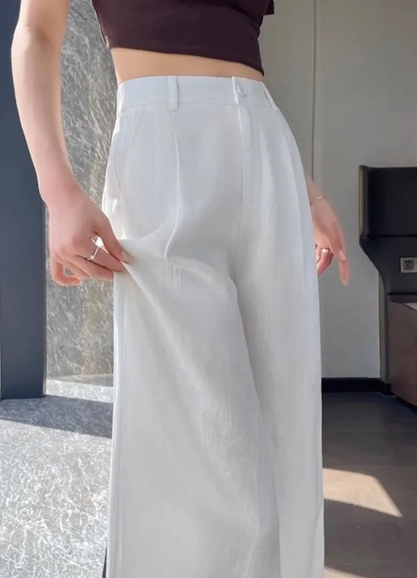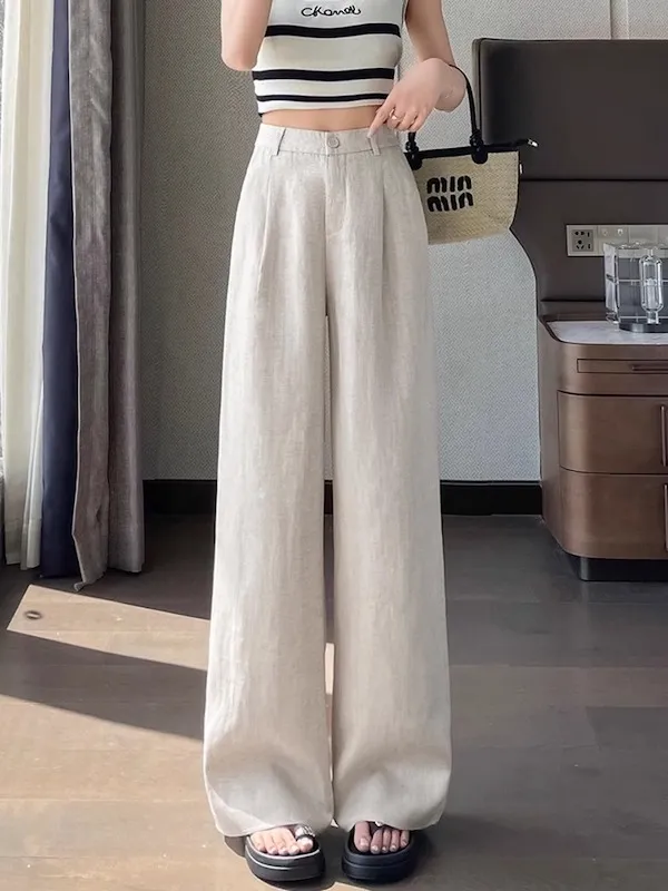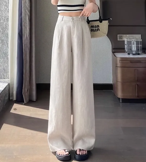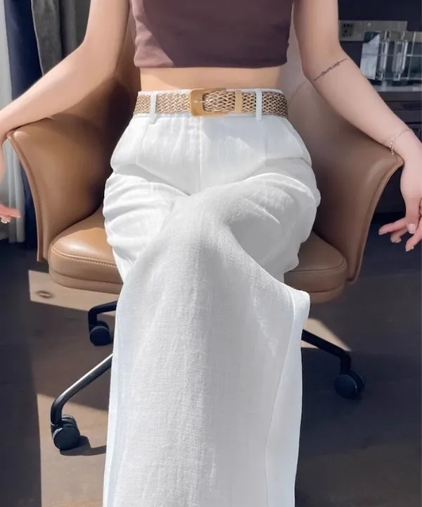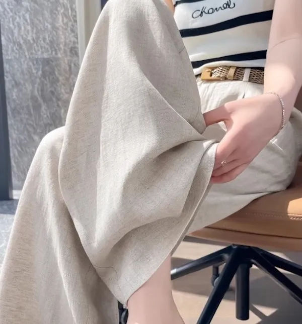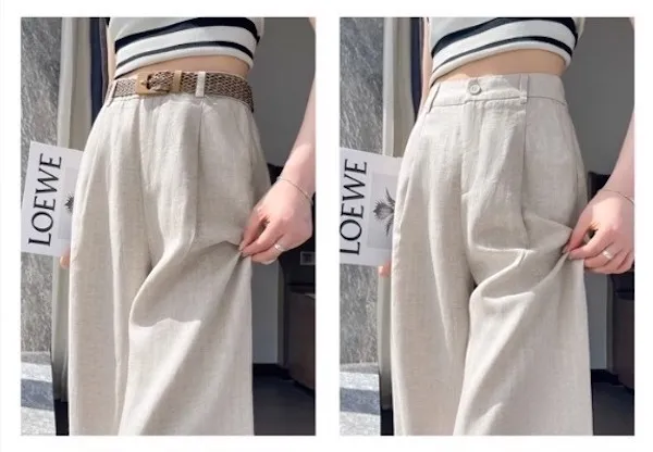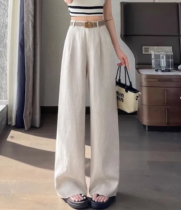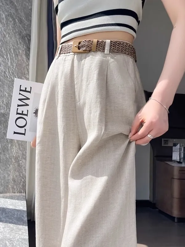 夏日冰涼亞麻高腰寬褲(附腰帶) 3色