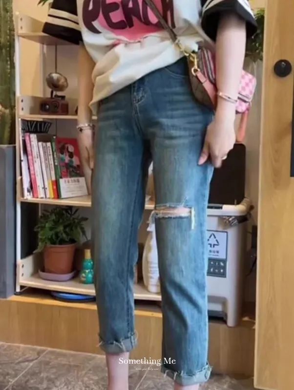 美系牛仔九分破褲