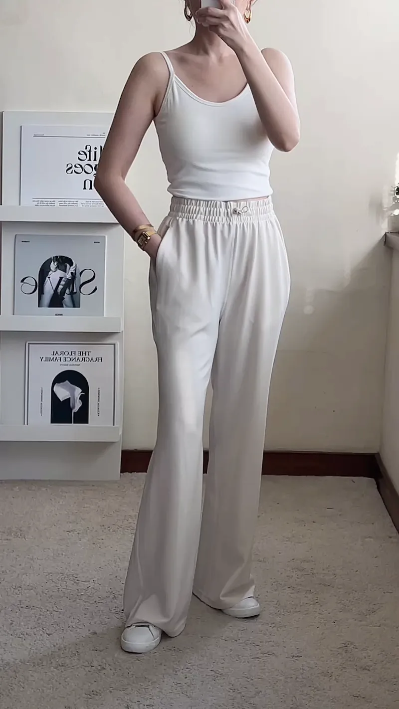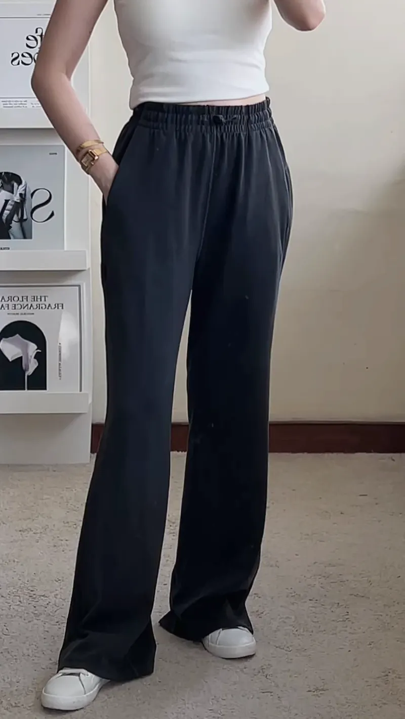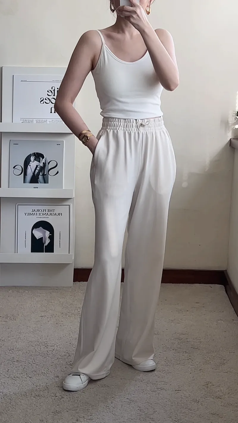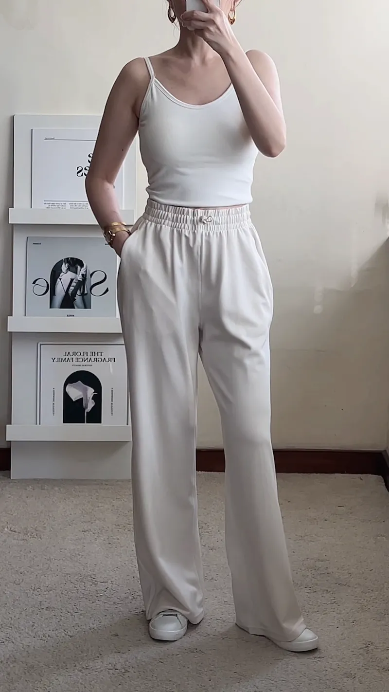 慢活午後 雲朵涼感直筒鬆緊休閒褲 4色