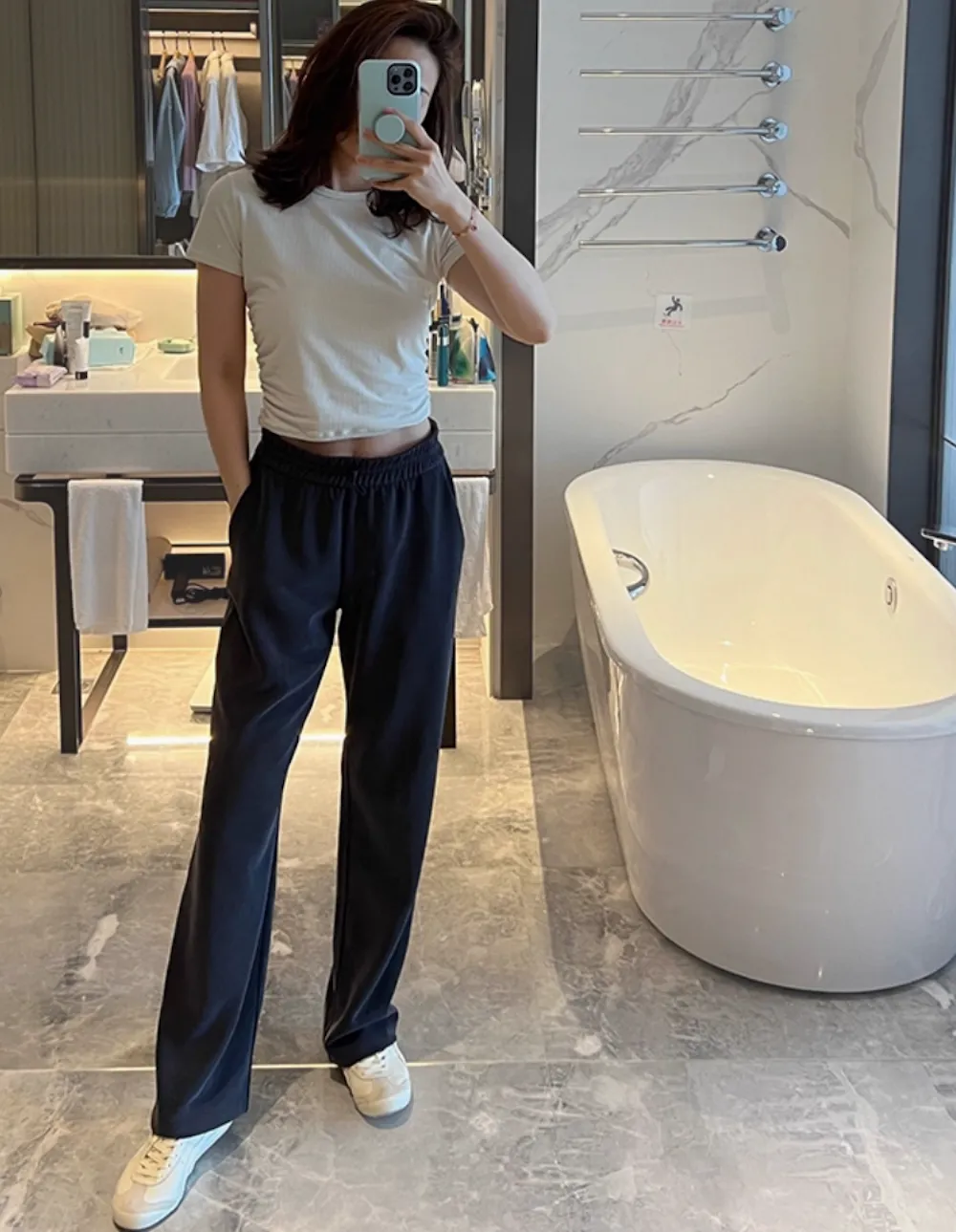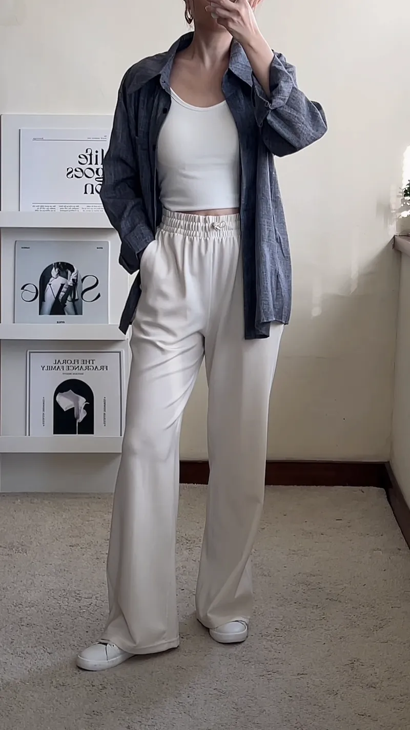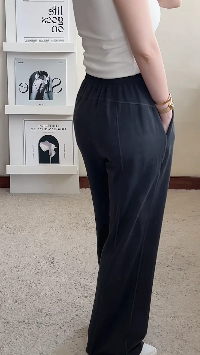 慢活午後 雲朵涼感直筒鬆緊休閒褲 4色