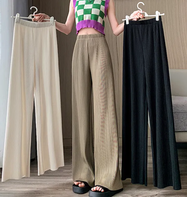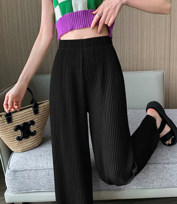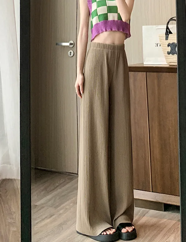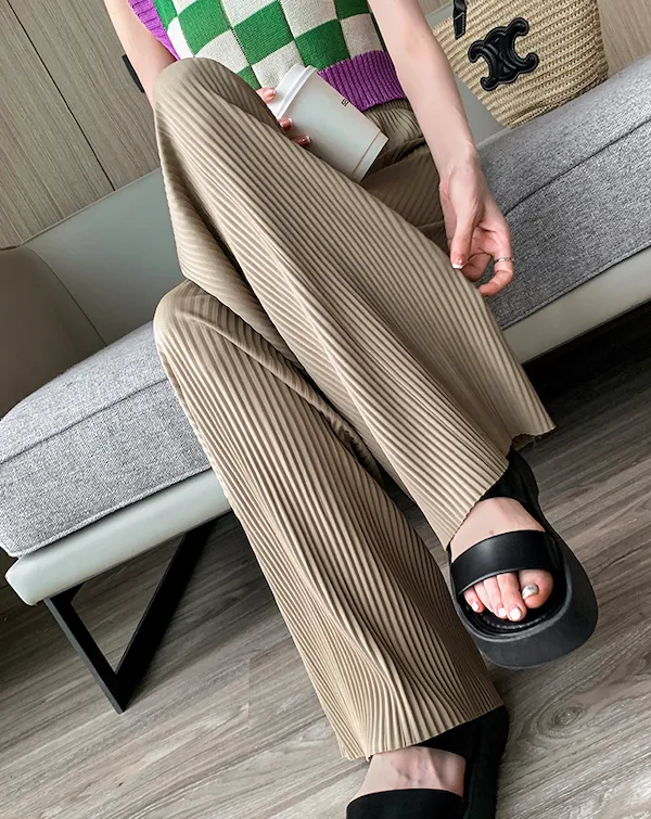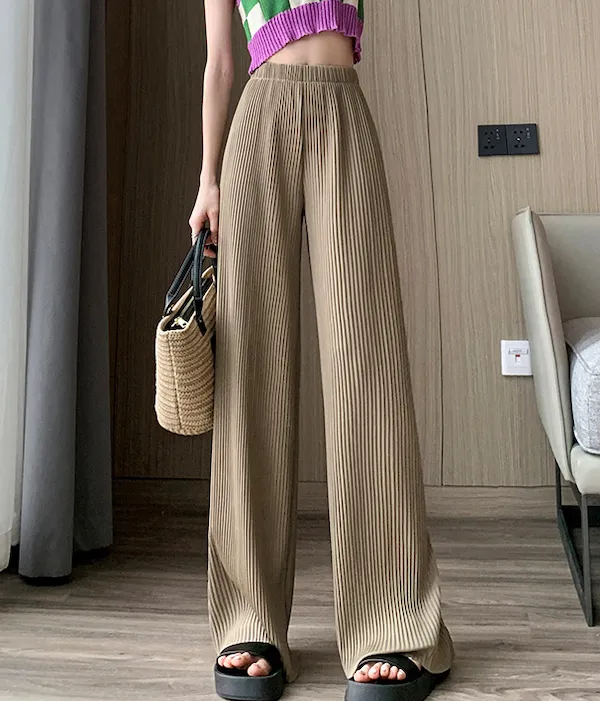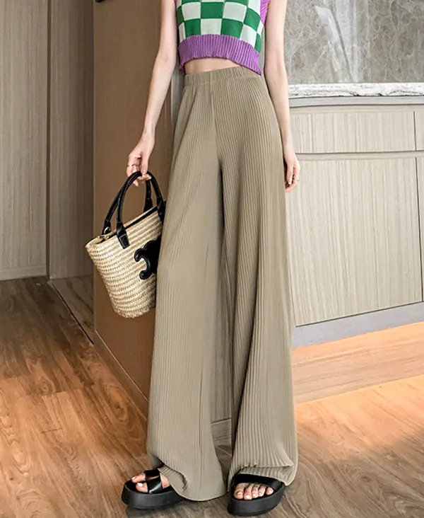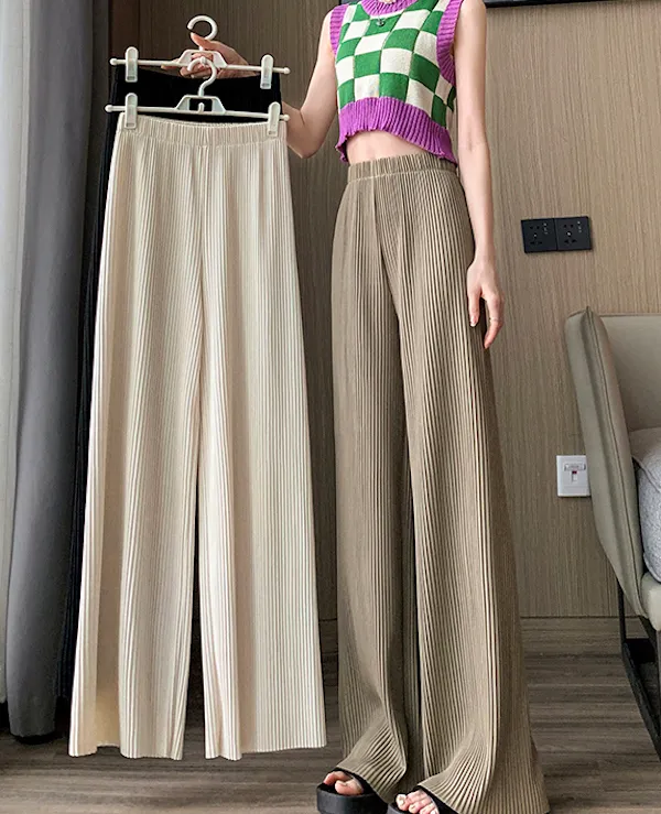 微風冰絲 高腰壓摺垂感輕便褲 3色