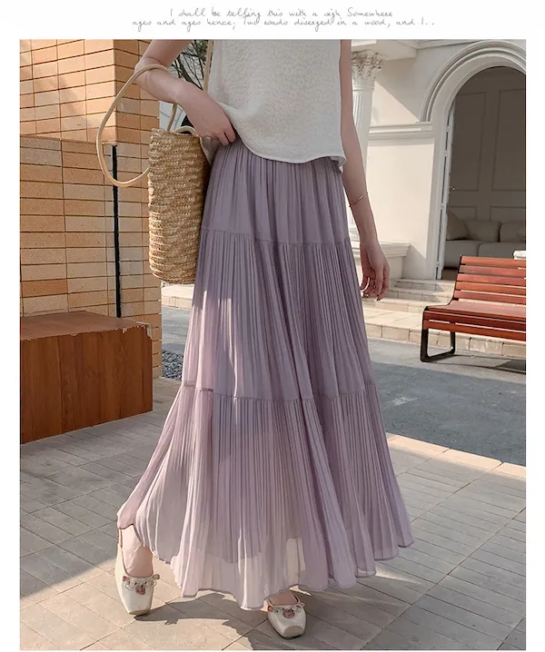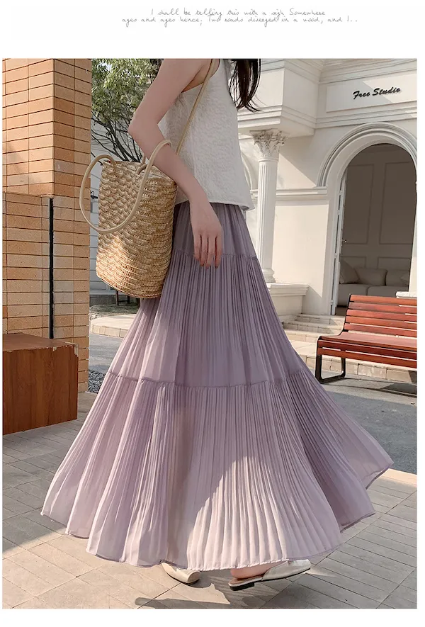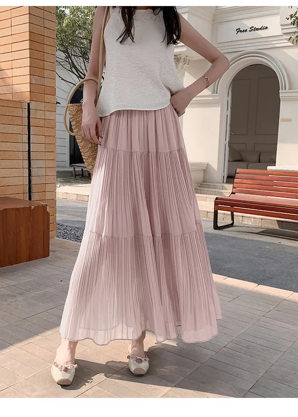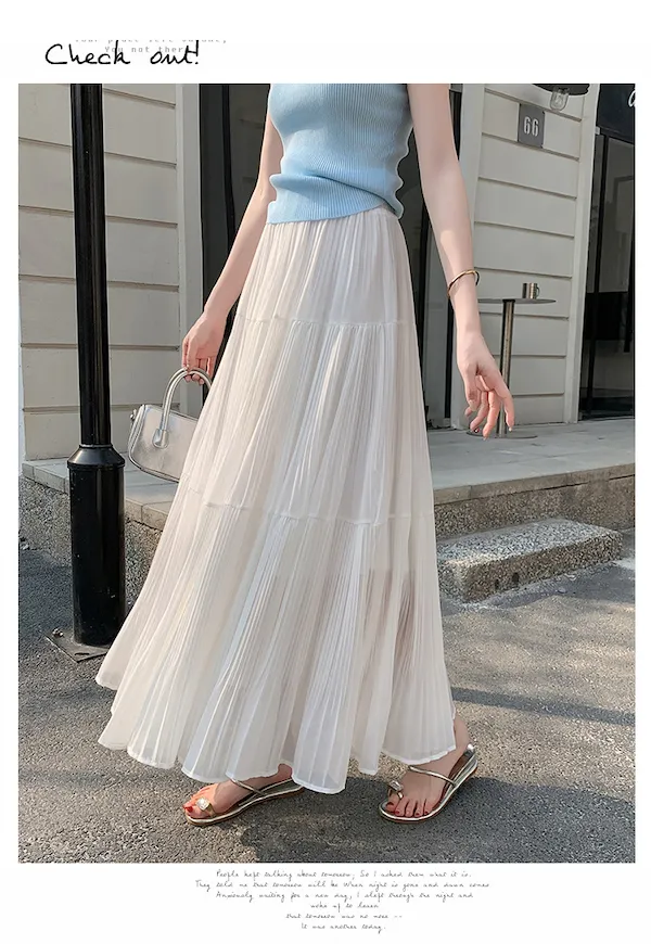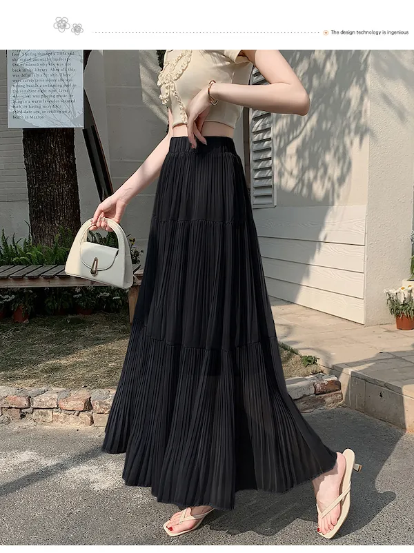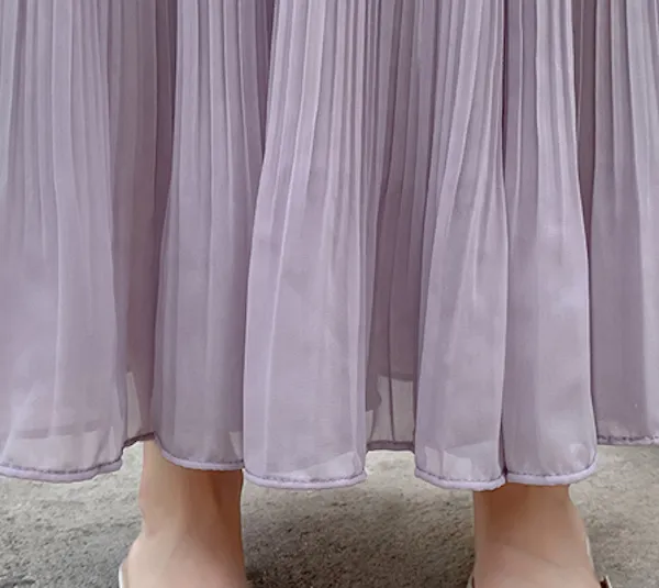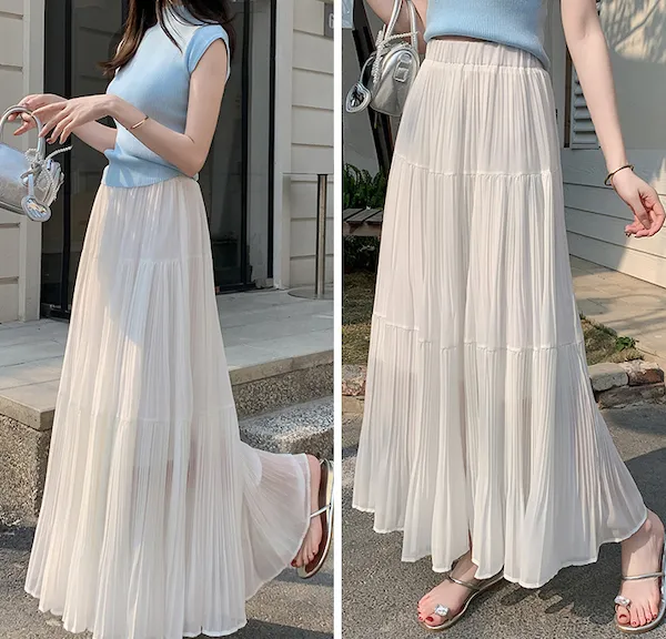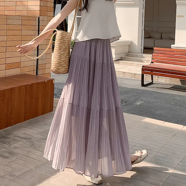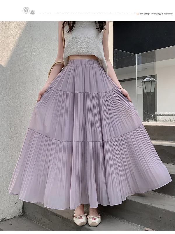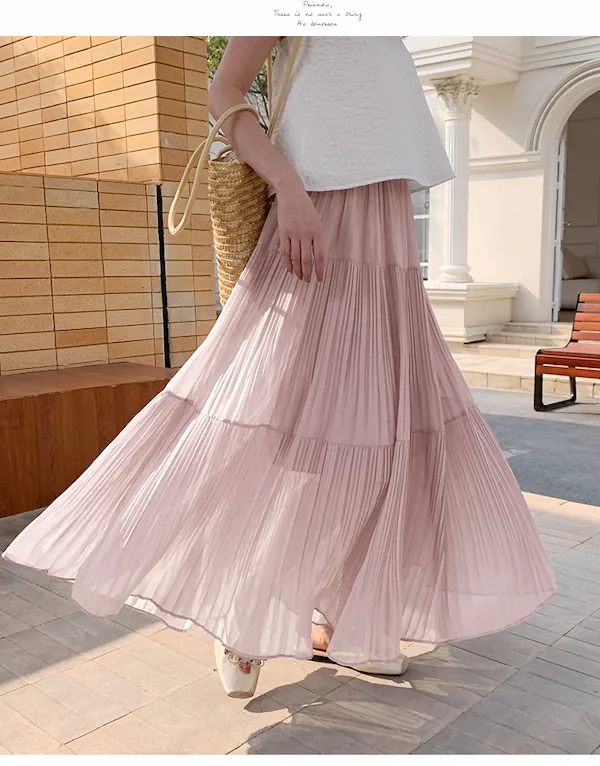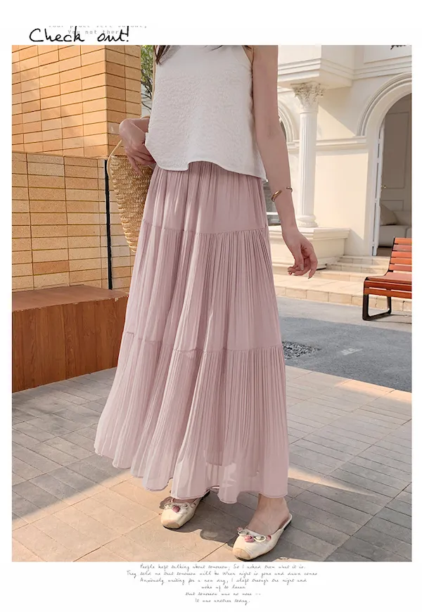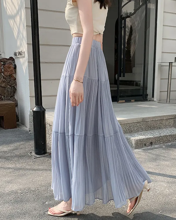 飄逸仙女感~百褶層次高腰雪紡長裙 7色