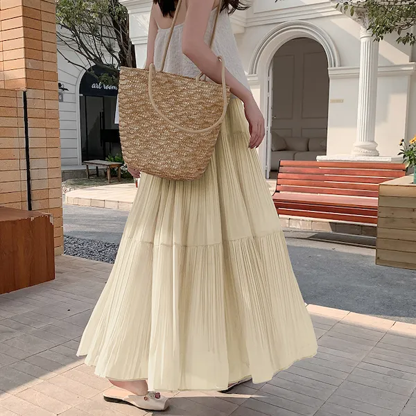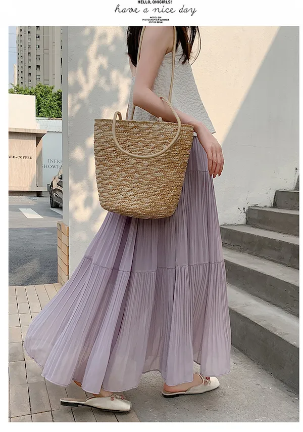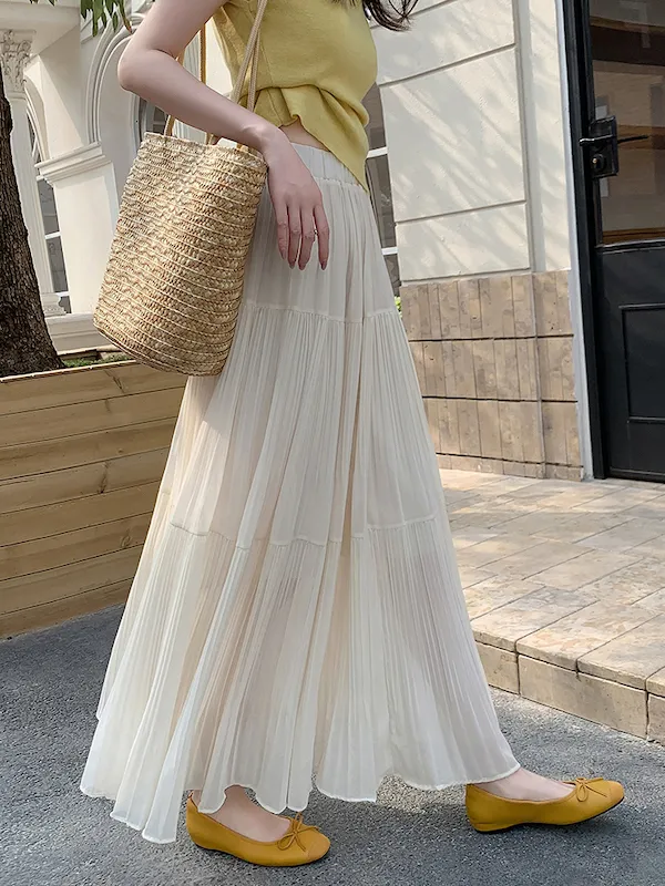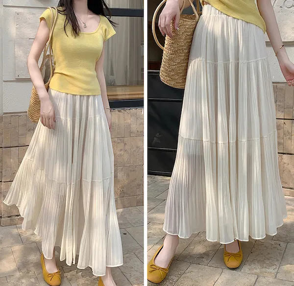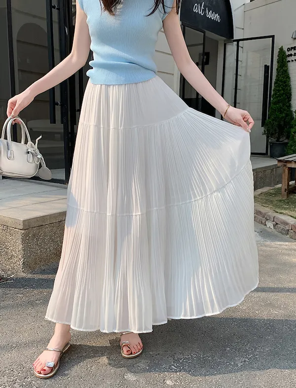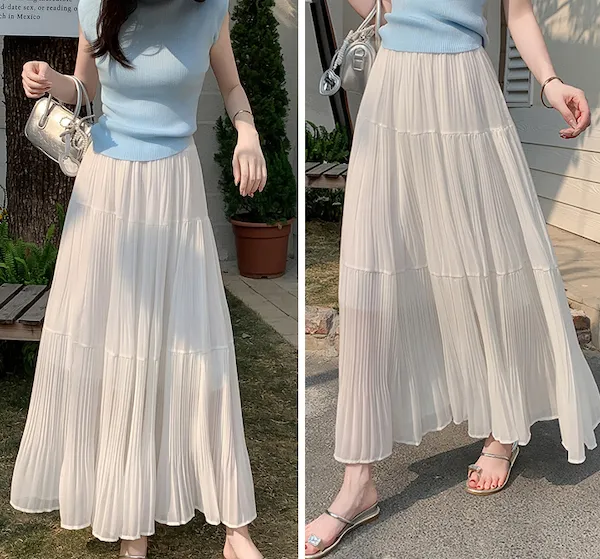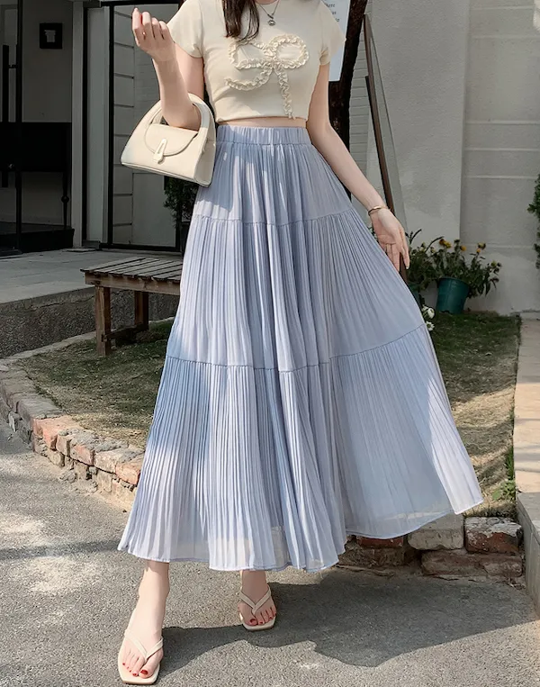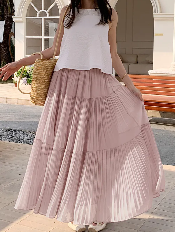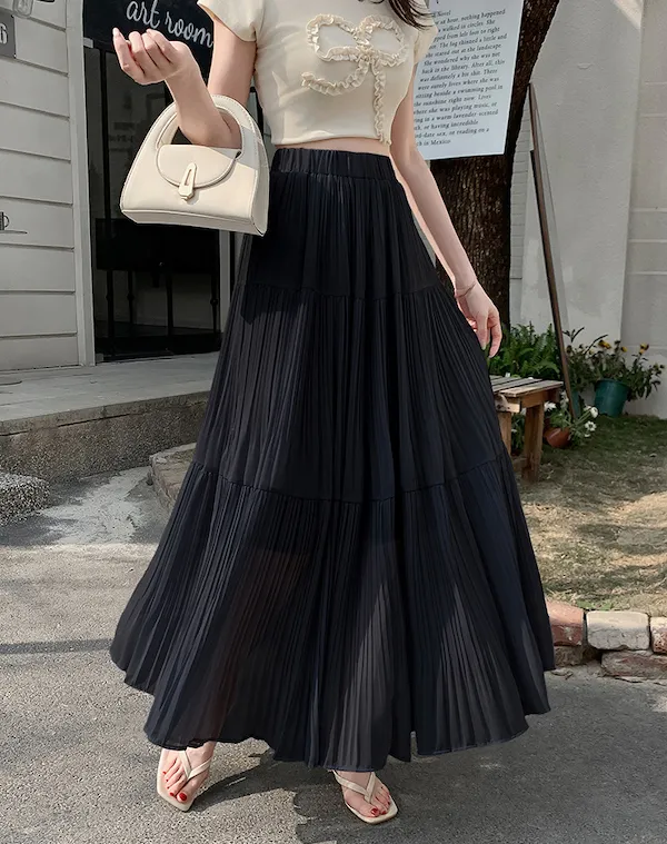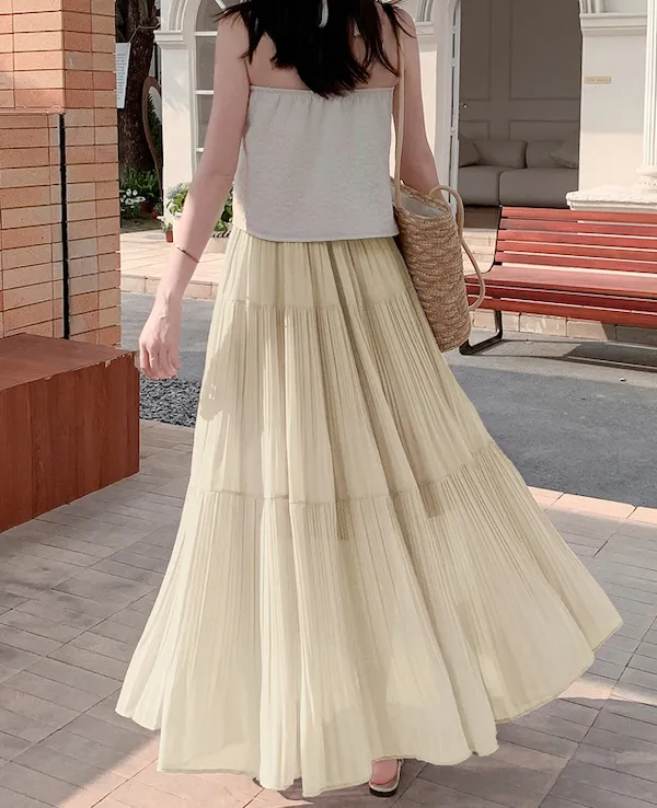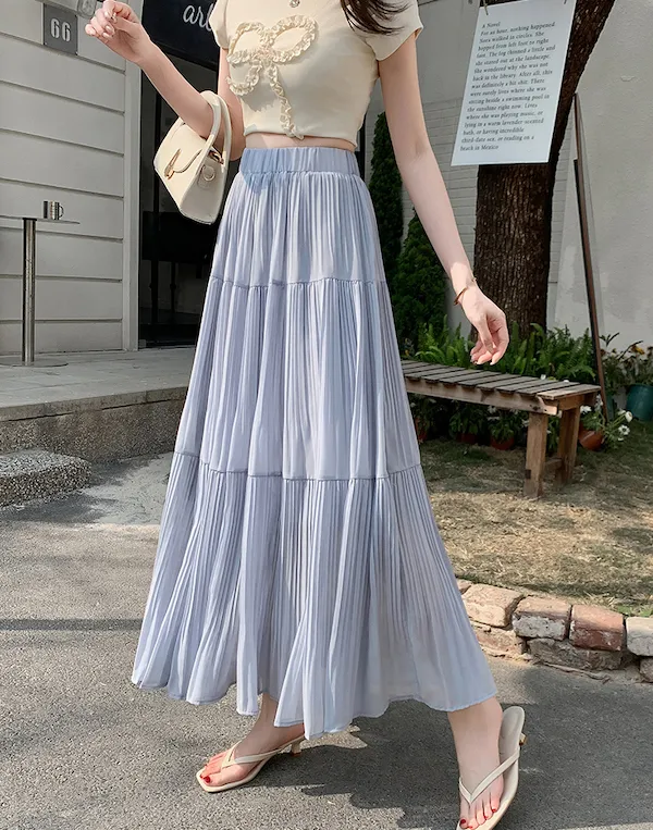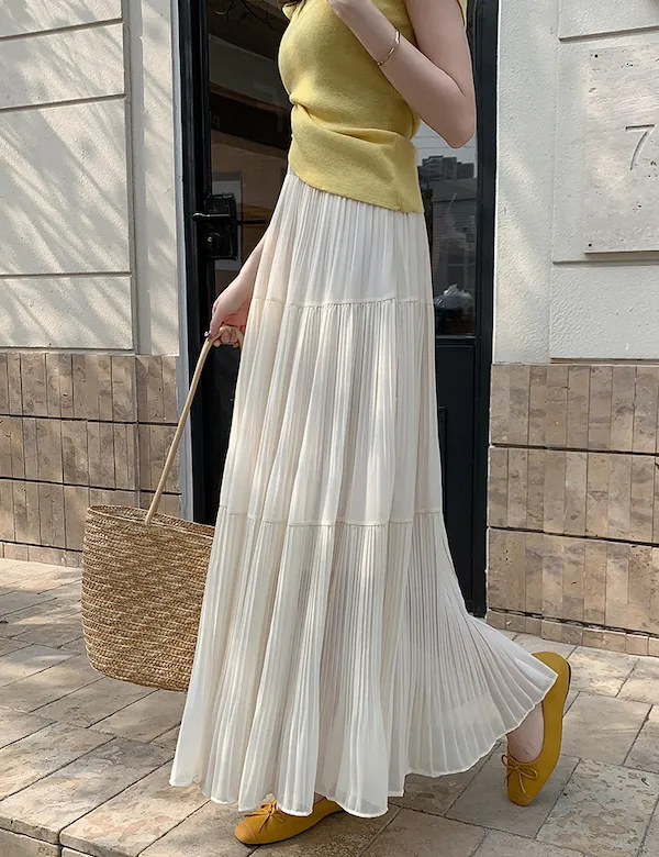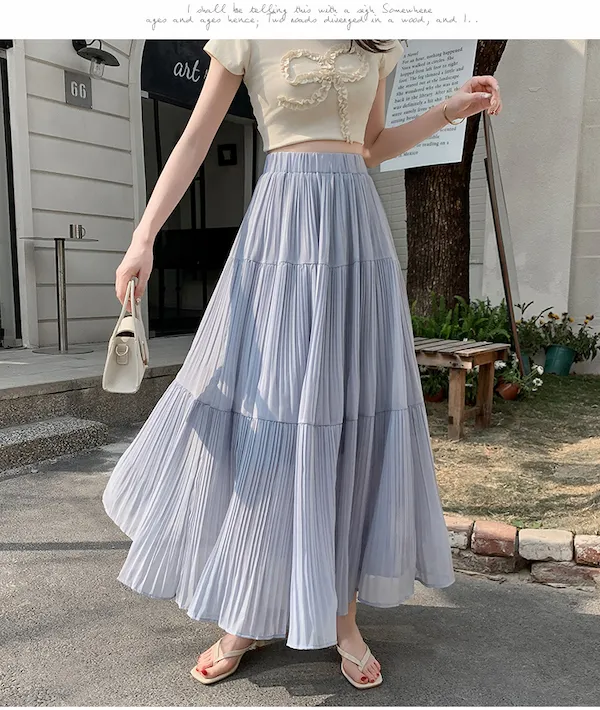 飄逸仙女感~百褶層次高腰雪紡長裙 7色