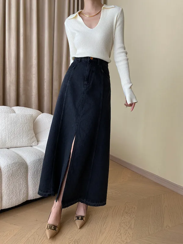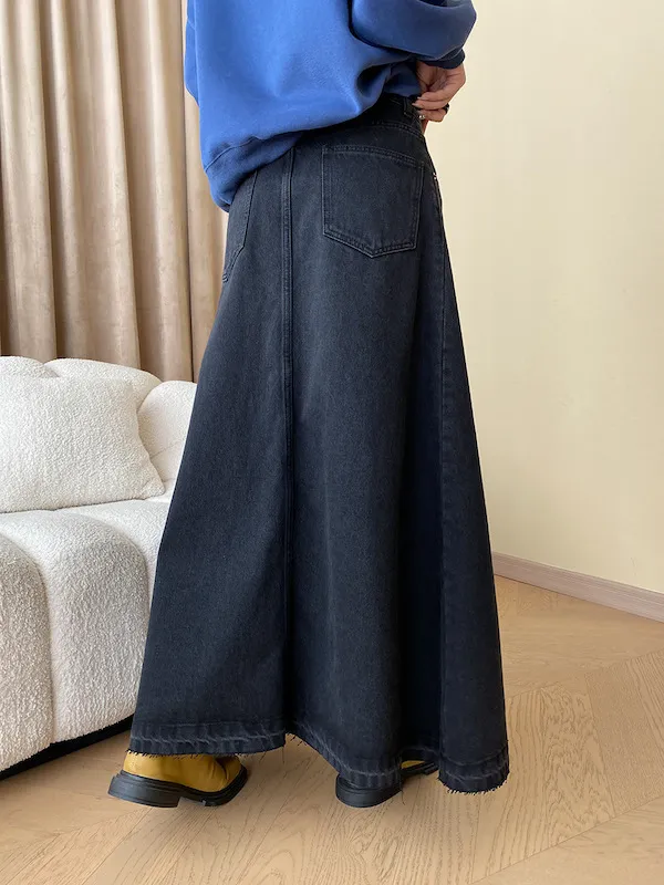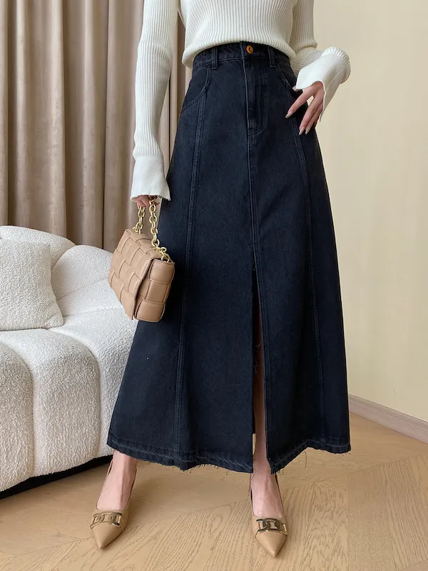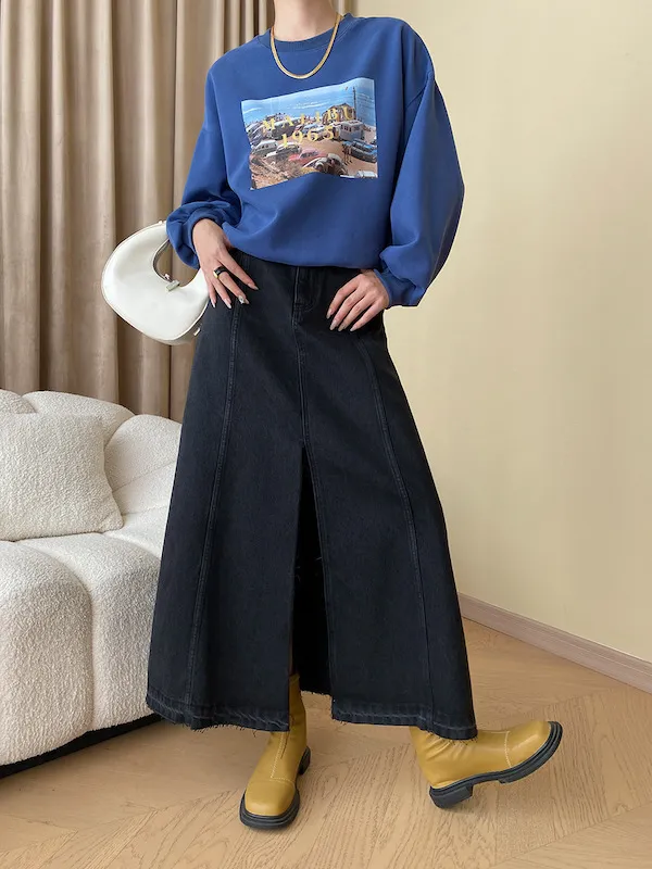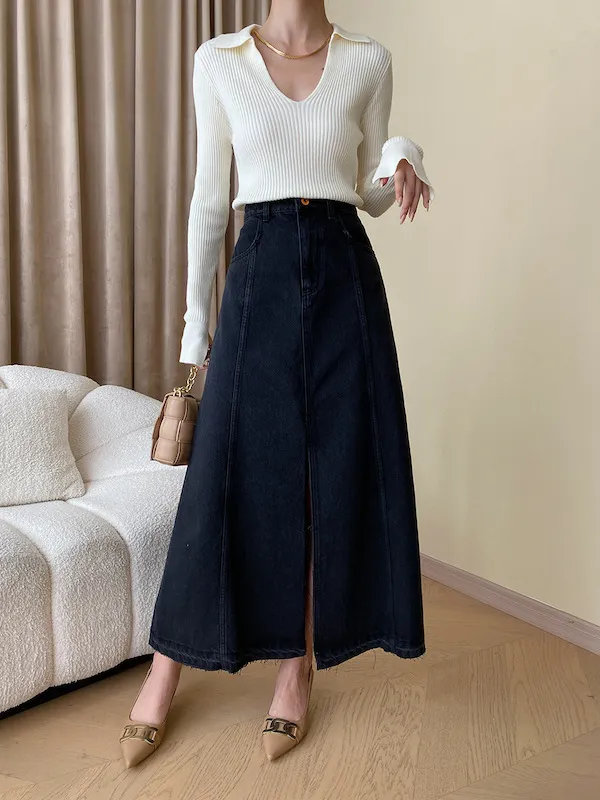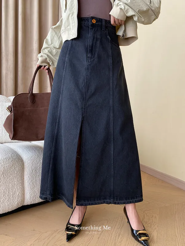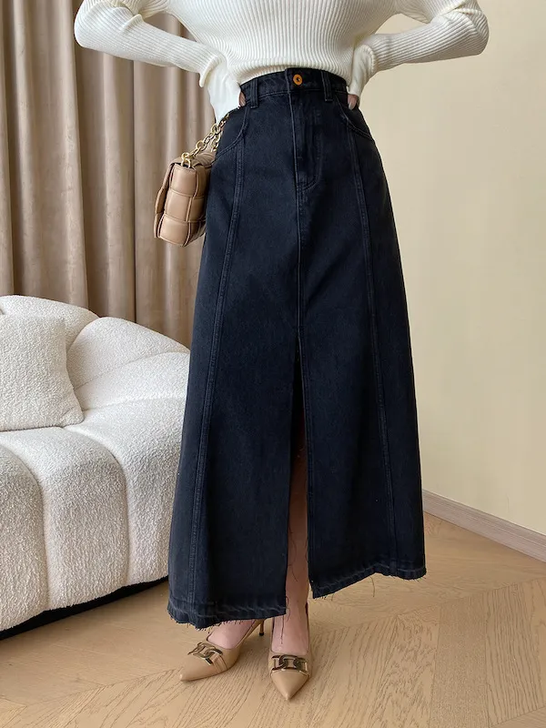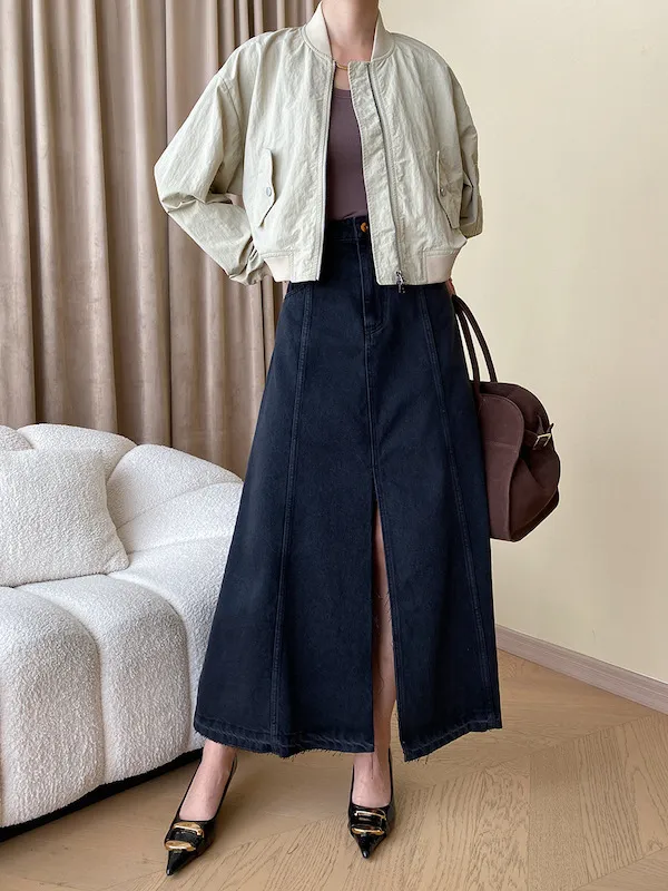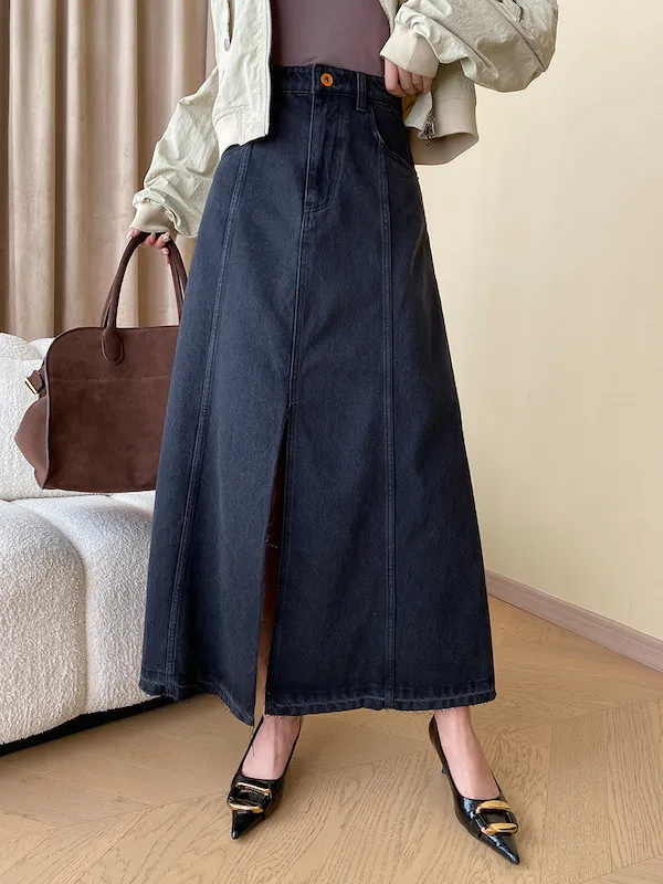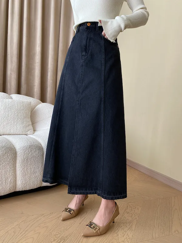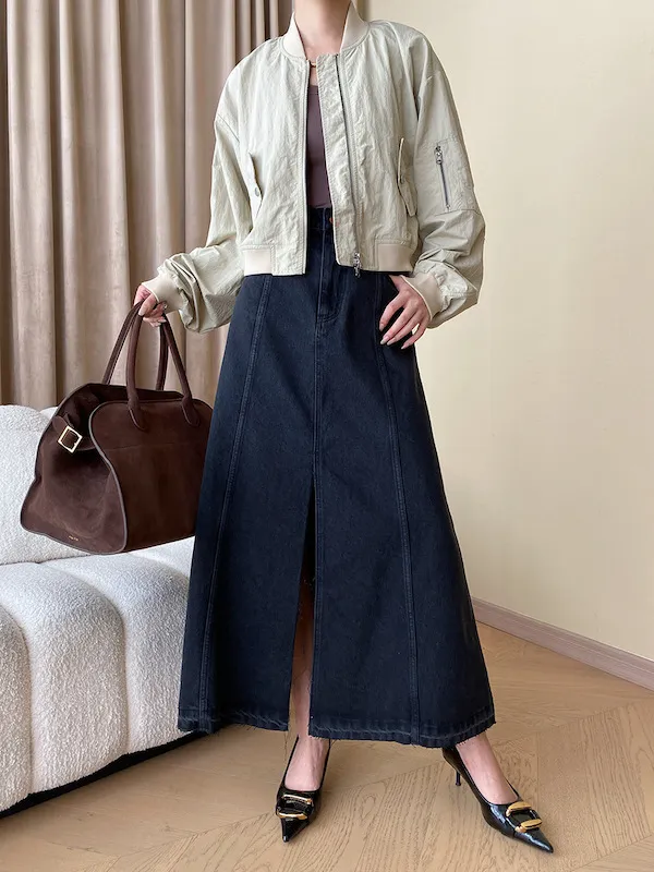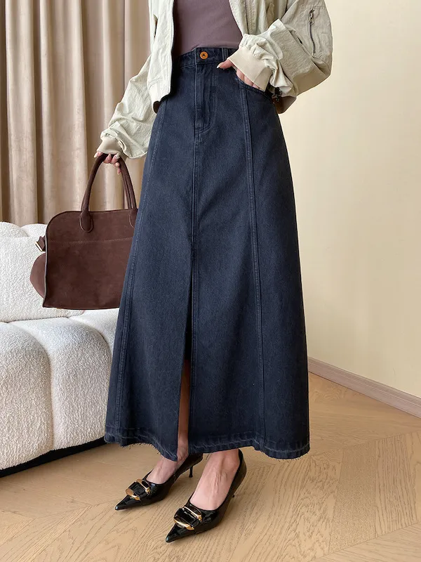 時髦法式 線條分割牛仔A字半身裙