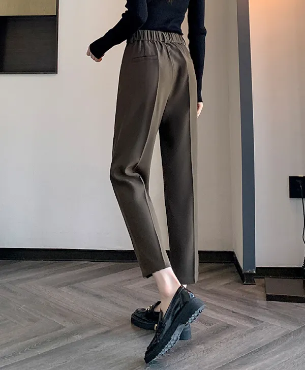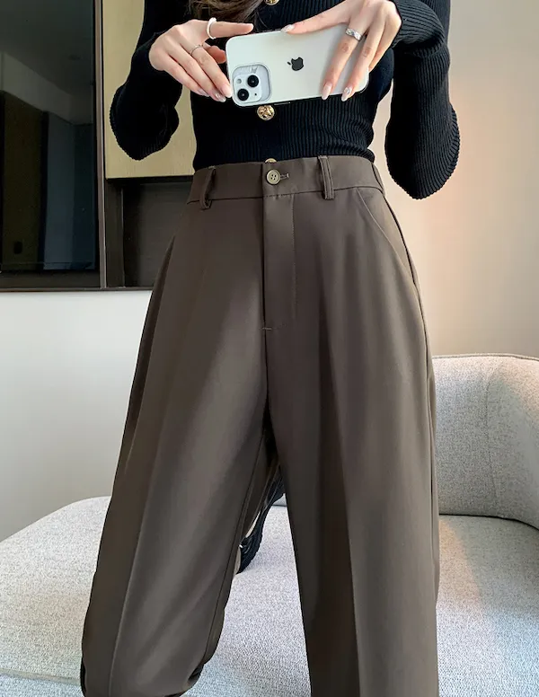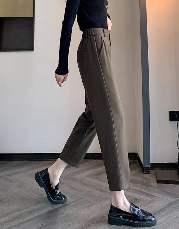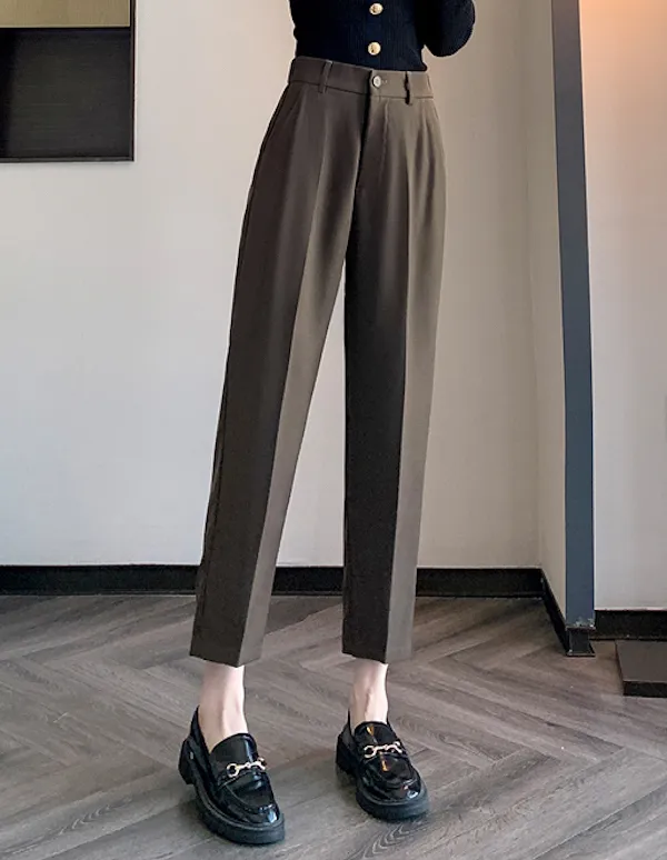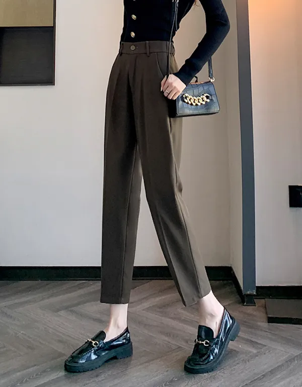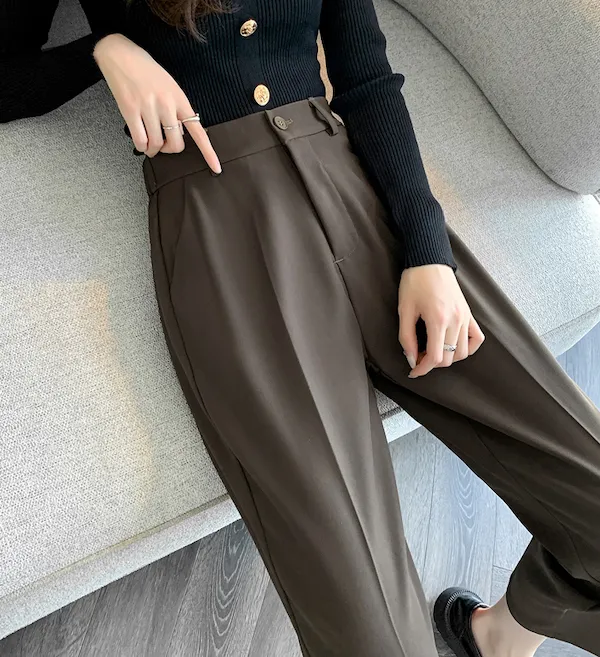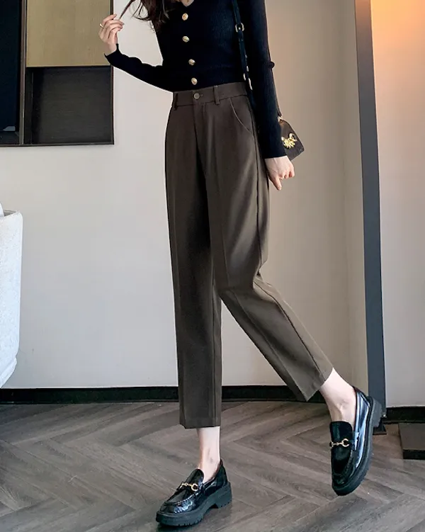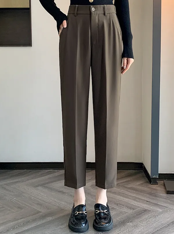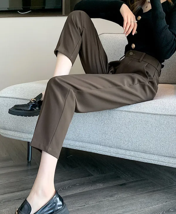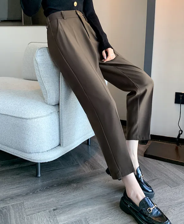 職場通勤.咖啡雪紡哈倫九分西裝褲