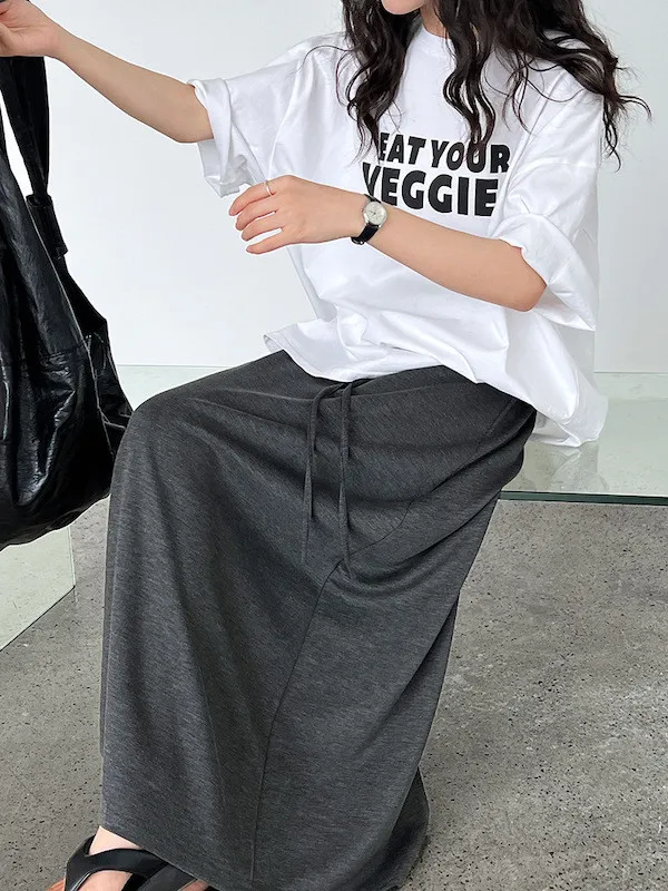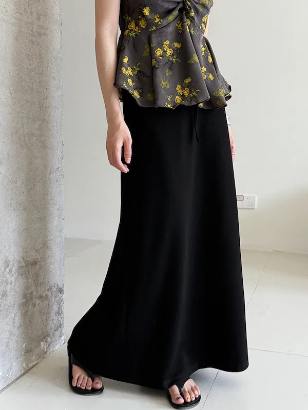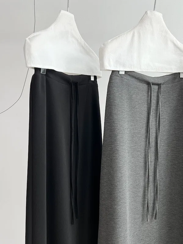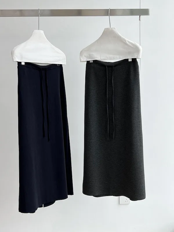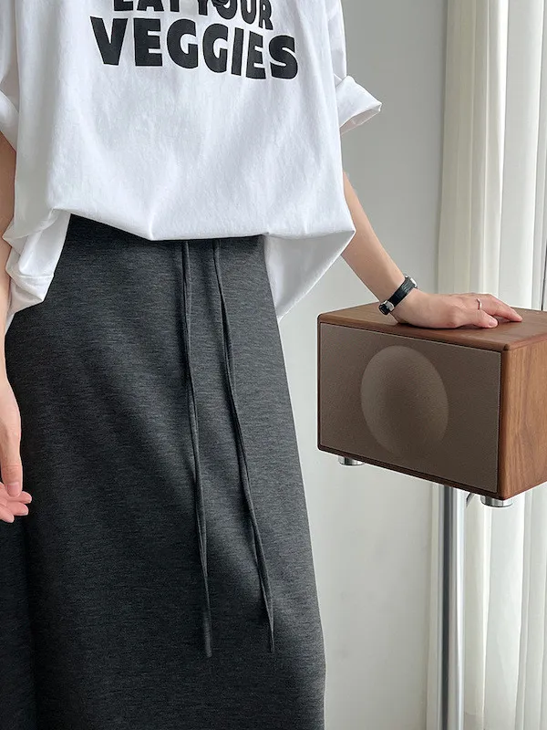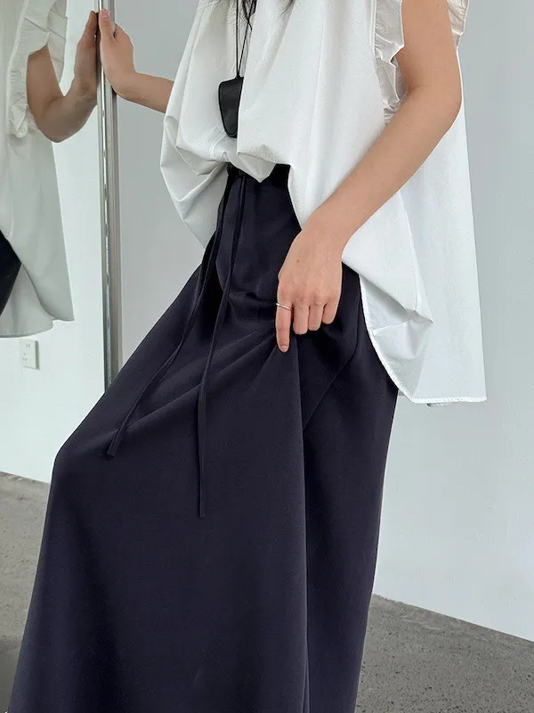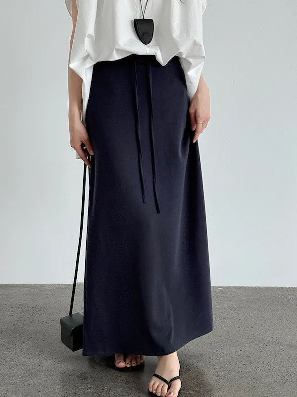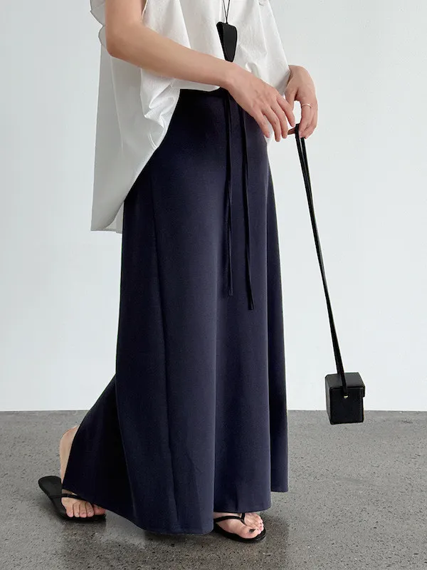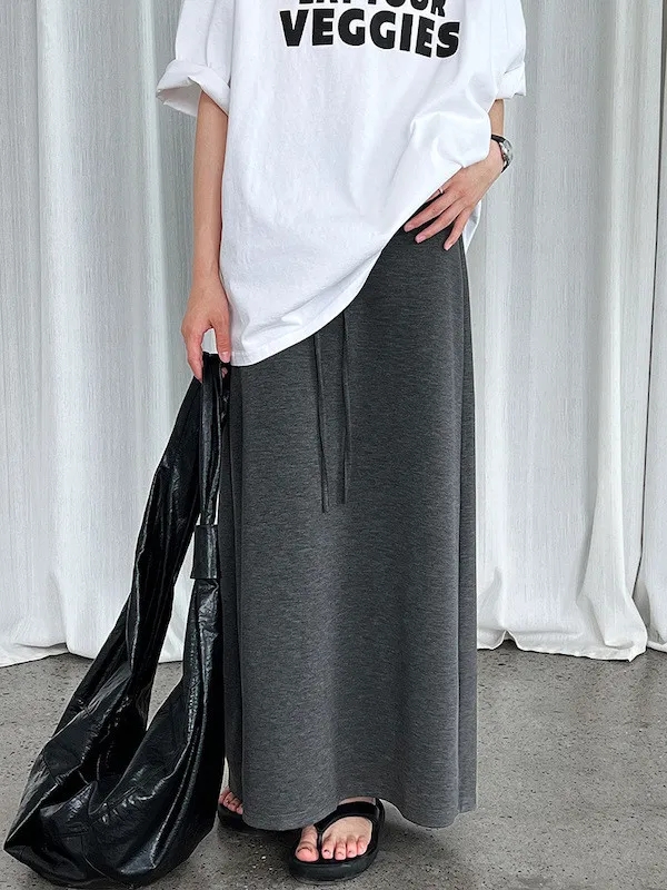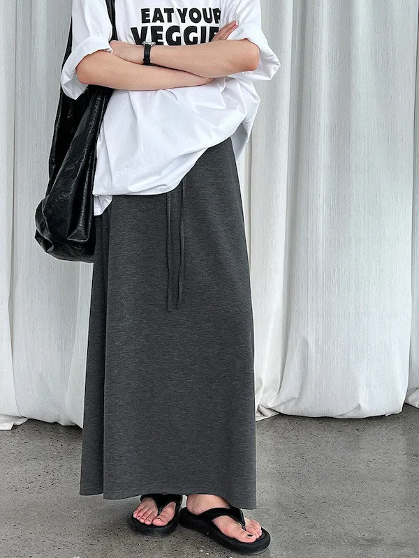 慵懶午後 韓版抽繩後開衩A字長裙 3色
