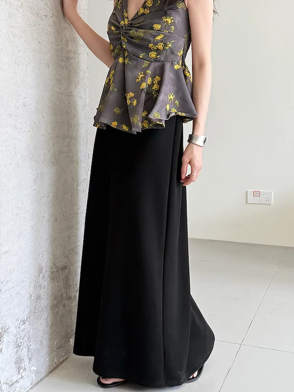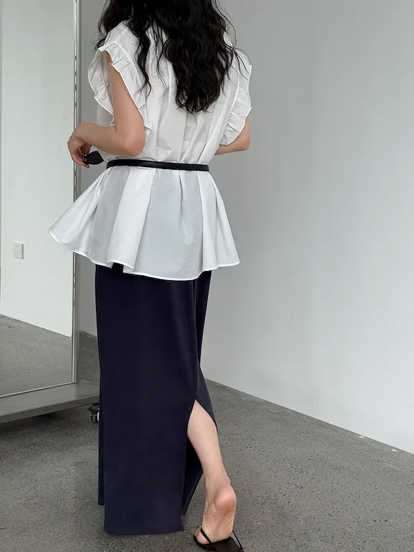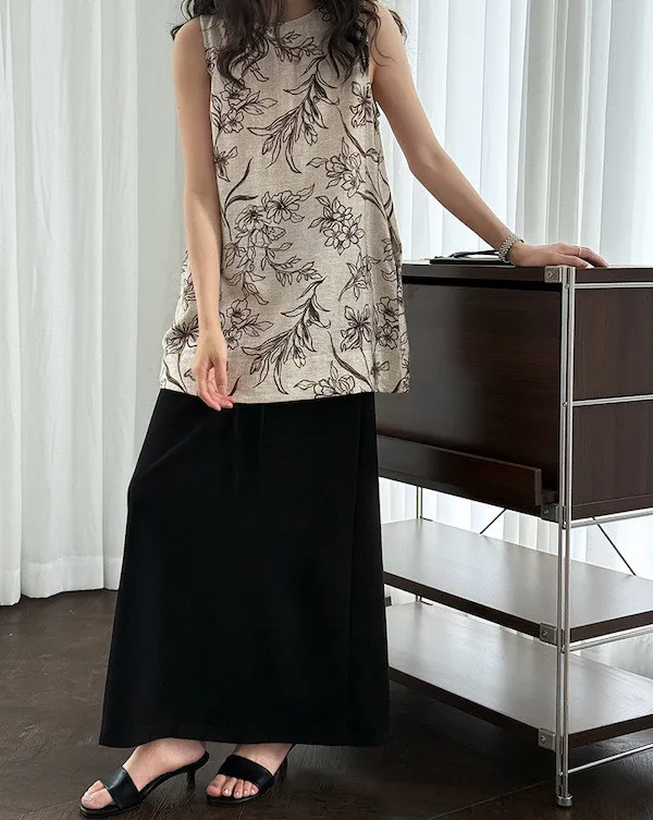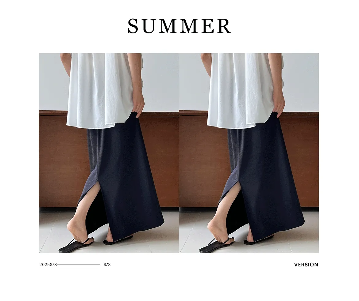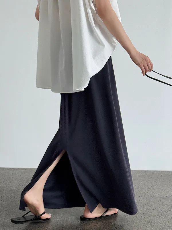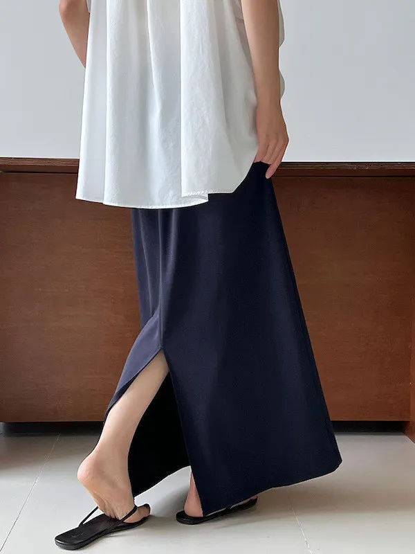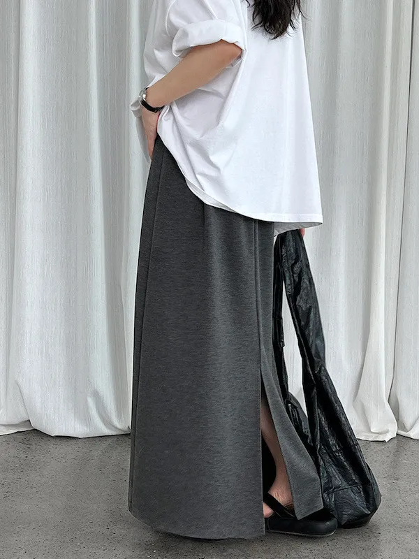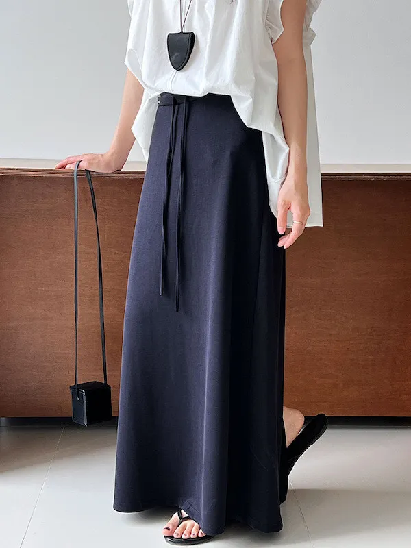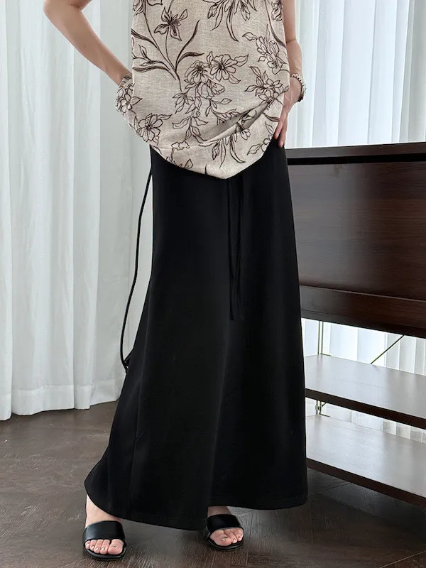 慵懶午後 韓版抽繩後開衩A字長裙 3色