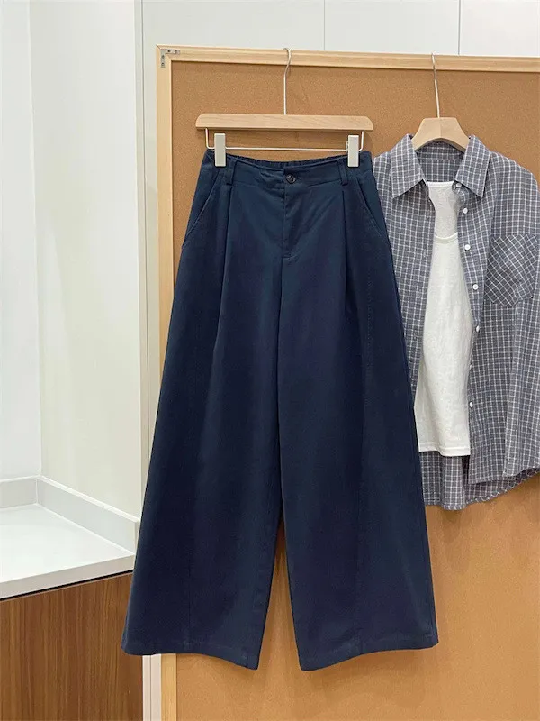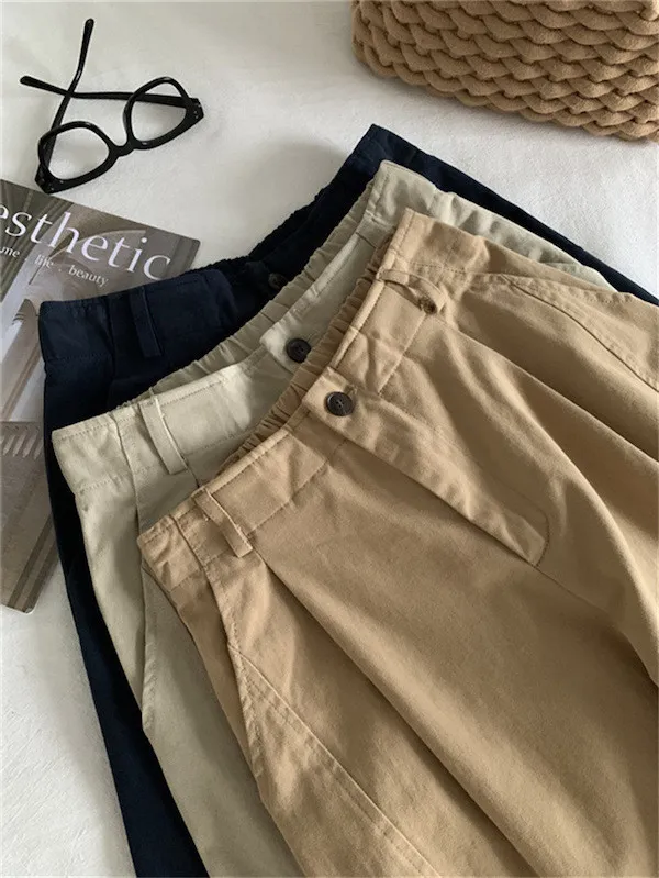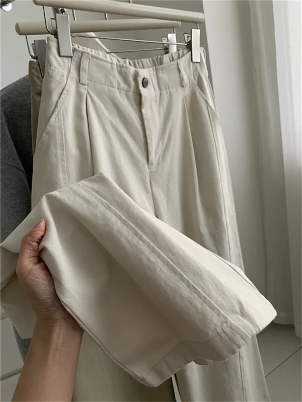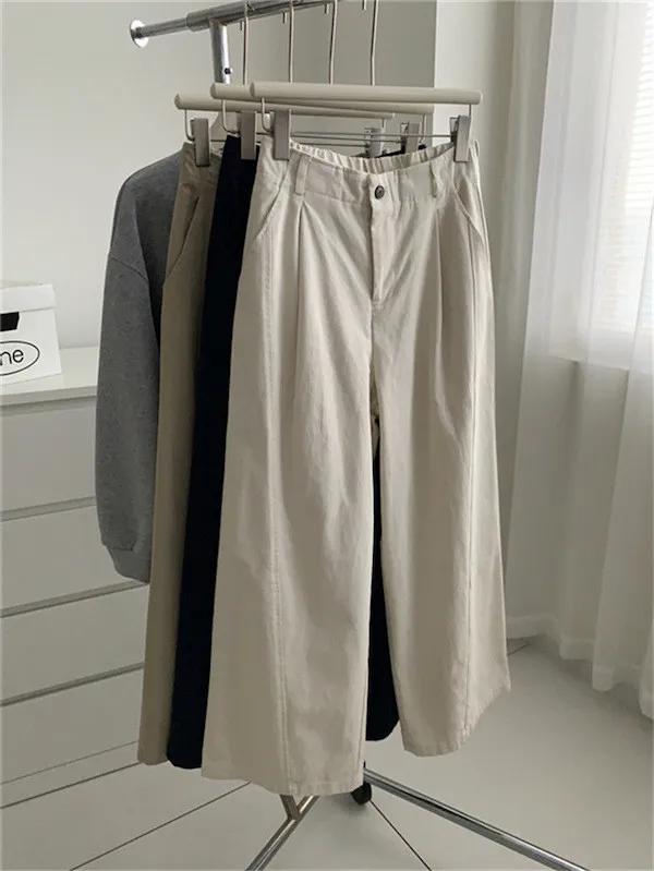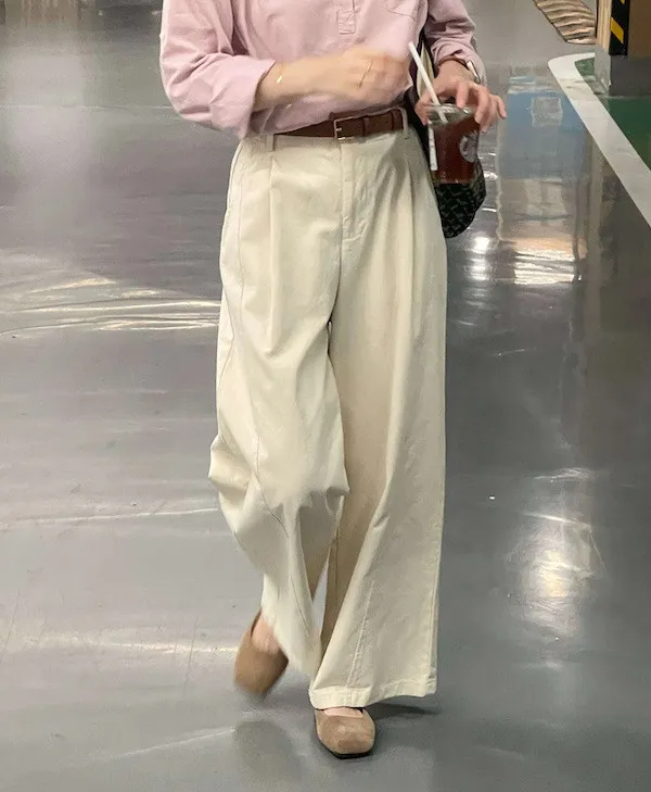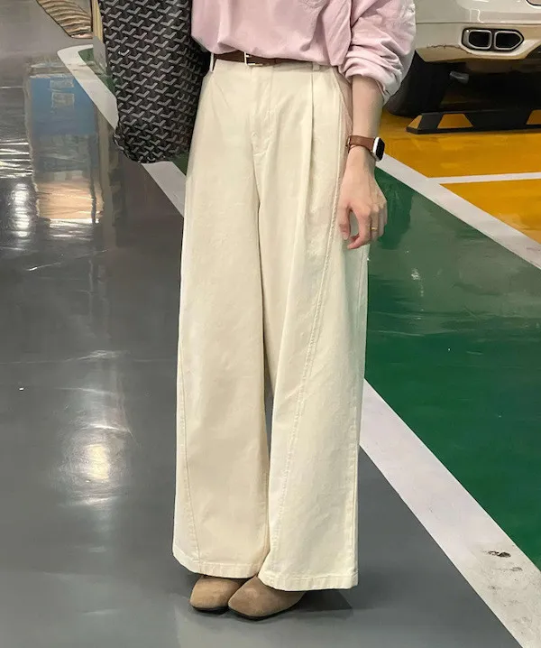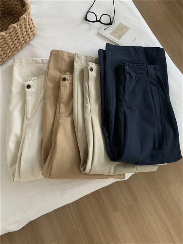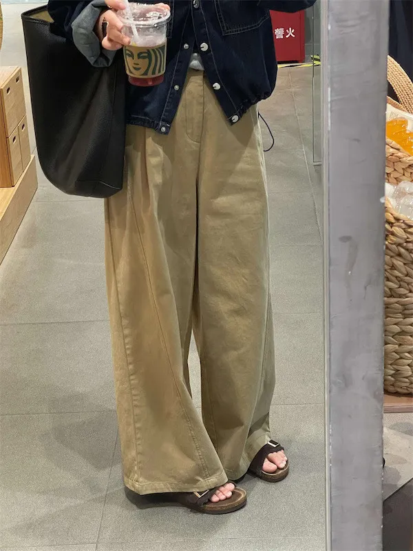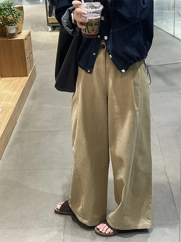 漫步時光 美式復古壓褶寬版休閒褲 4色