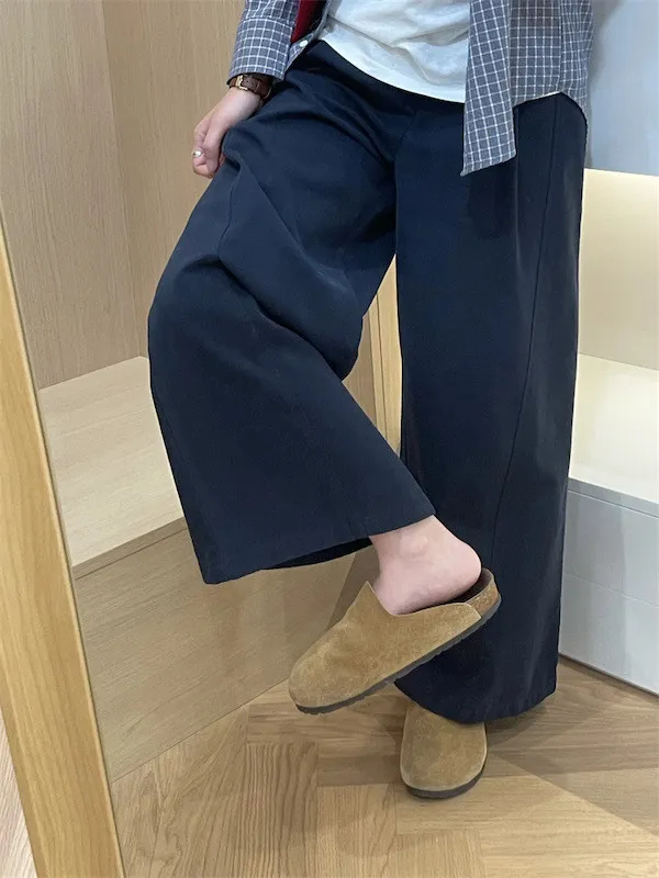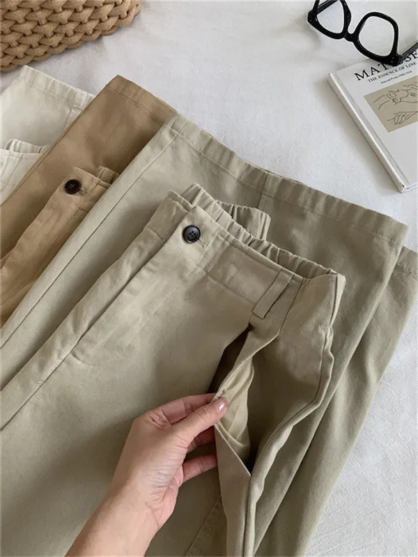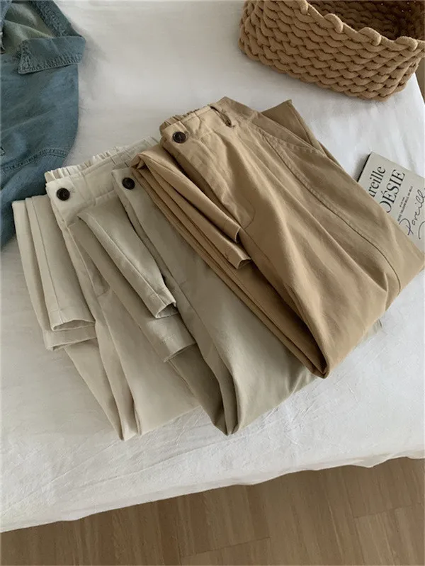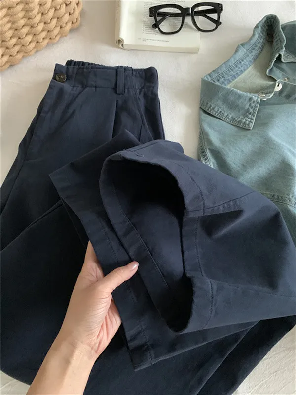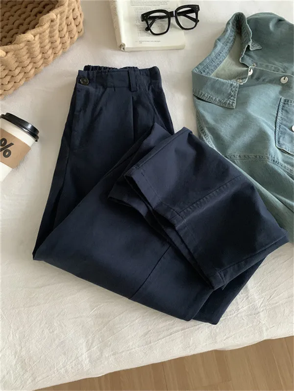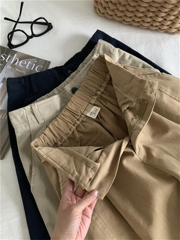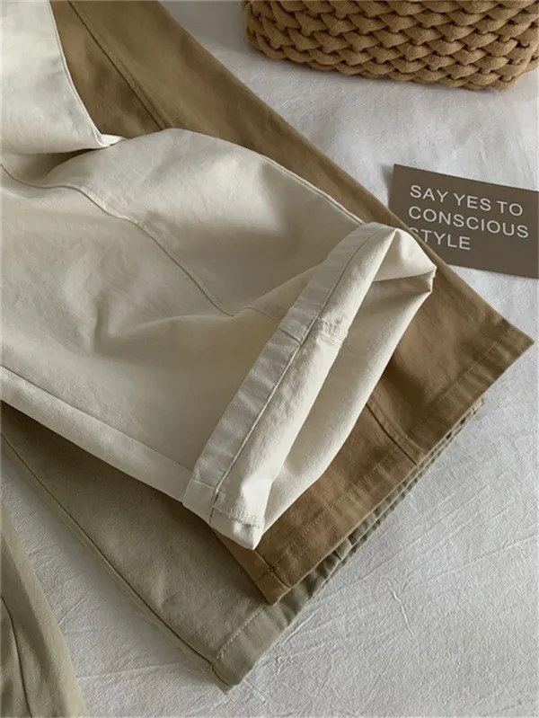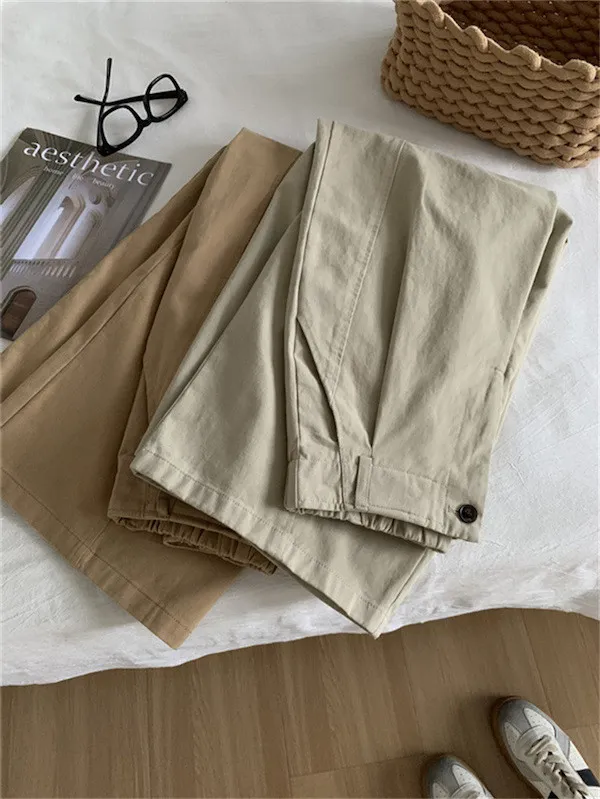 漫步時光 美式復古壓褶寬版休閒褲 4色