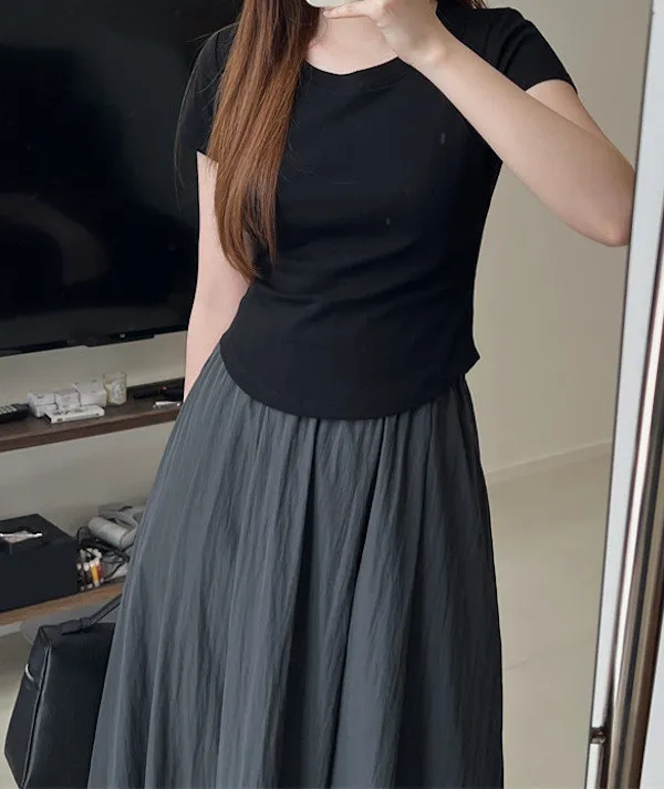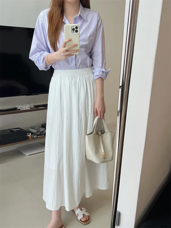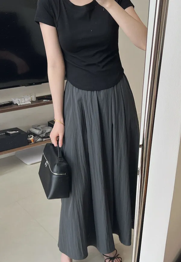 日常的隨性優雅~高腰垂感A字長裙 3色